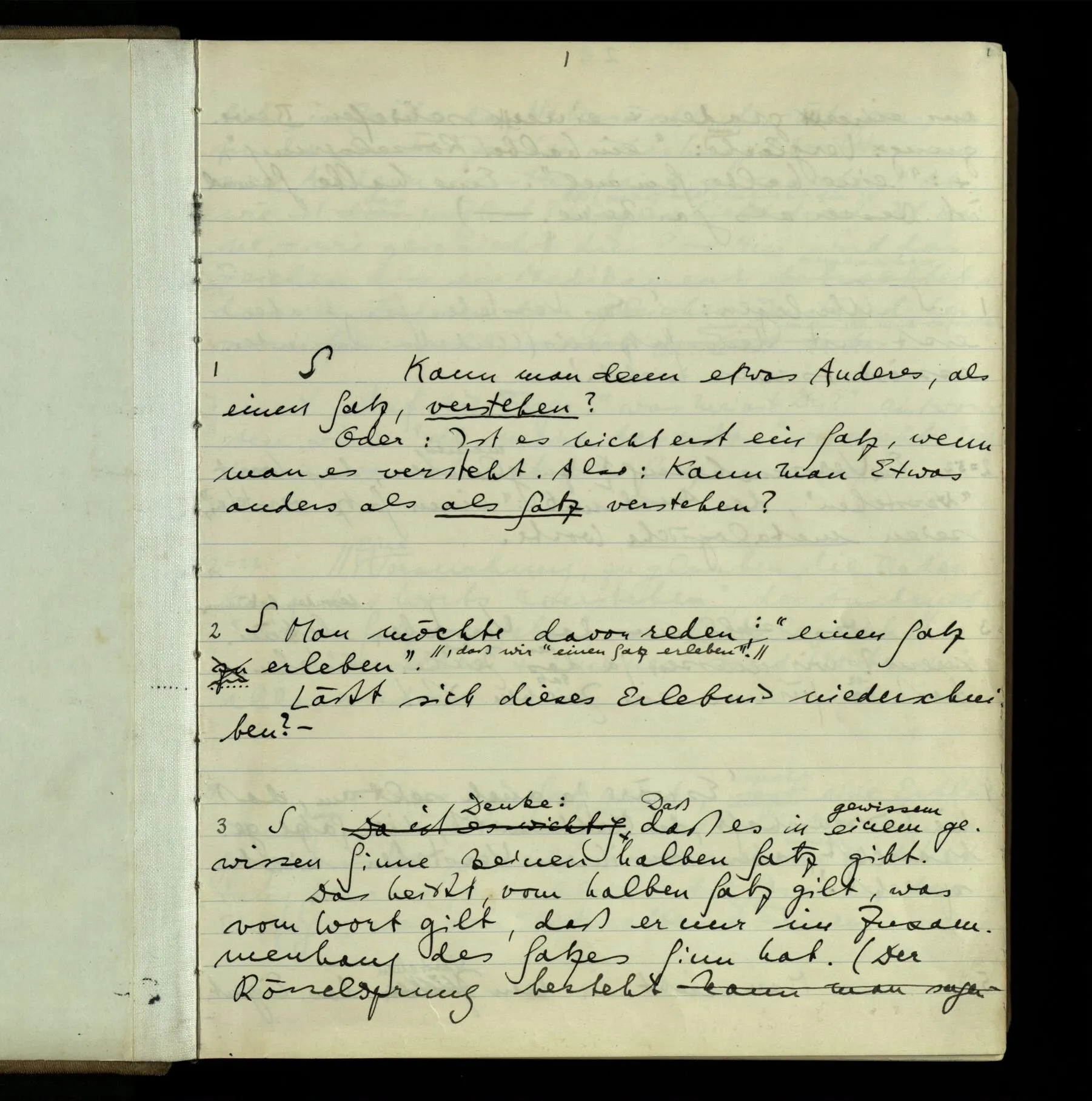 1 Überlegen: ‘Das Verstehen fängt aber erst mit dem Satz an. (Und darum interessiert es uns nicht.)’