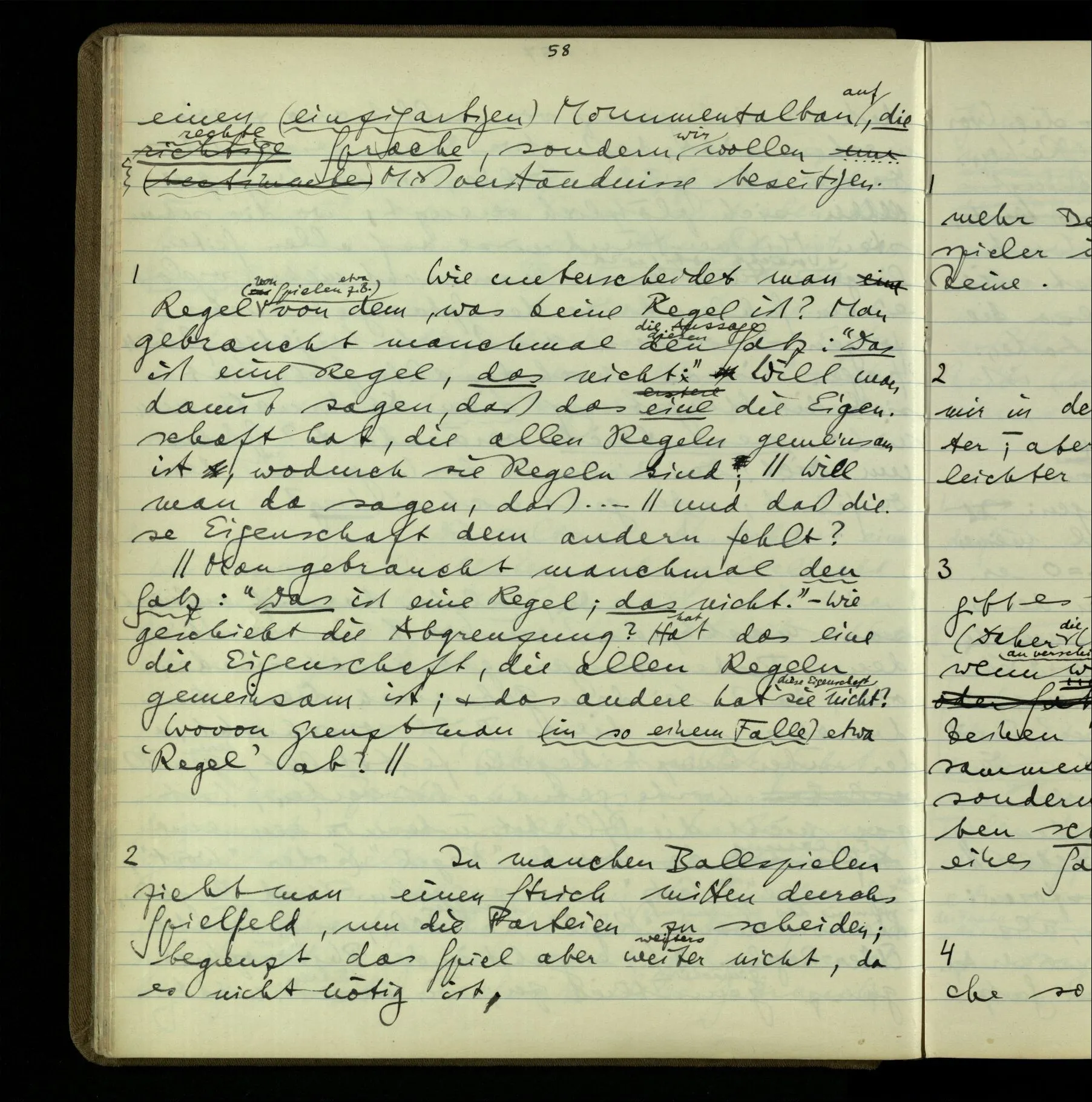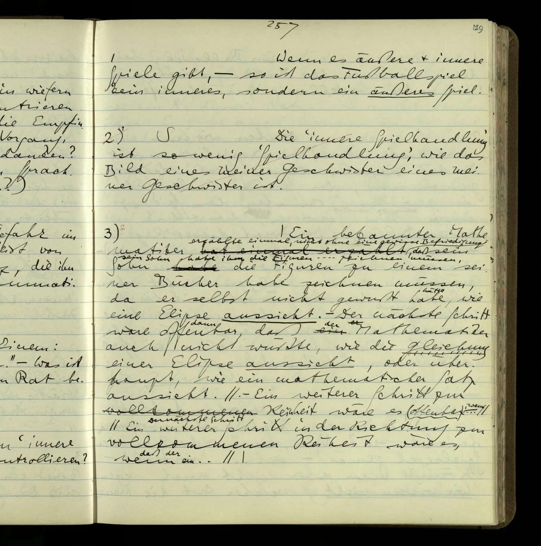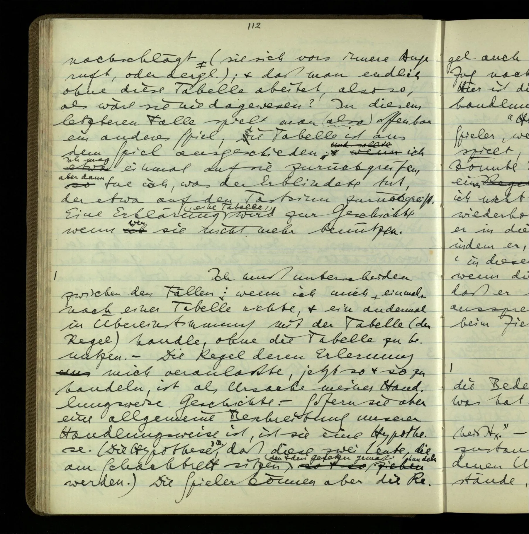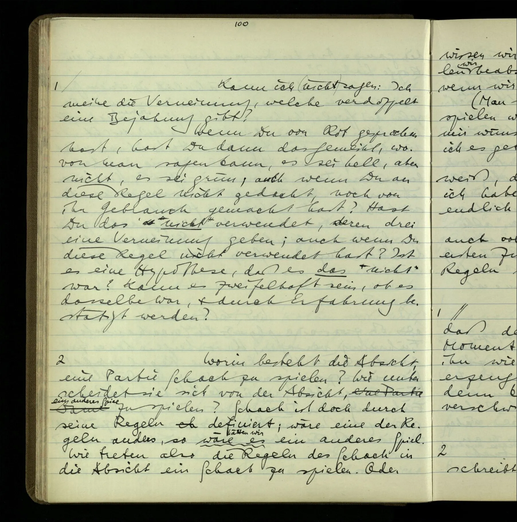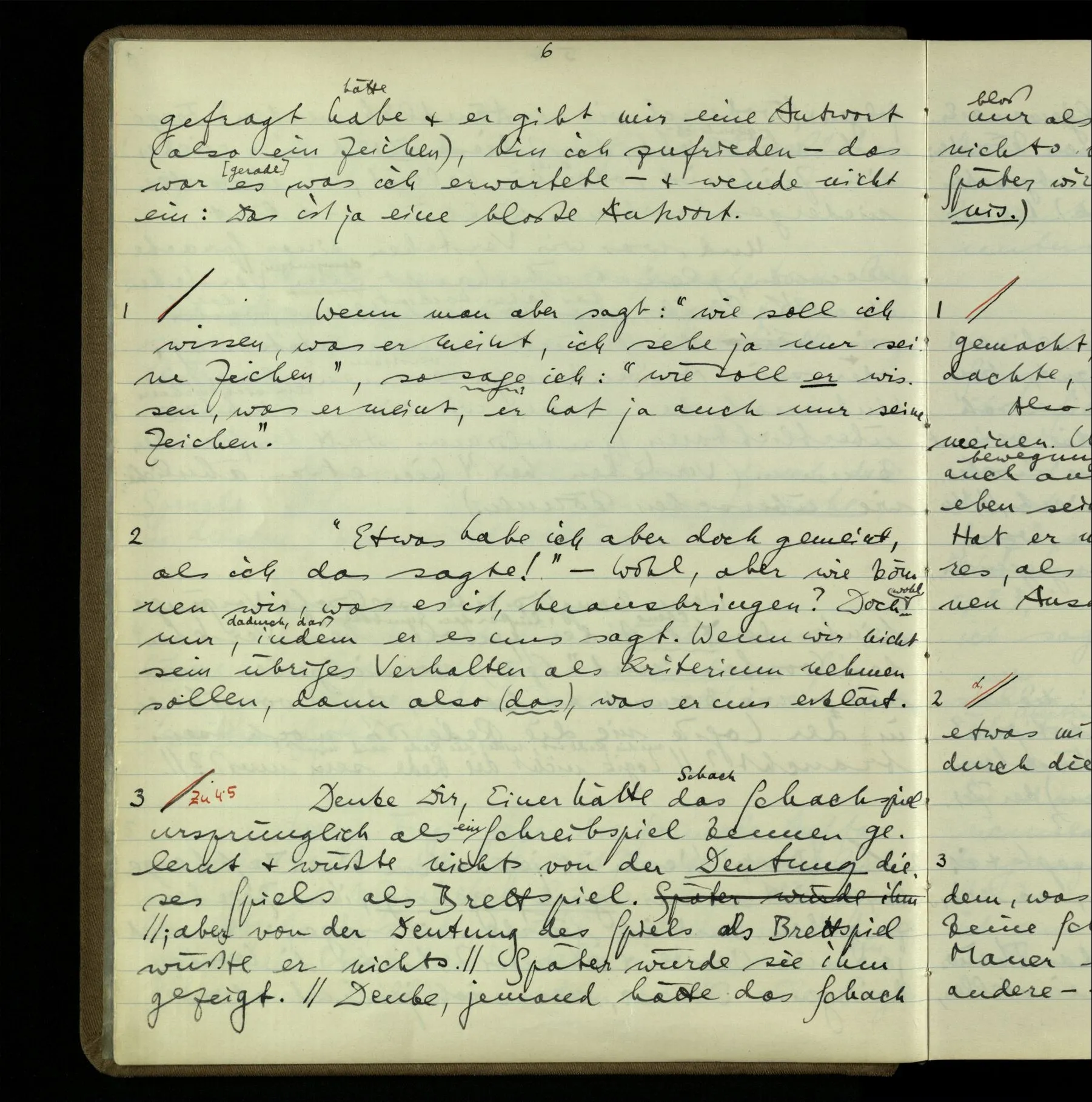 3 Denke Dir, Einer hätte das Schachspiel ursprünglich als ein Schreibspiel kennen gelernt & wüßte nichts von der Deutung dieses Spiels als Brettspiel. Später würde sie ihm gezeigt.