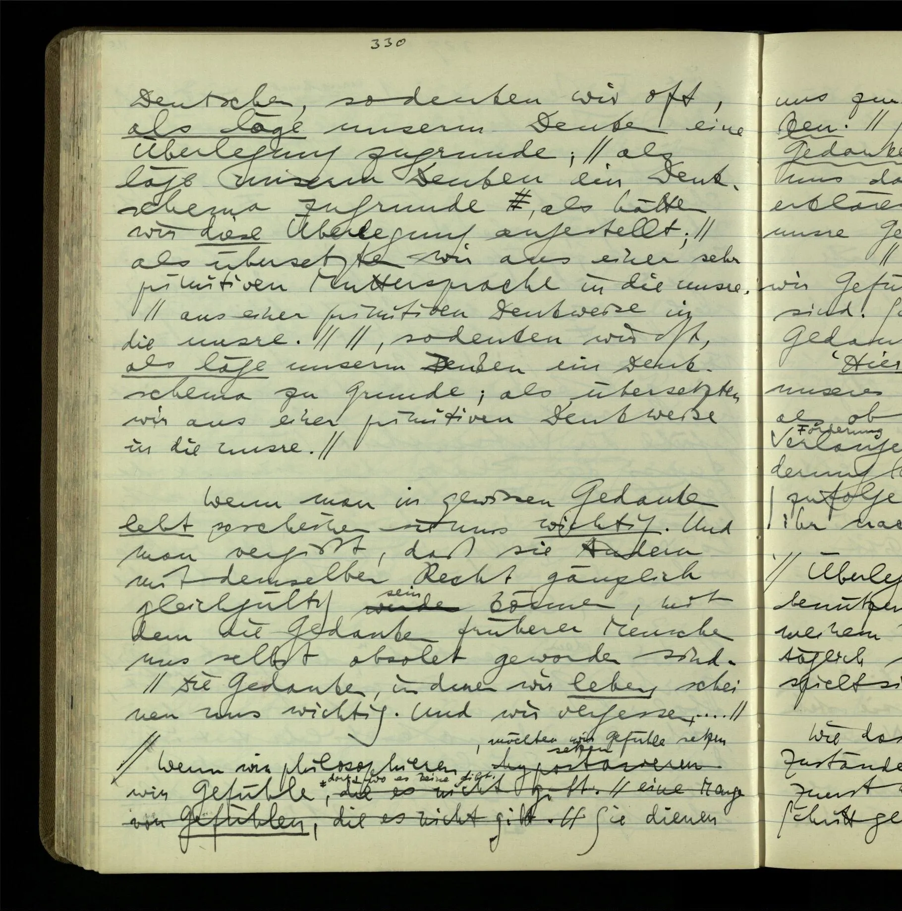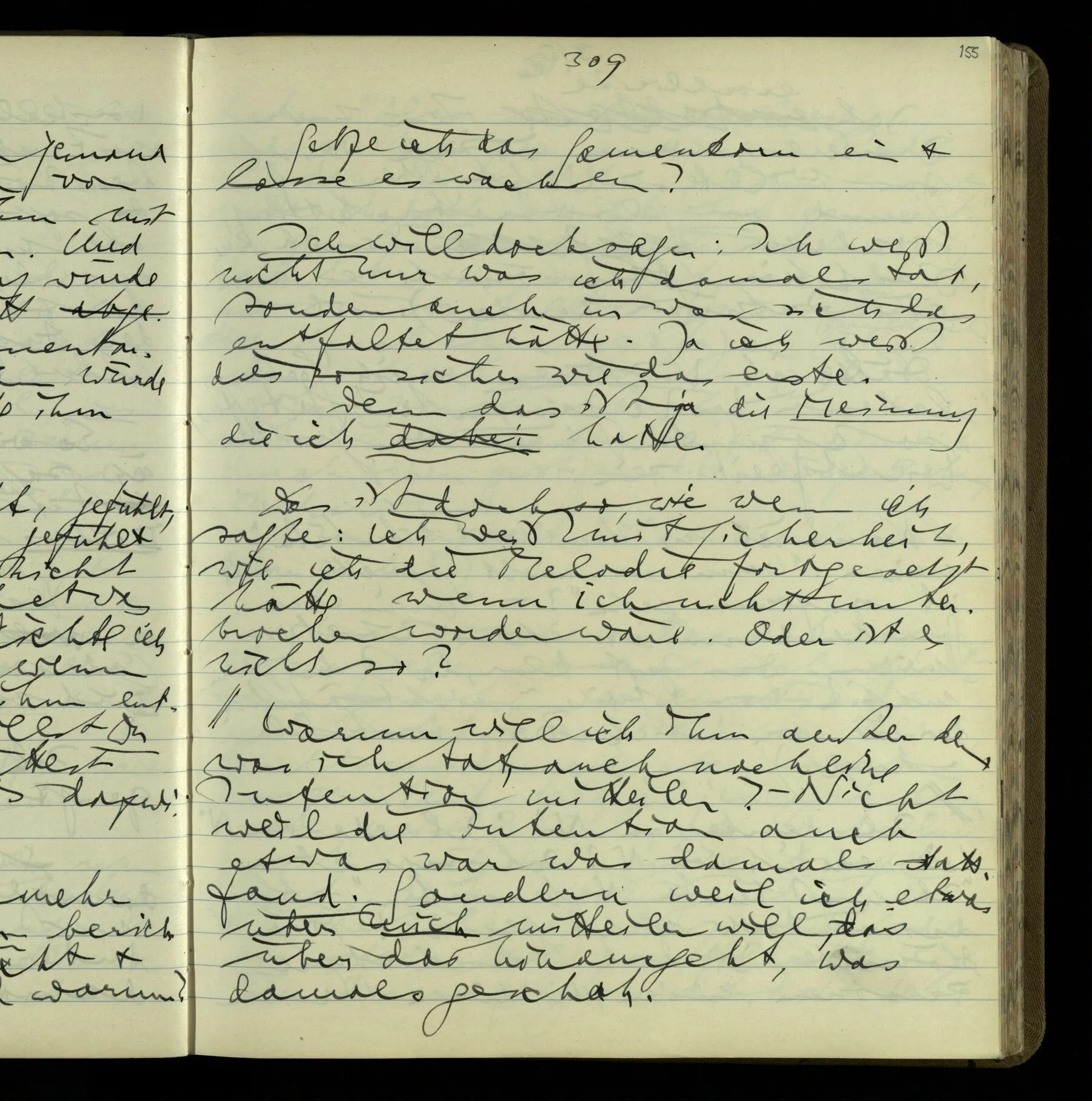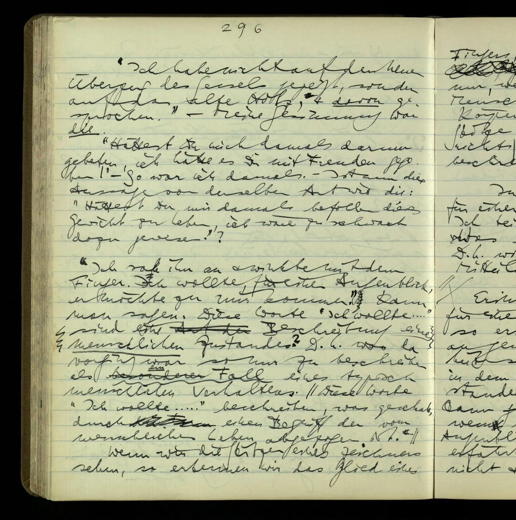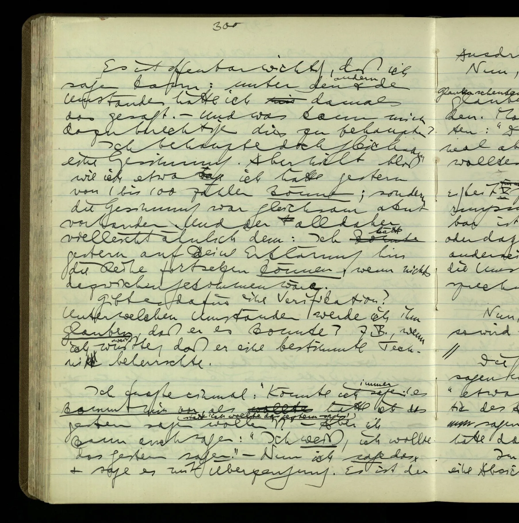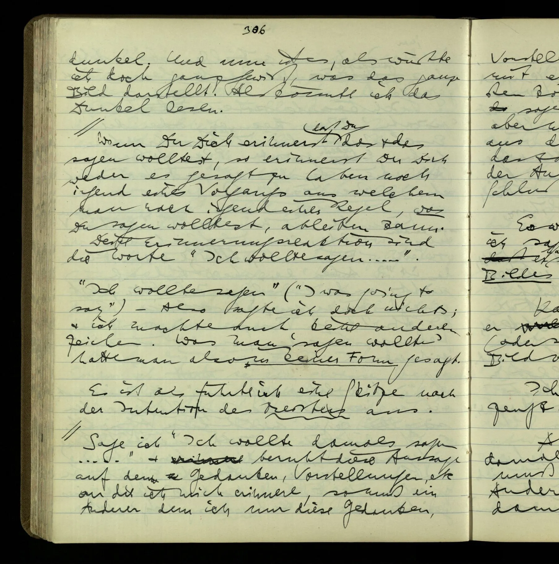 2 Geben wir denn den Worten, die uns gesagt werden, willkürlich Interpretationen? Kommt nicht das Erlebnis des Verstehens mit dem Erlebnis des Hörens (oder Sehens) der Zeichen, wenn wir die Sprache verstehen? Wenn mir jemand etwas sagt & ich verstehe (es), so geschieht mir dies, so wie, daß ich höre. Und hier ist also Verstehen das Phänomen, – die Phänomene, welche sich einstellen, wenn ich einen deutschen Satz höre, & die dieses Hören unterscheiden von dem eines Satzes einer mir unbekannten Sprache.