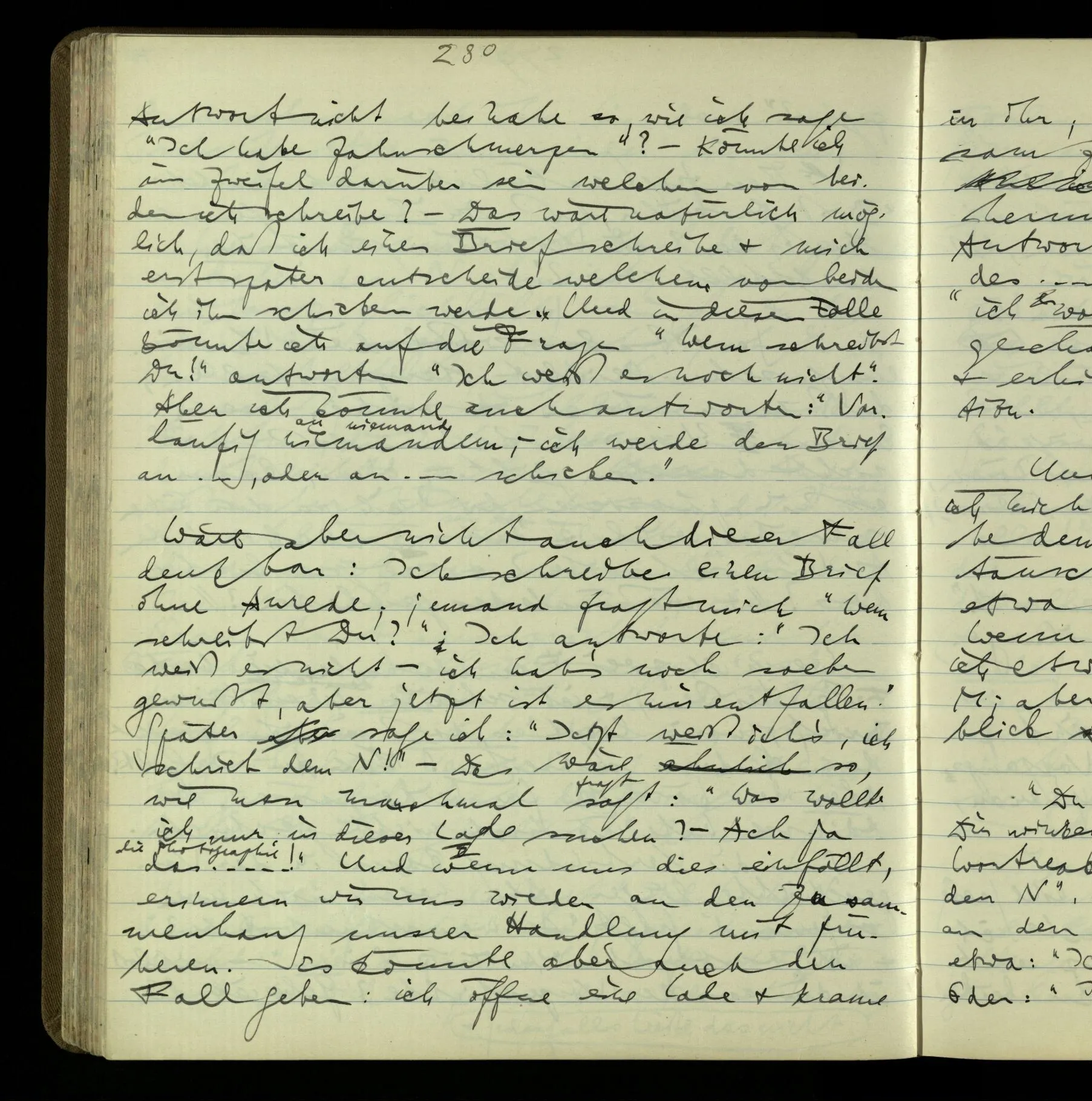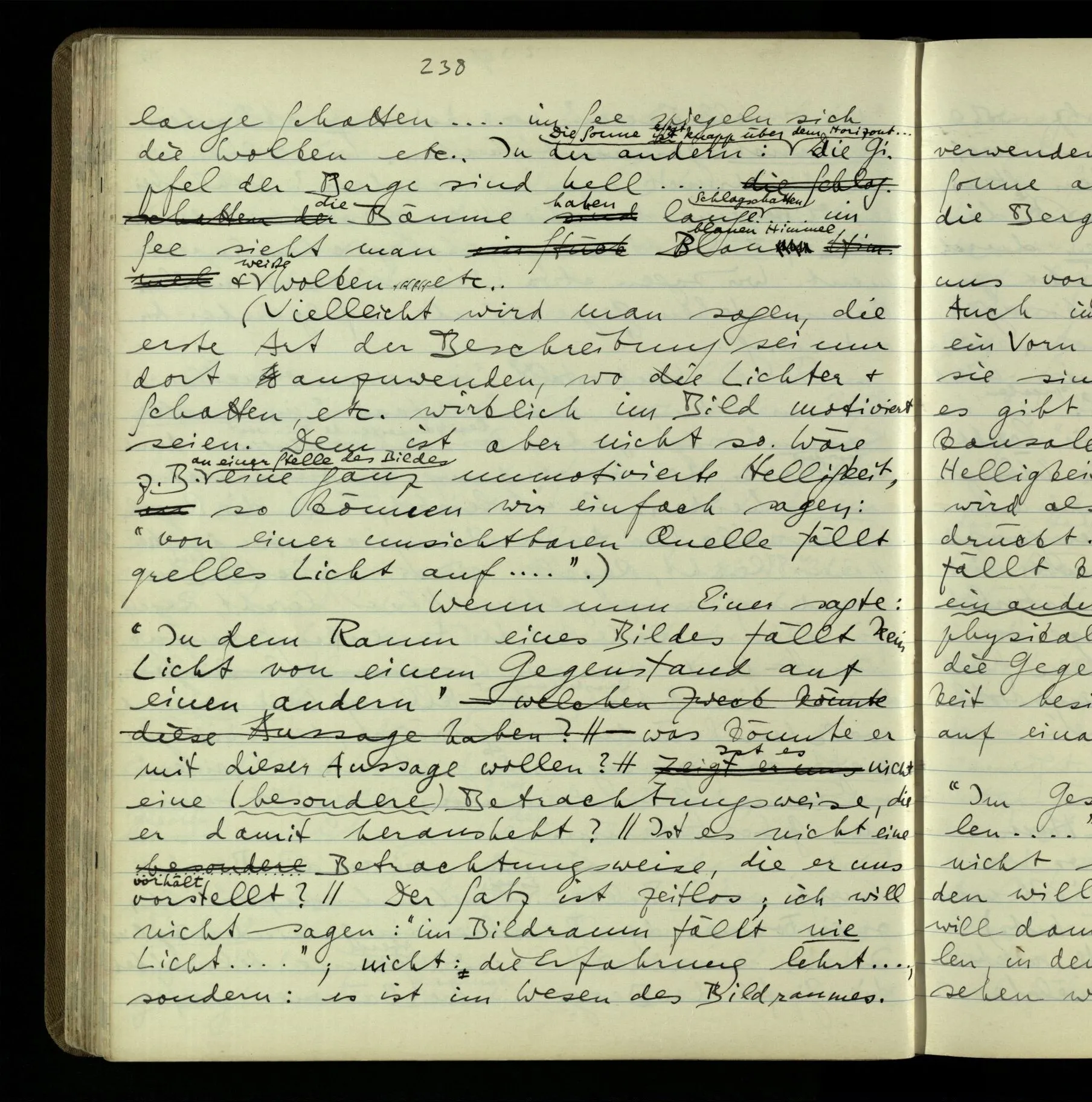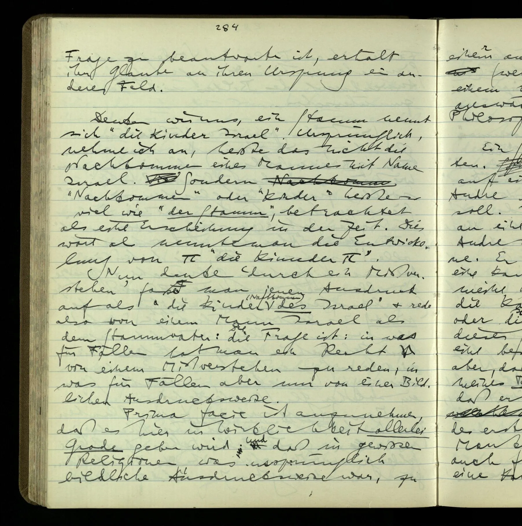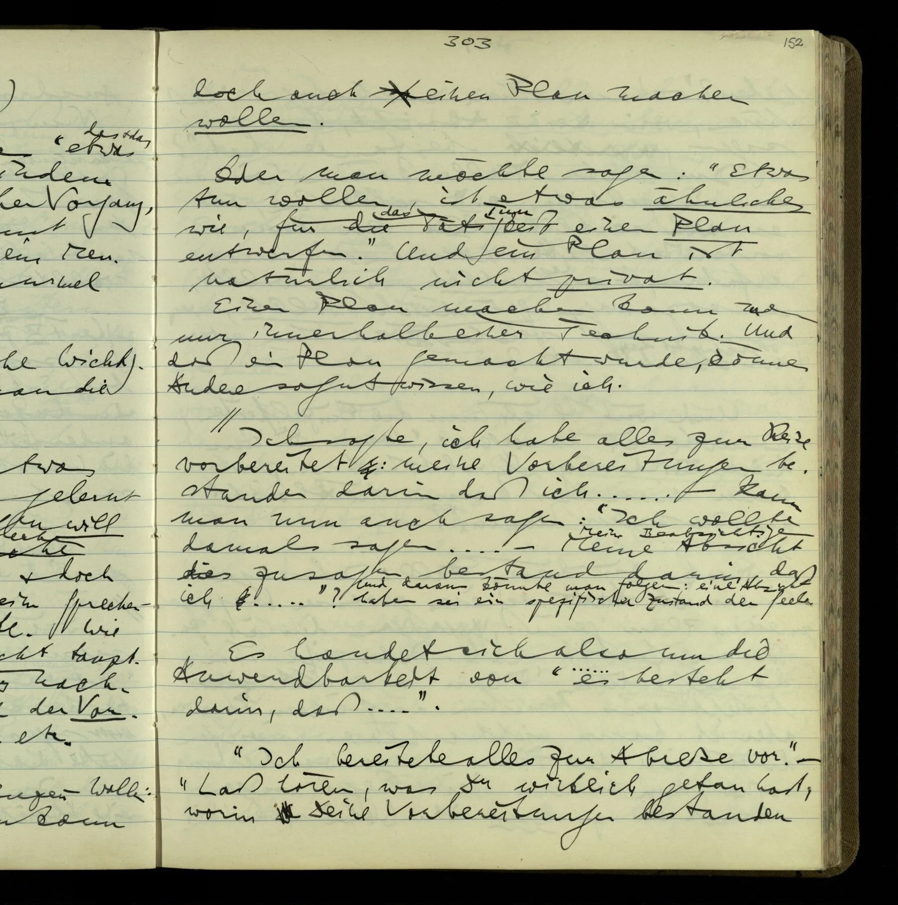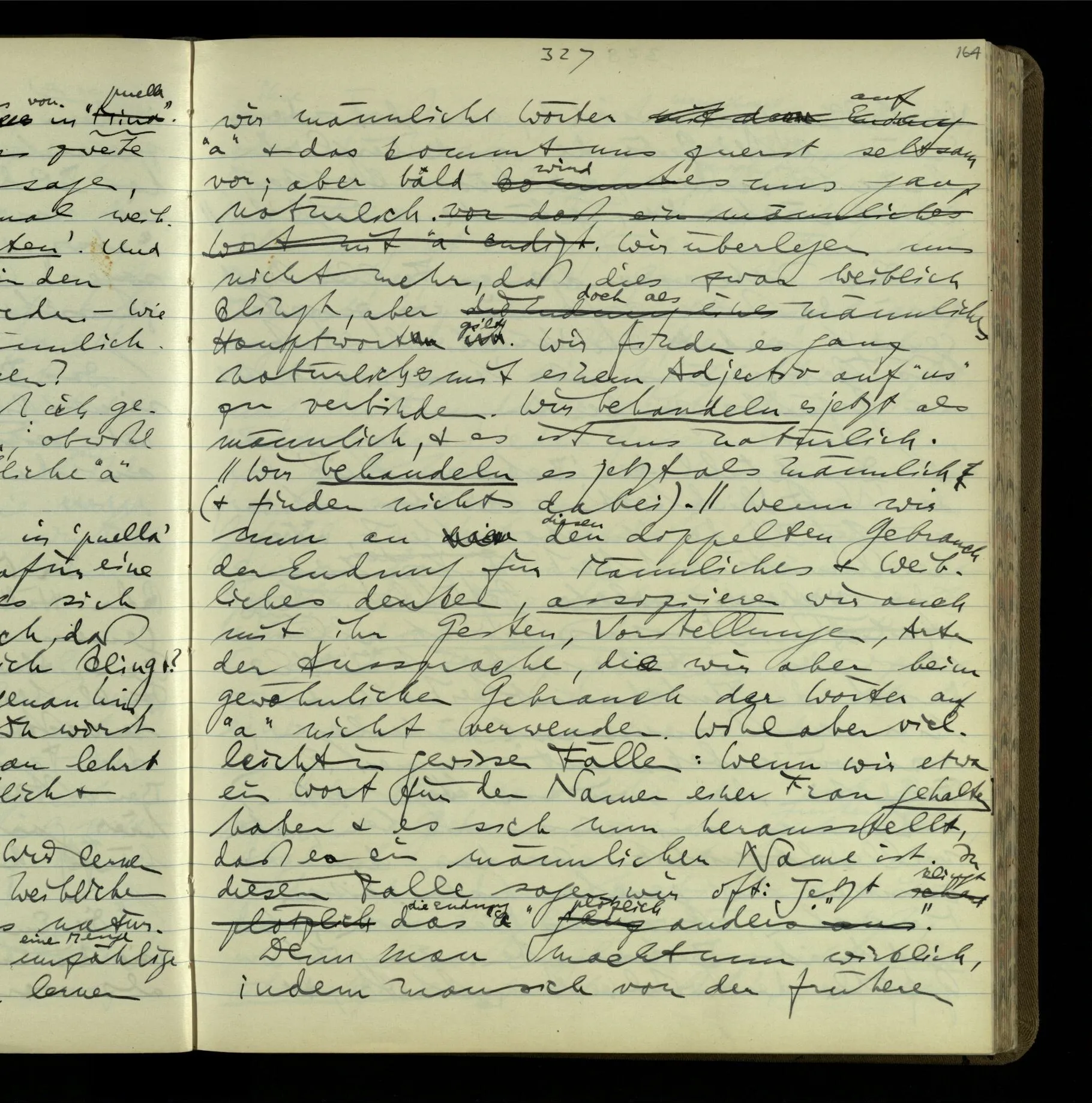 2 Geben wir denn den Worten, die uns gesagt werden, willkürlich Interpretationen? Kommt nicht das Erlebnis des Verstehens mit dem Erlebnis des Hörens (oder Sehens) der Zeichen, wenn wir die Sprache verstehen? Wenn mir jemand etwas sagt & ich verstehe (es), so geschieht mir dies, so wie, daß ich höre. Und hier ist also Verstehen das Phänomen, – die Phänomene, welche sich einstellen, wenn ich einen deutschen Satz höre, & die dieses Hören unterscheiden von dem eines Satzes einer mir unbekannten Sprache.