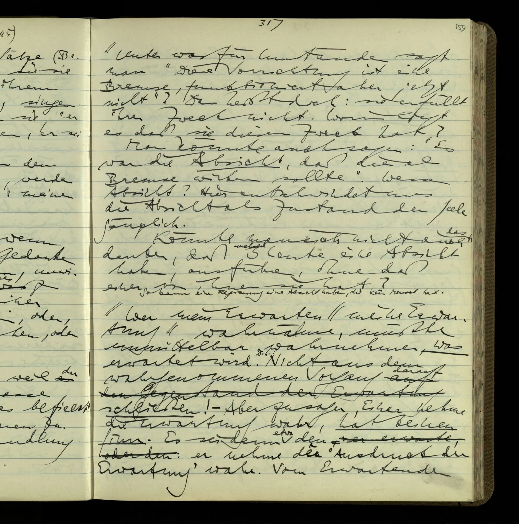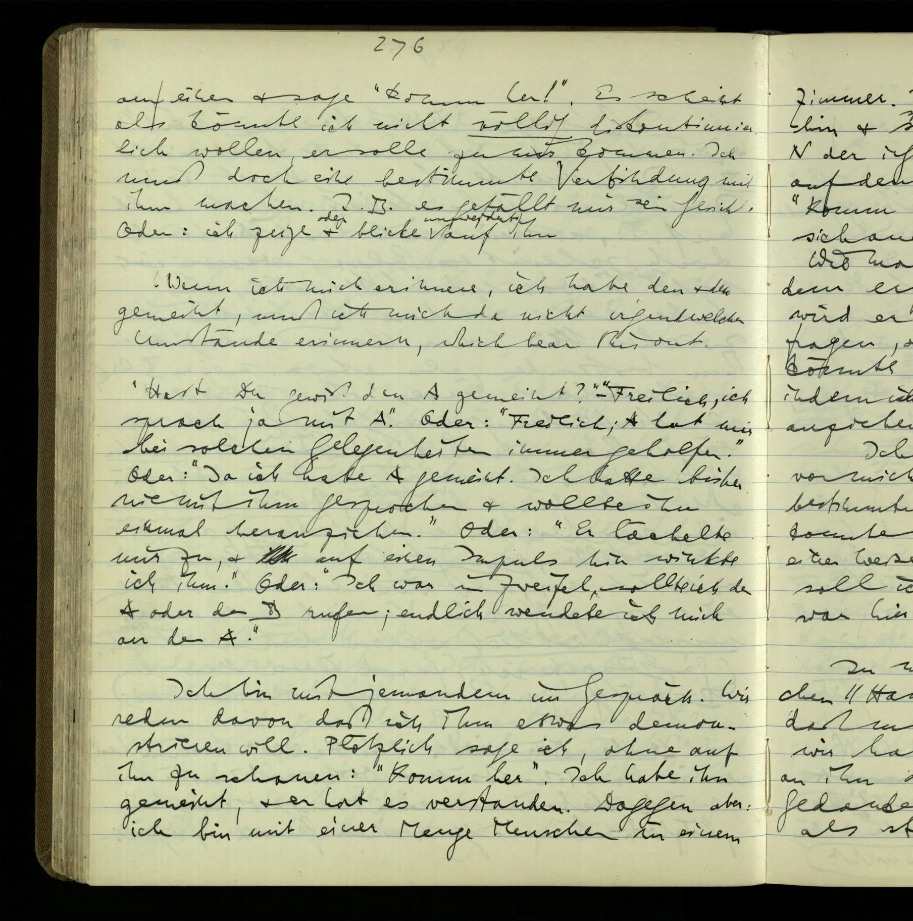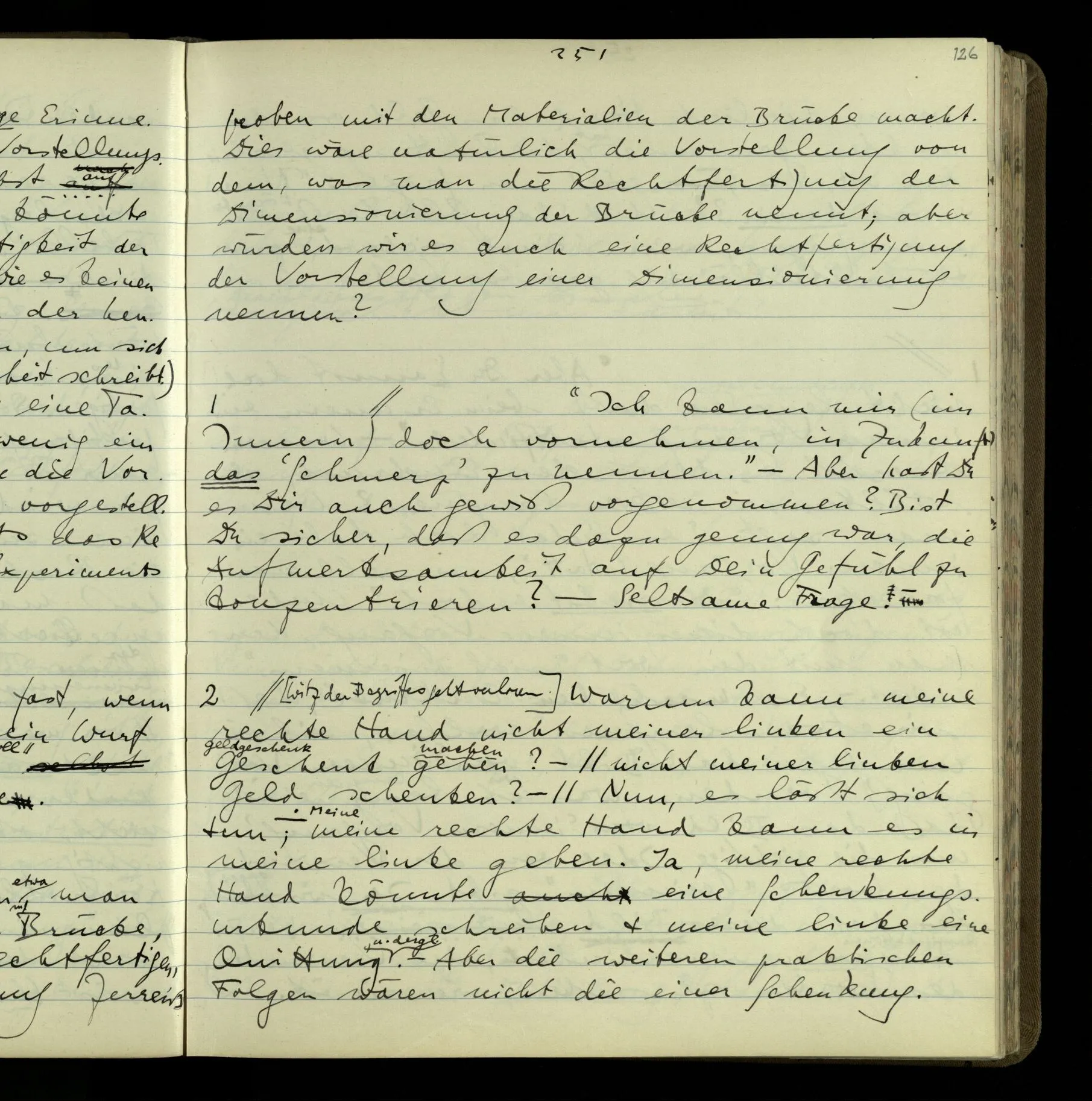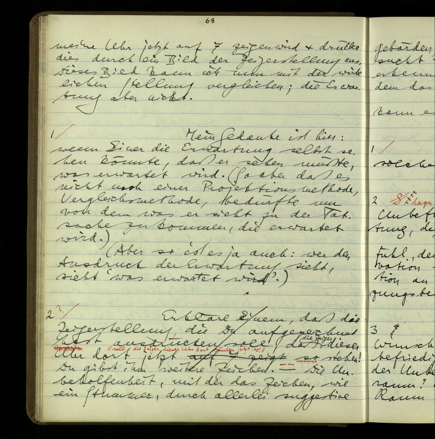 1 “Du hast mit der Hand eine Bewegung gemacht; hast Du etwas damit gemeint? – Ich dachte, Du meintest, ich solle zu Dir kommen.” Also er konnte etwas meinen, oder auch nichts meinen. Und wenn das erstere: dann, was er auch ausdrückte, oder etwas Anderes? Hat er mit seinem Ausdruck etwas anderes, als diesen, gemeint, oder hat er nur seinen Ausdruck – gemeint?