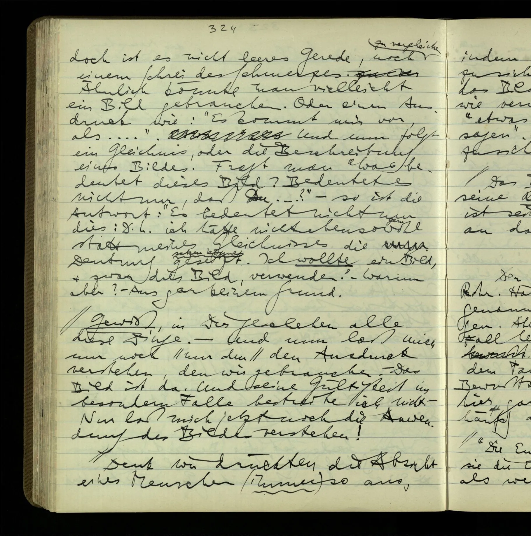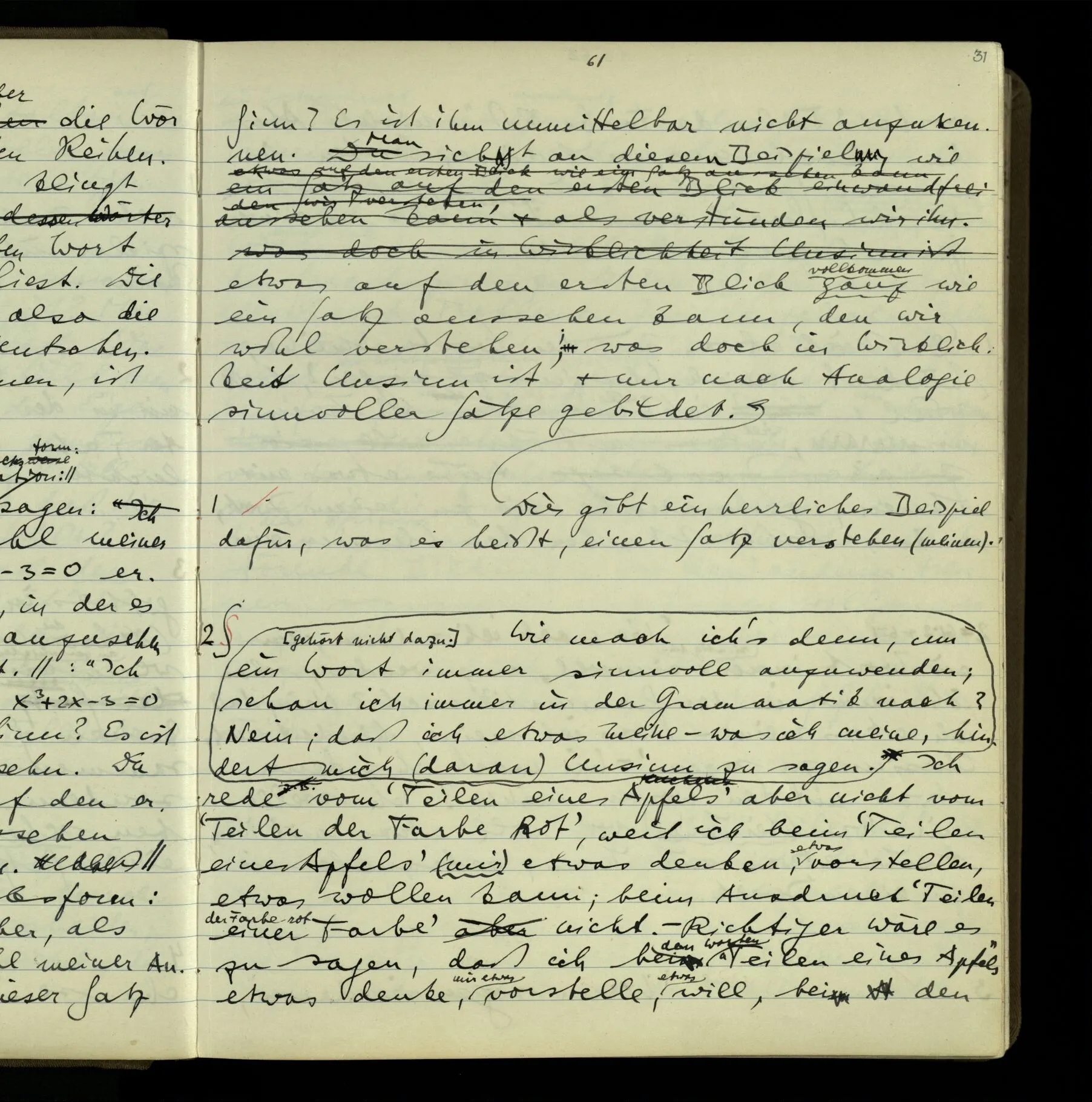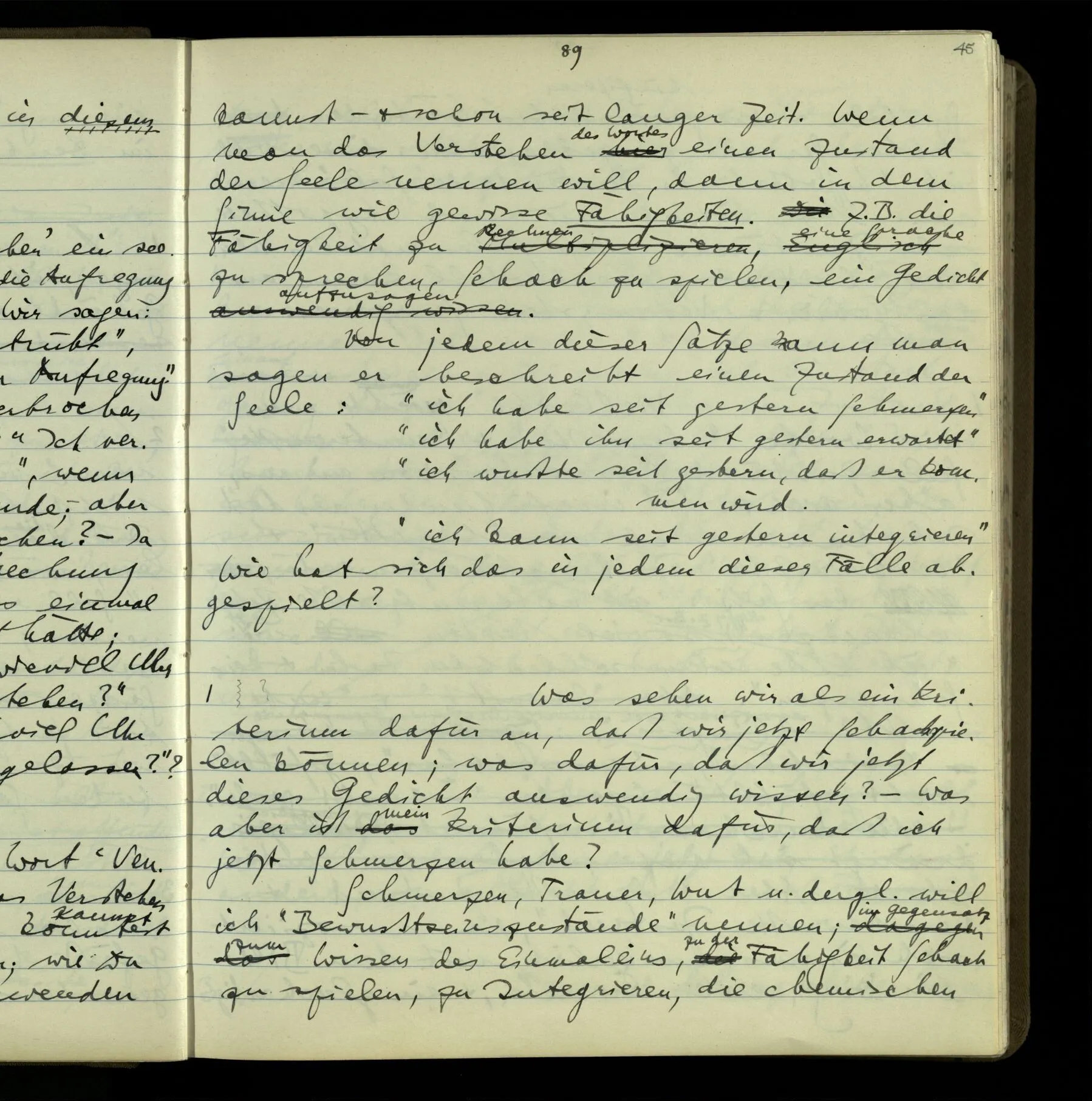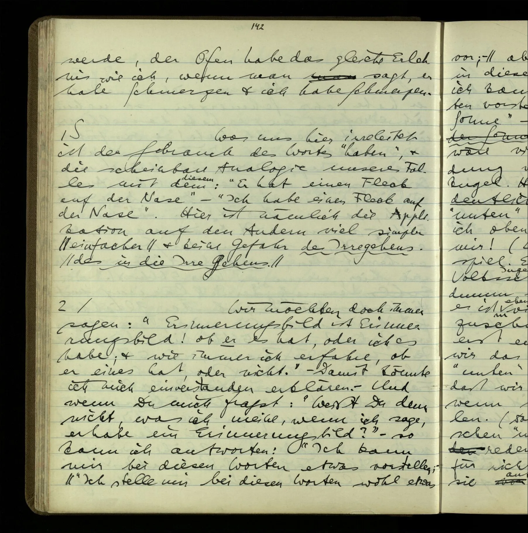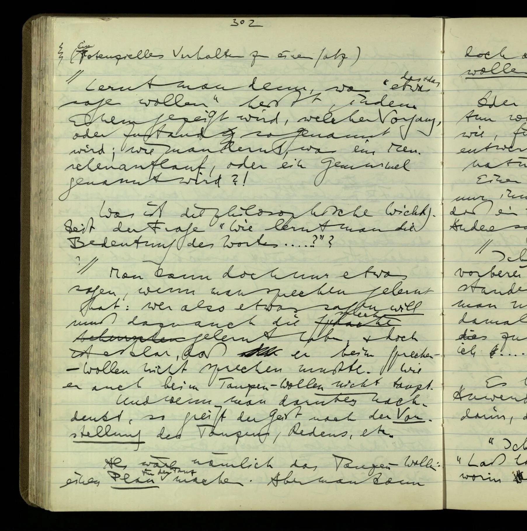 So hat also “verstehen” hier zwei verschiedene Bedeutungen? – Ich möchte sagen, diese Gebrauchsarten von “verstehen” bilden seine Bedeutung, meinen Begriff des Verstehens. Denn ich will “verstehen” auf alles das anwenden.