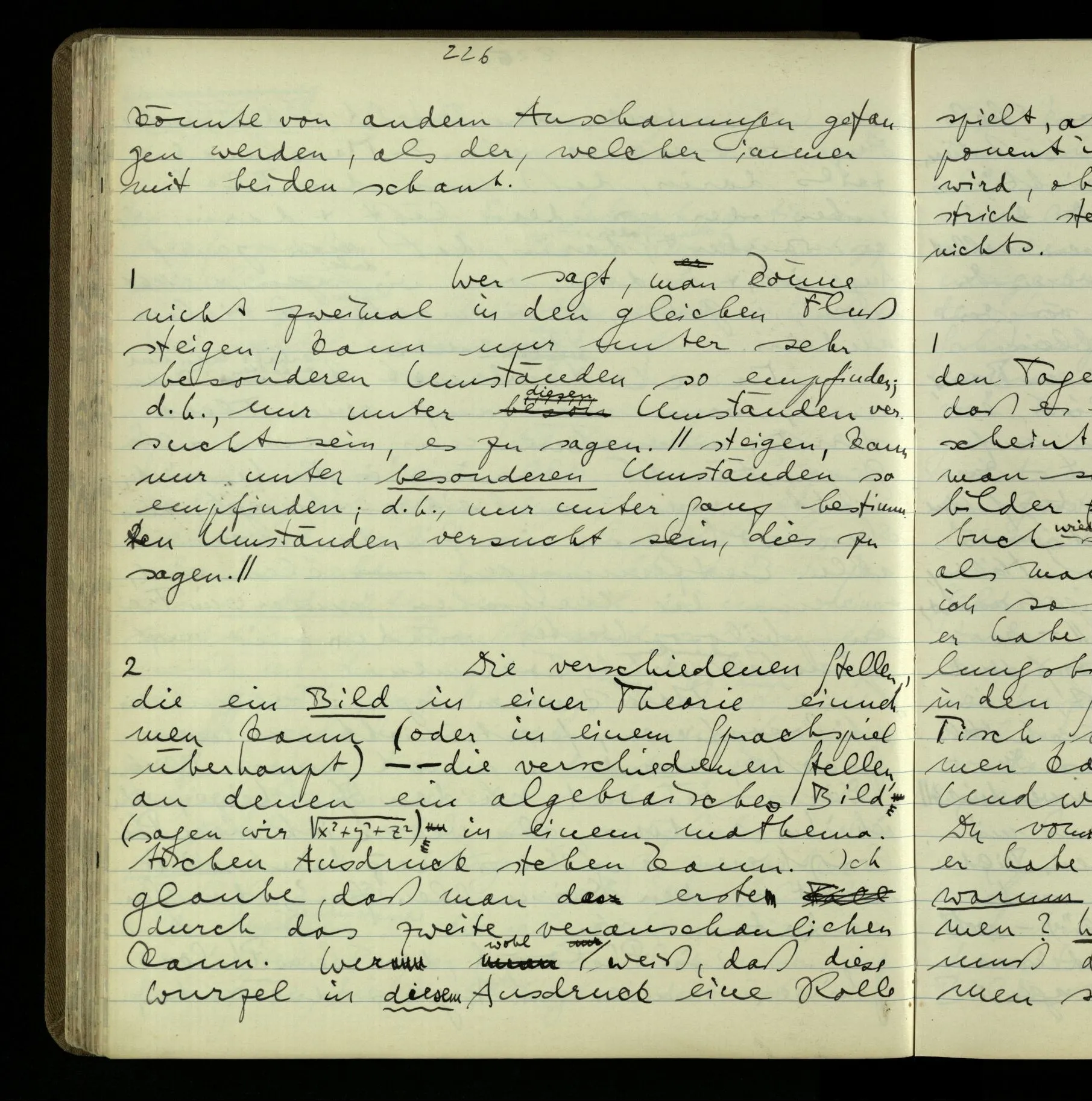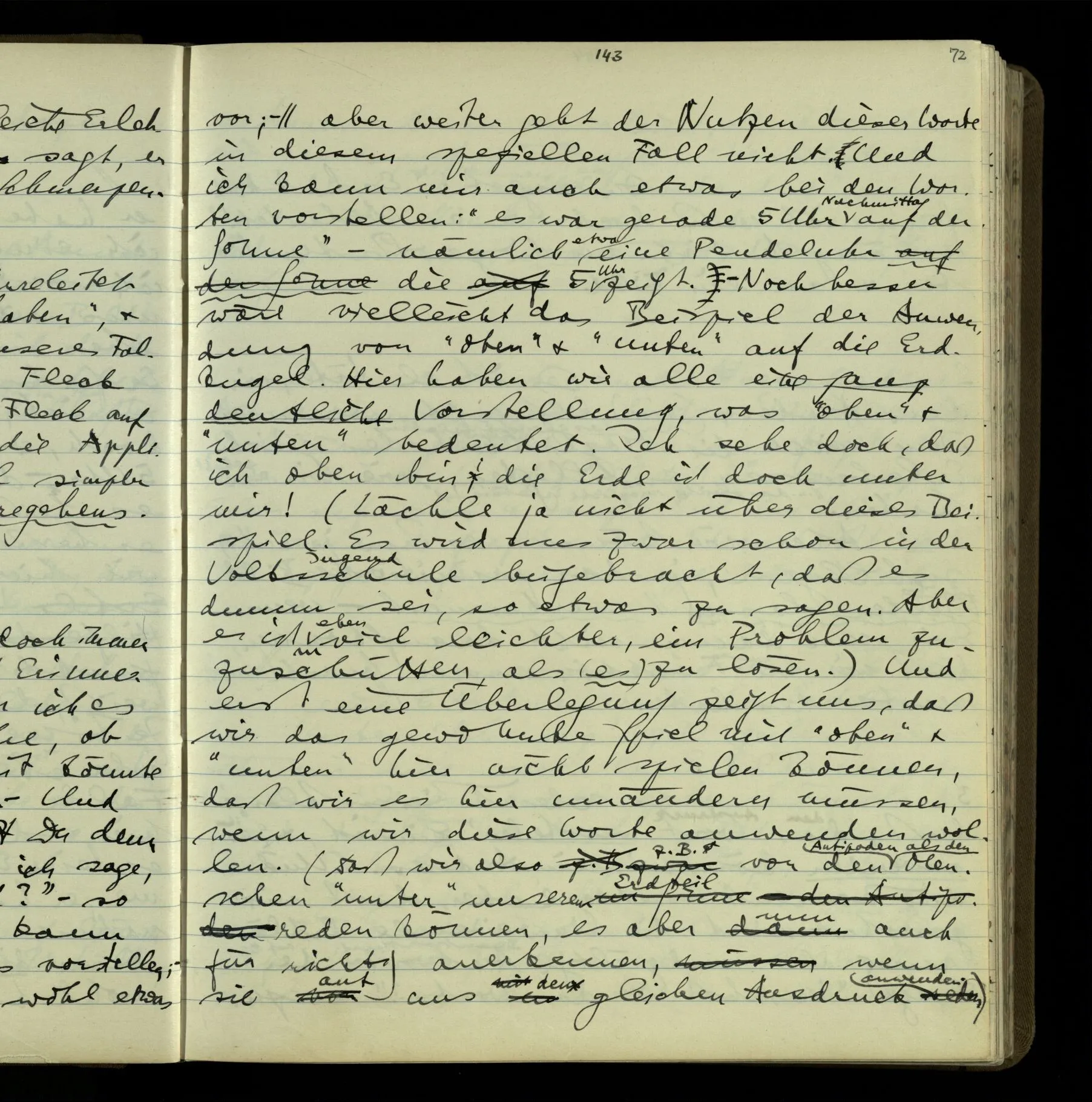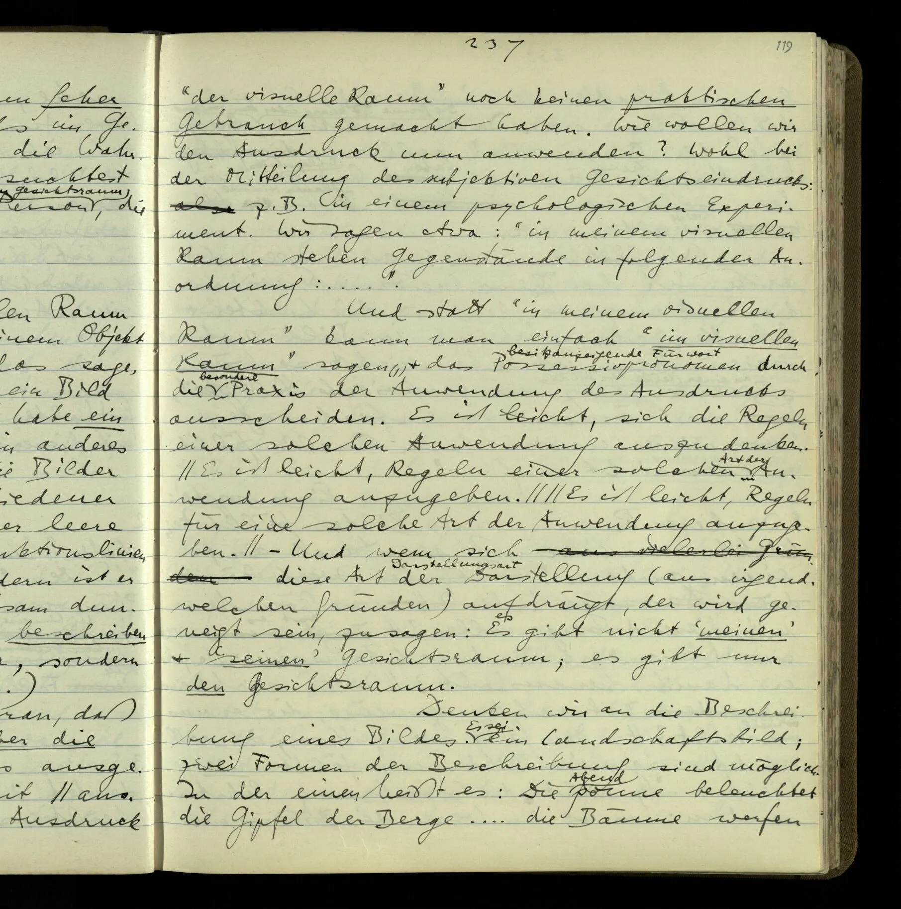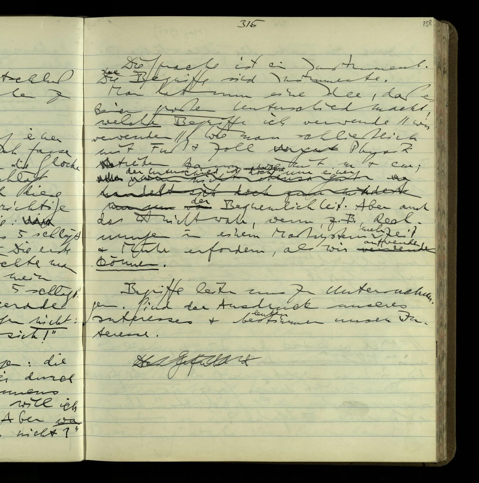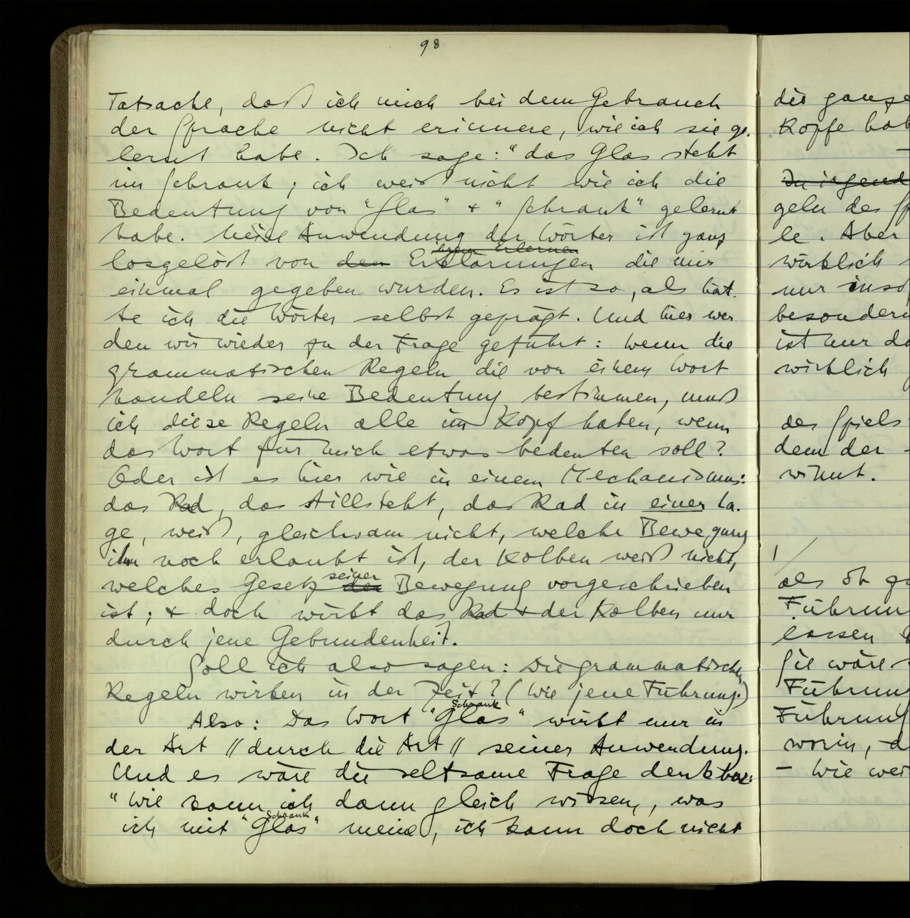So hat also “verstehen” hier zwei verschiedene Bedeutungen? – Ich möchte sagen, diese Gebrauchsarten von “verstehen” bilden seine Bedeutung, meinen Begriff des Verstehens. Denn ich will “verstehen” auf alles das anwenden.