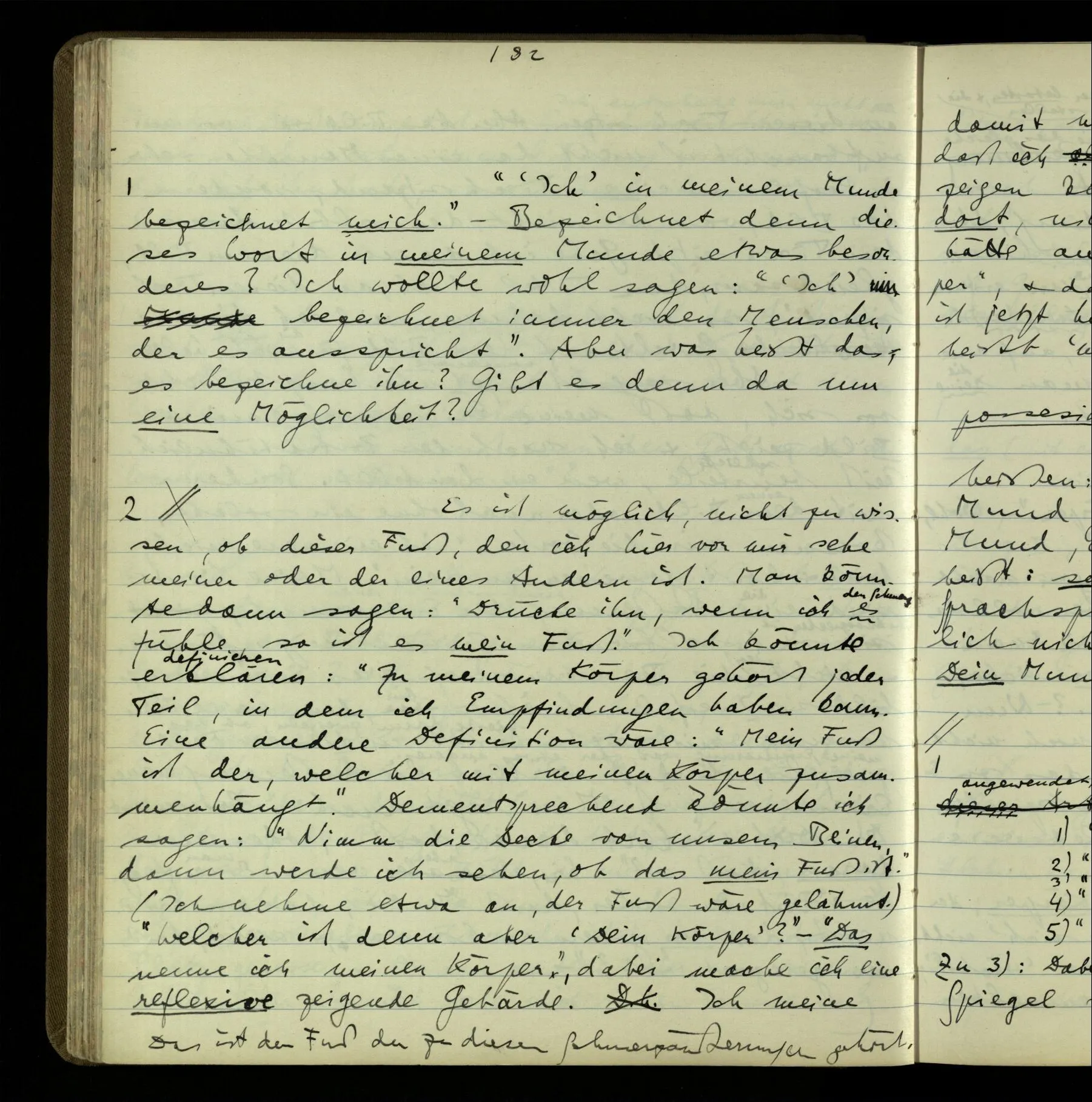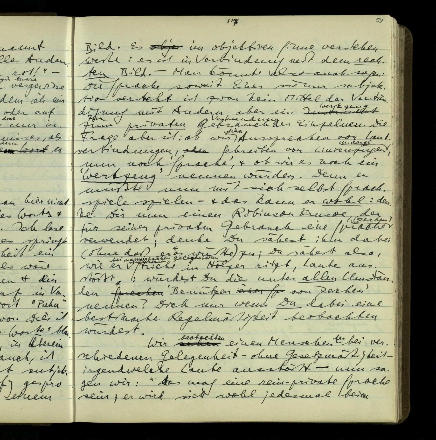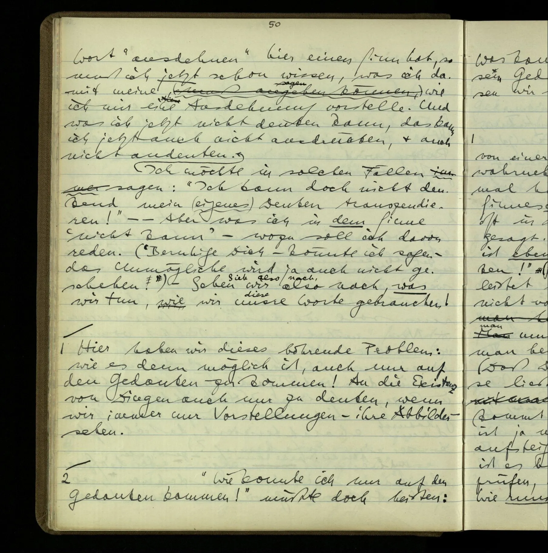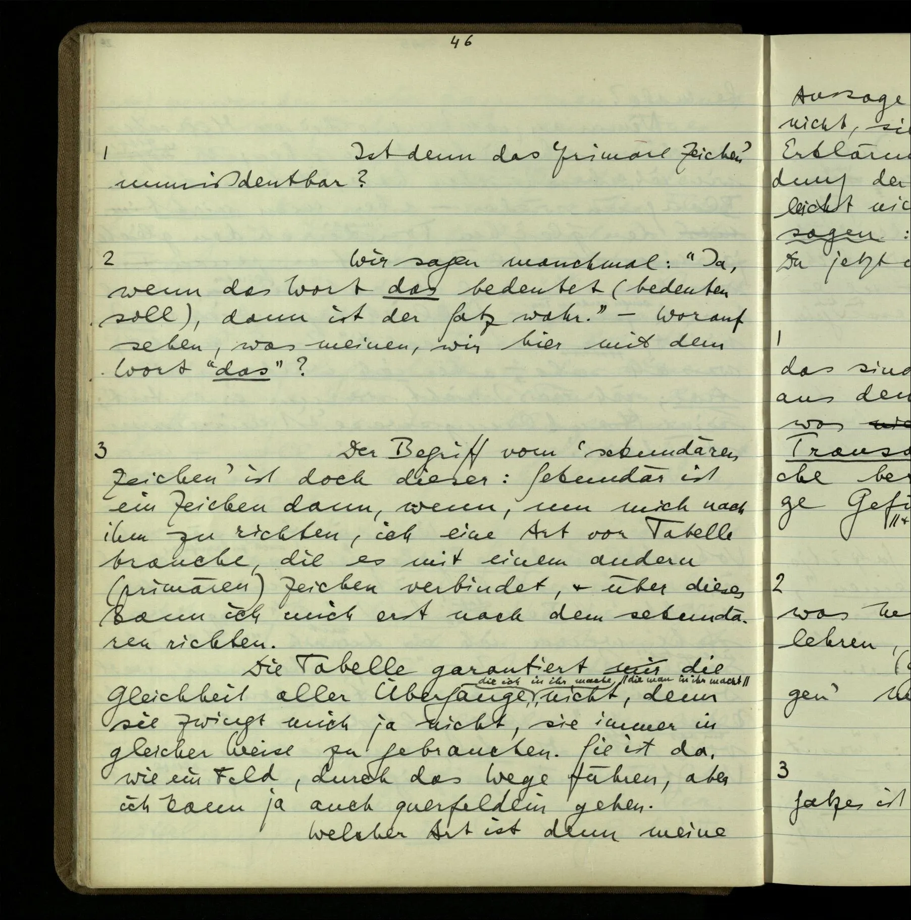 1 Wenn man aber sagt: “wie soll ich wissen, was er meint, ich sehe ja nur seine Zeichen”, so sage ich: “wie soll er wissen, was er meint, er hat ja auch nur seine Zeichen”.