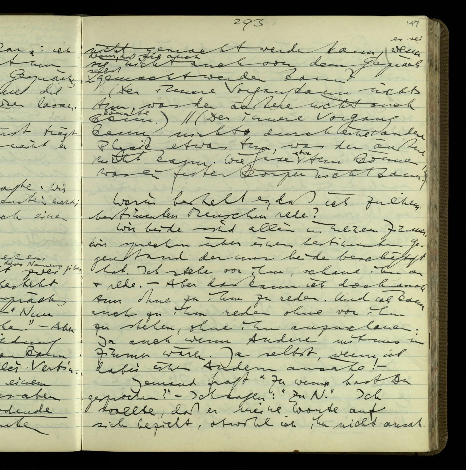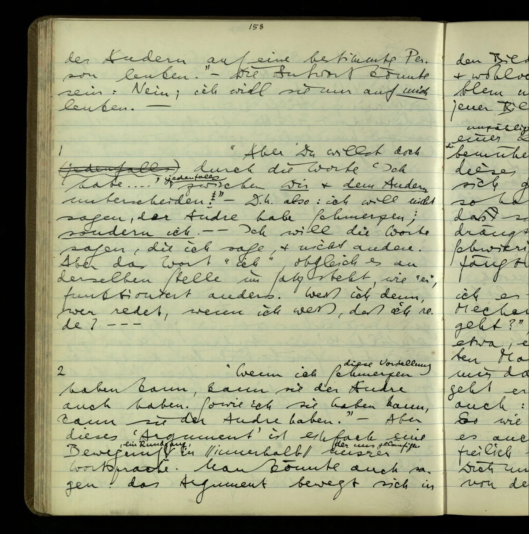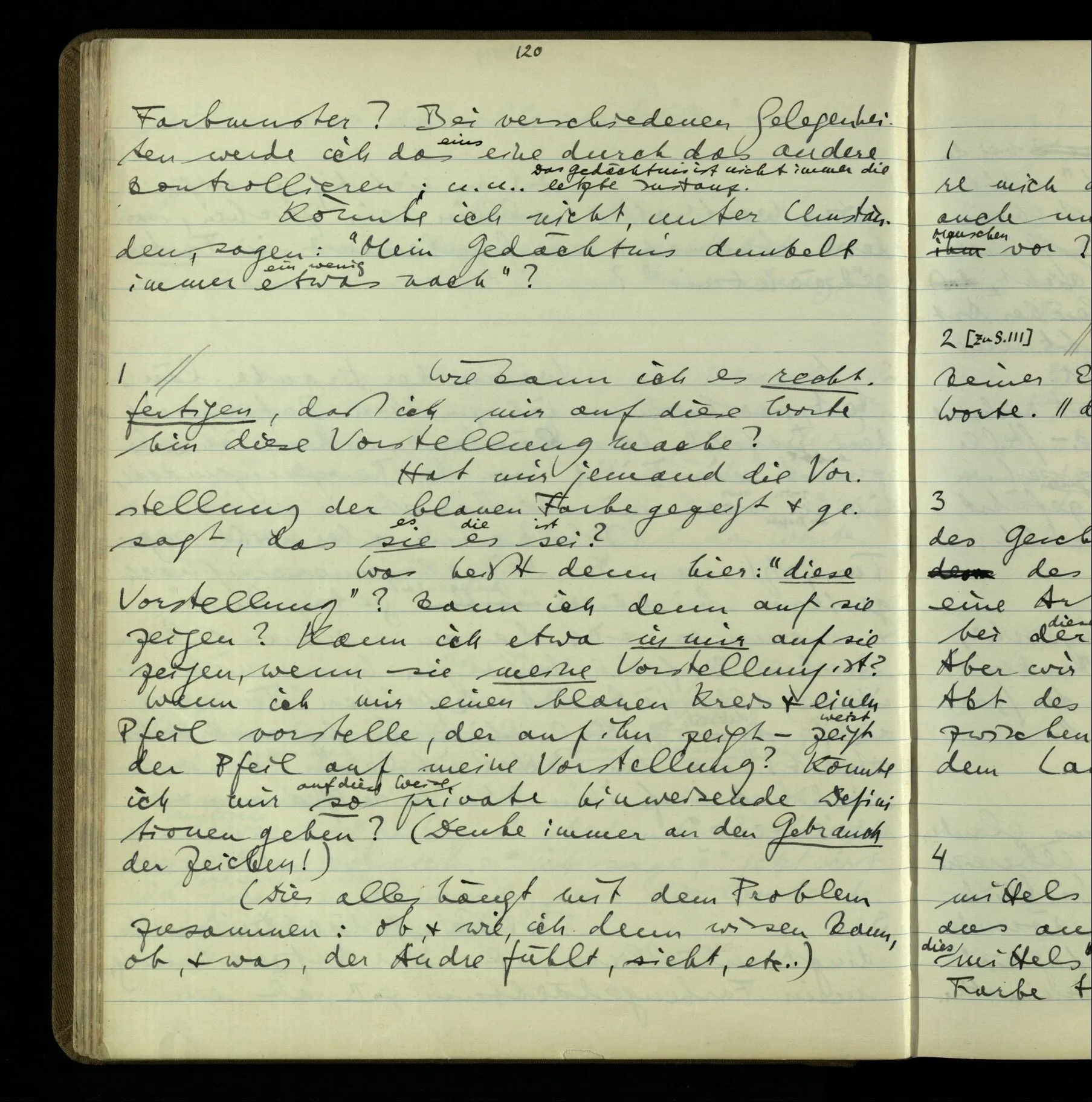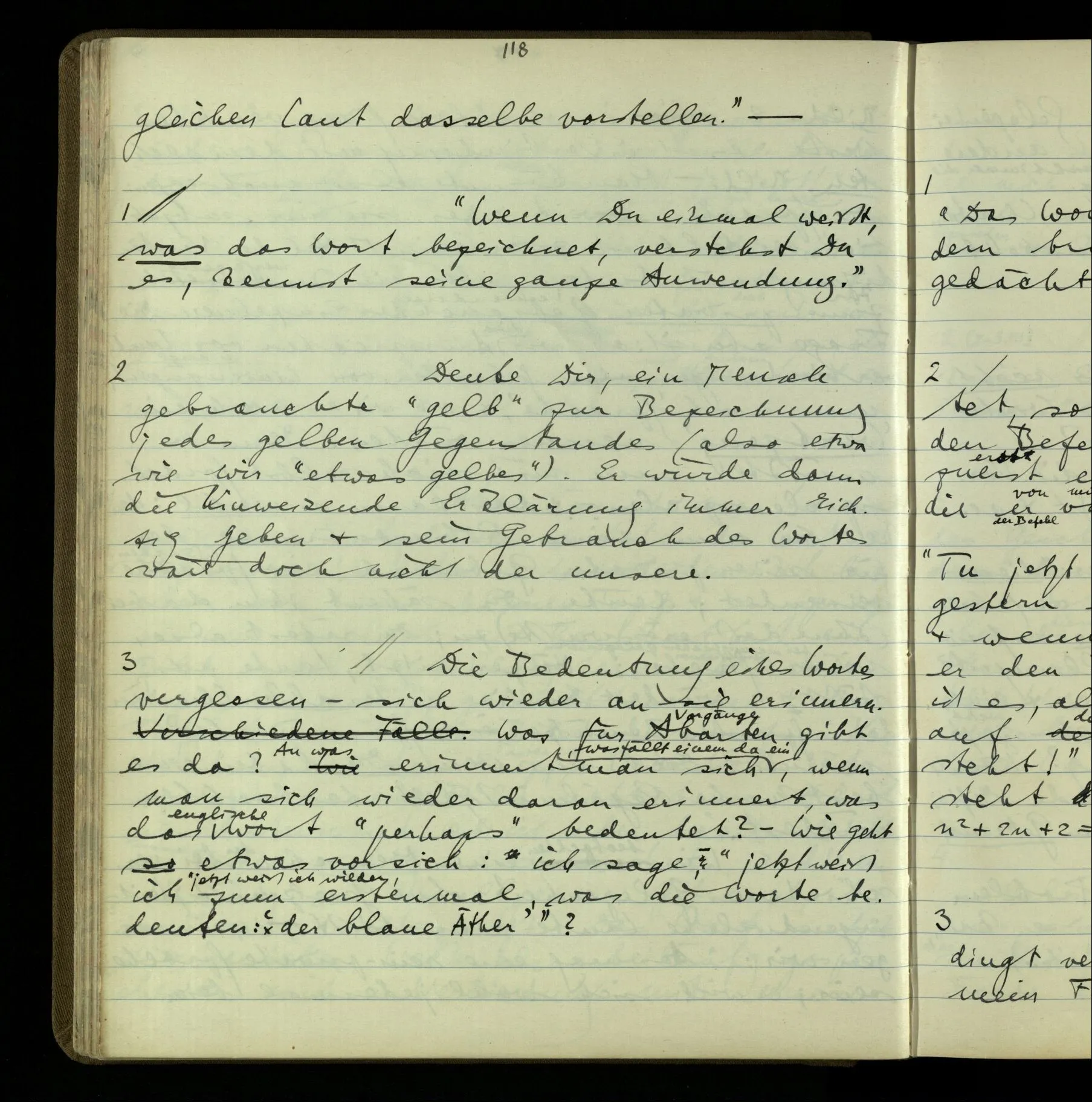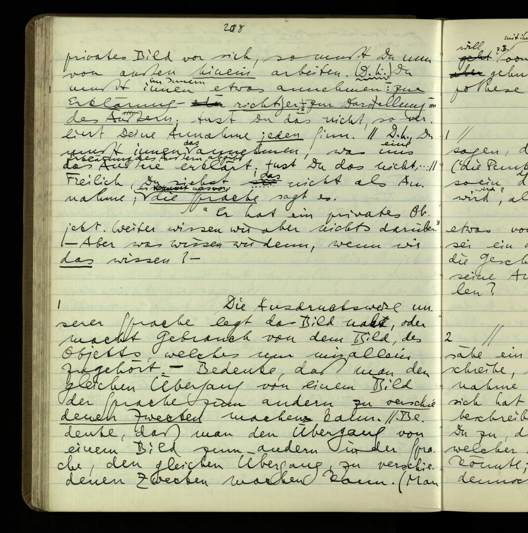 1 Wenn man aber sagt: “wie soll ich wissen, was er meint, ich sehe ja nur seine Zeichen”, so sage ich: “wie soll er wissen, was er meint, er hat ja auch nur seine Zeichen”.