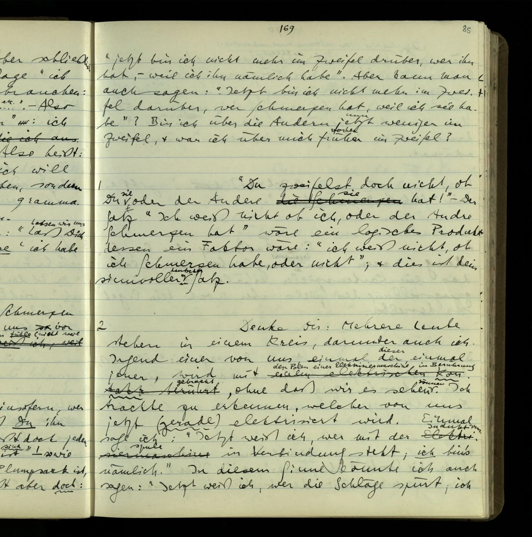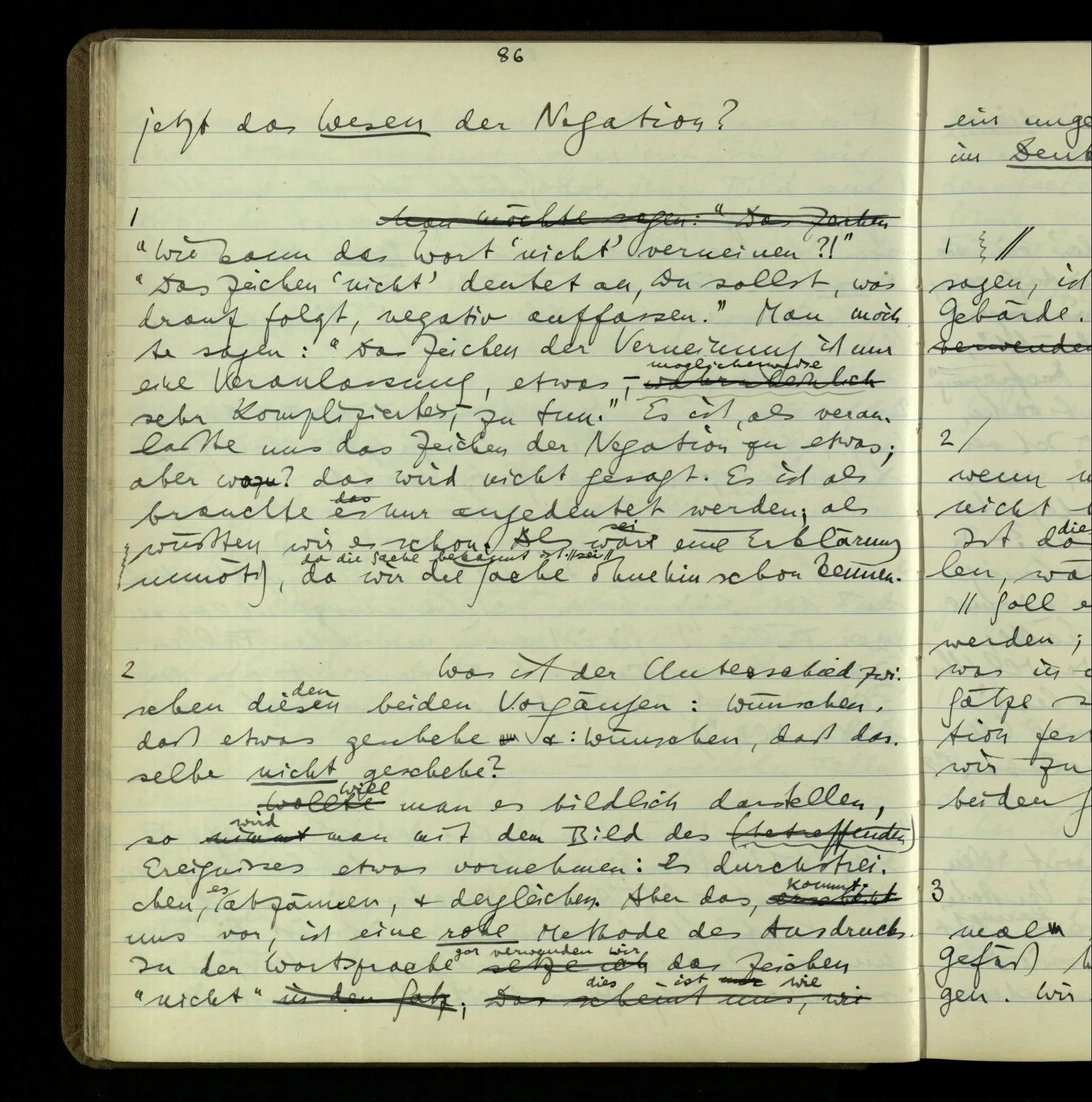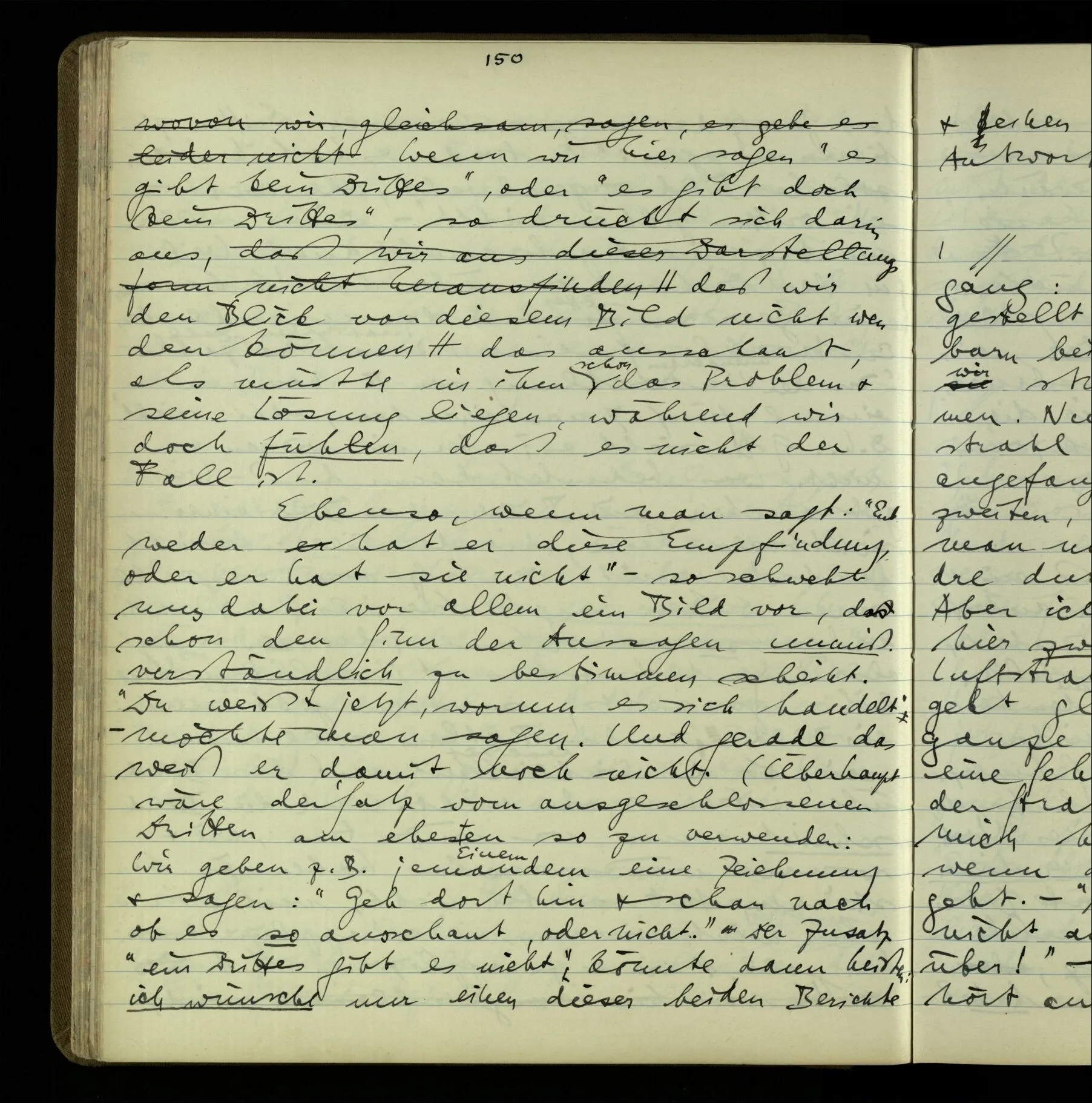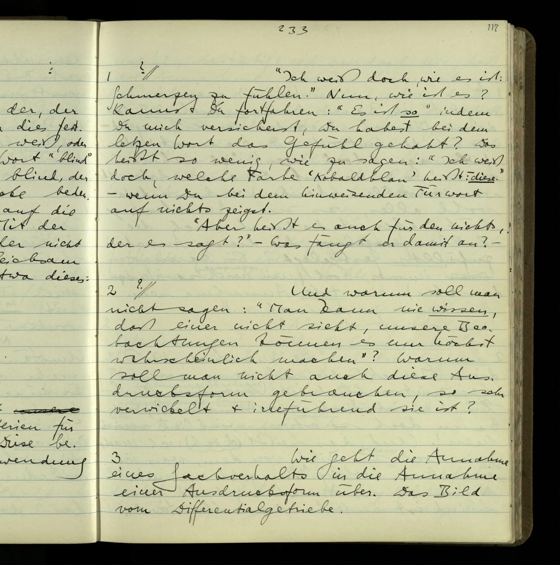 1 Wenn man aber sagt: “wie soll ich wissen, was er meint, ich sehe ja nur seine Zeichen”, so sage ich: “wie soll er wissen, was er meint, er hat ja auch nur seine Zeichen”.