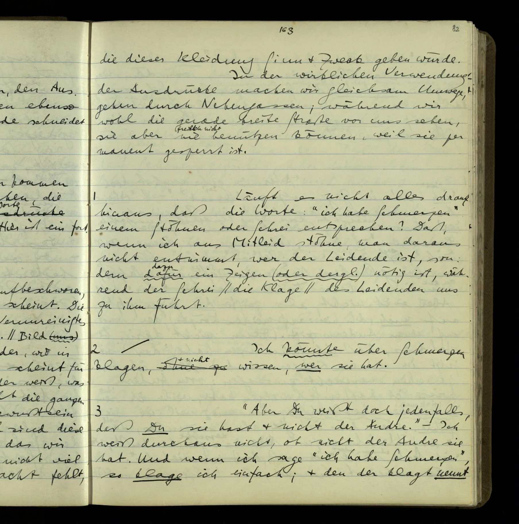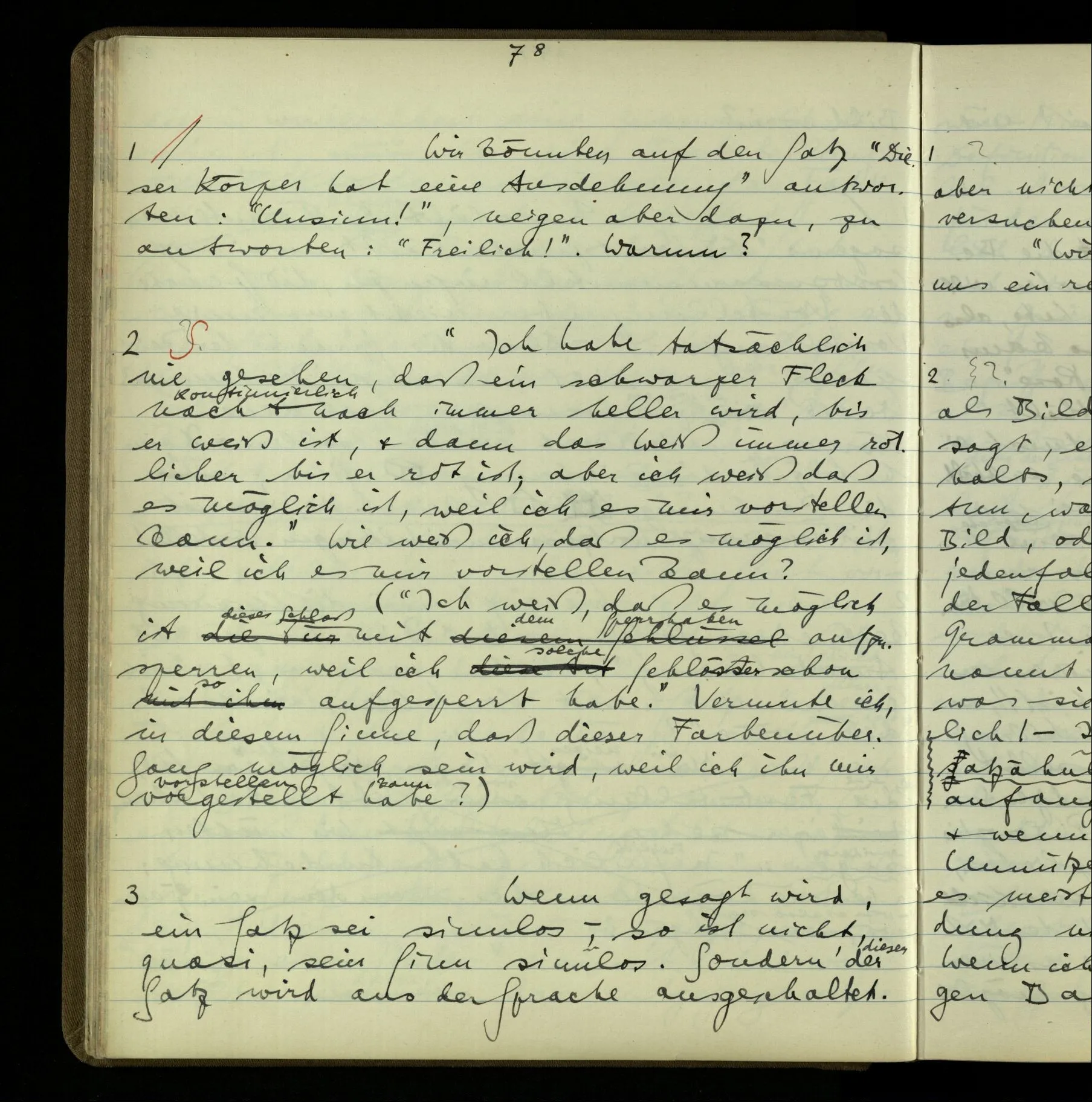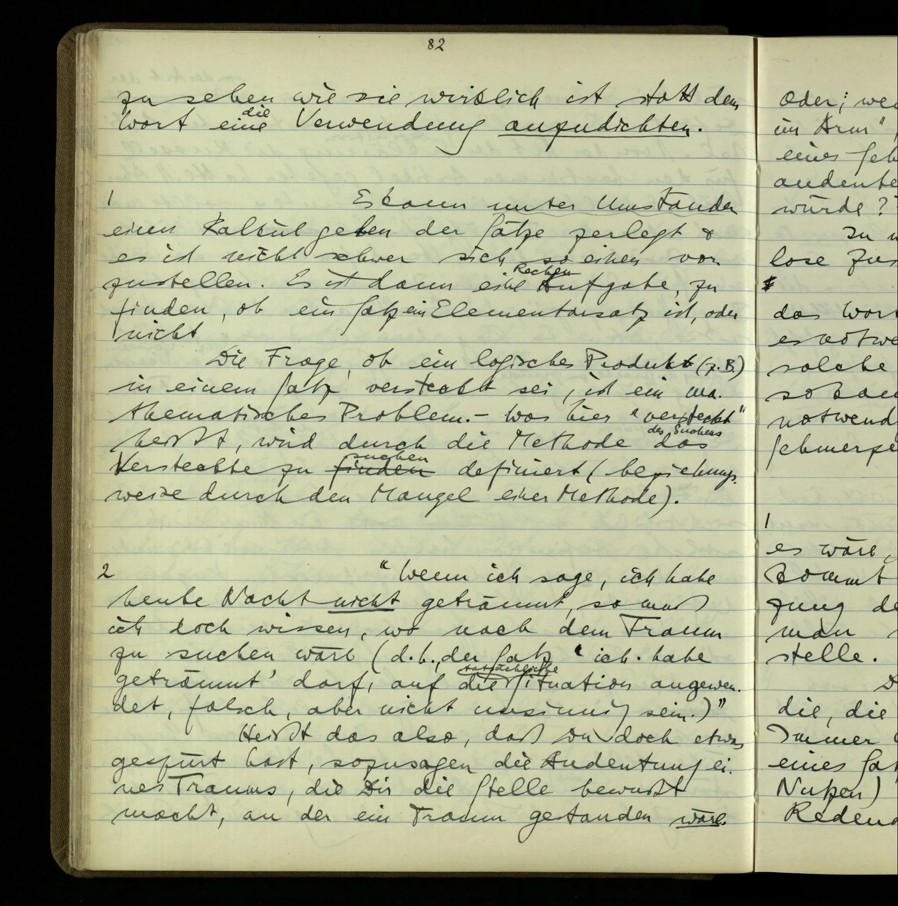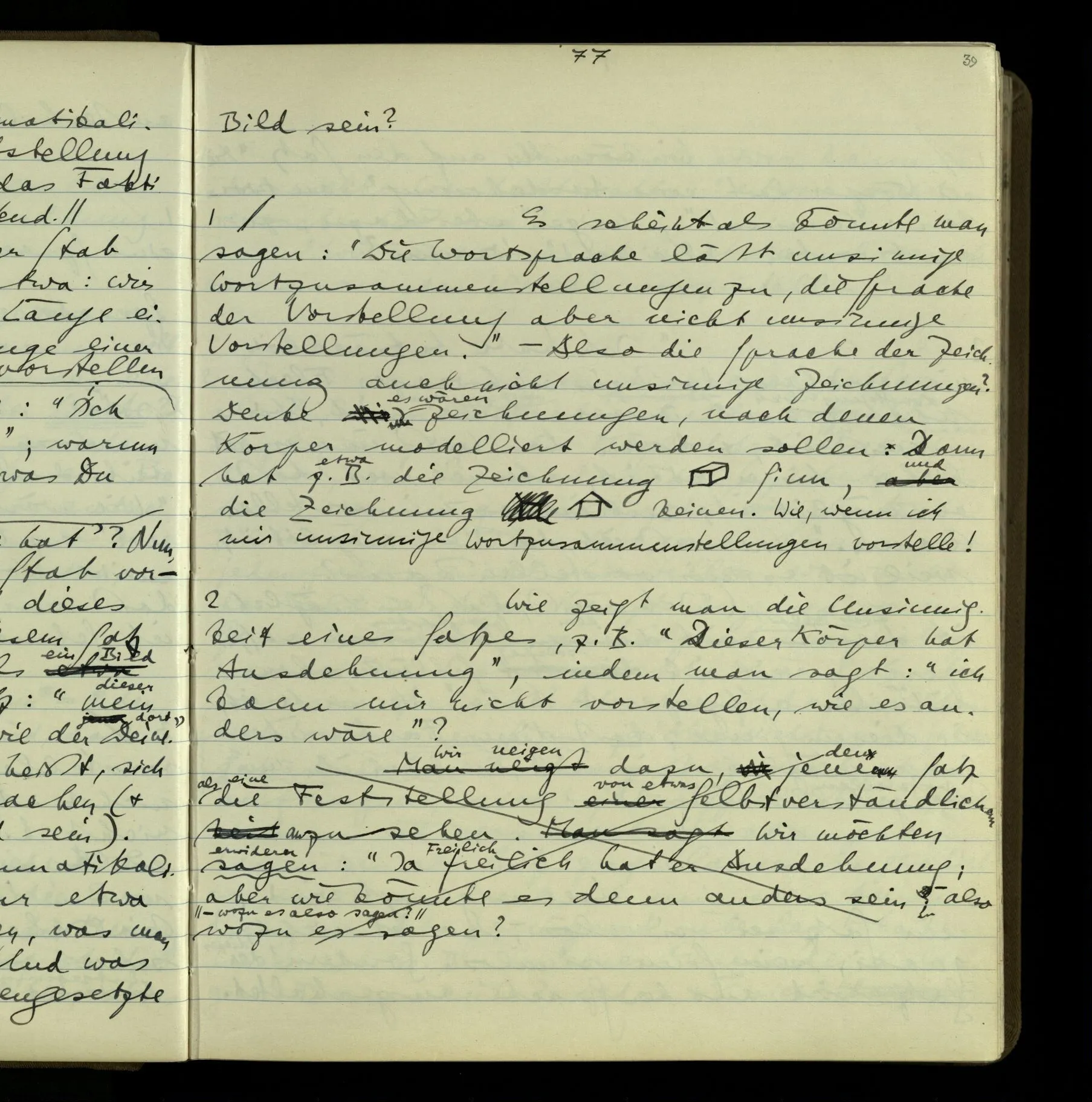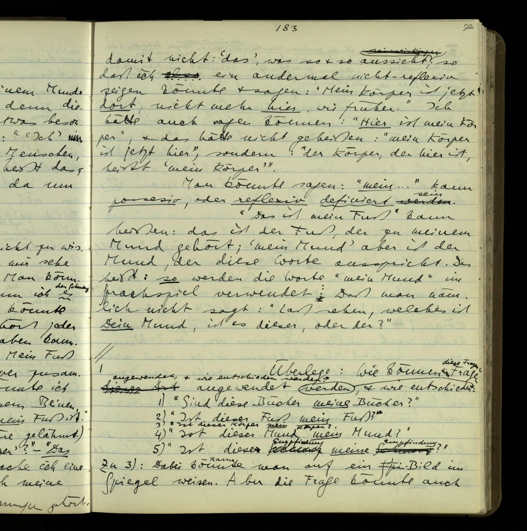 1 Wenn man aber sagt: “wie soll ich wissen, was er meint, ich sehe ja nur seine Zeichen”, so sage ich: “wie soll er wissen, was er meint, er hat ja auch nur seine Zeichen”.
