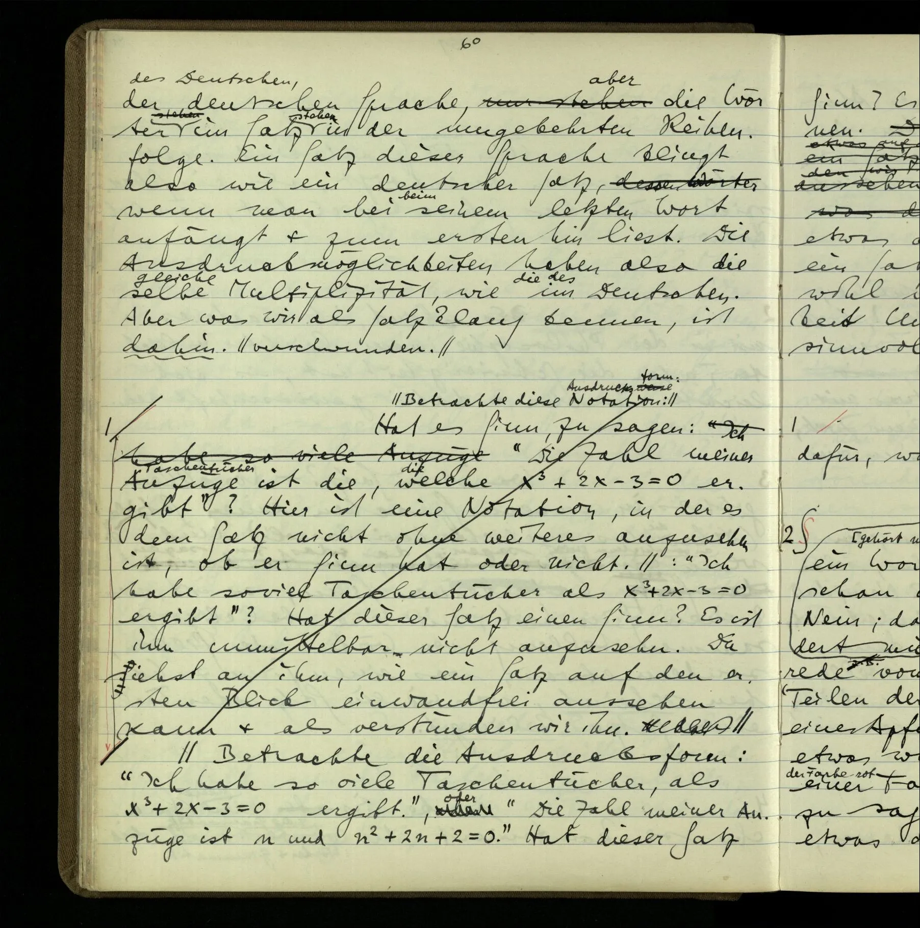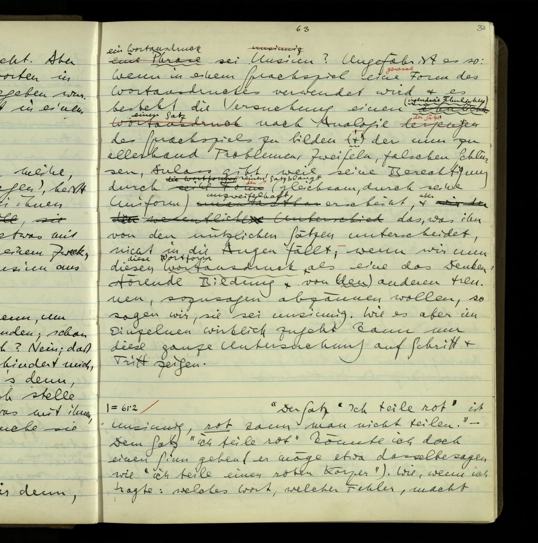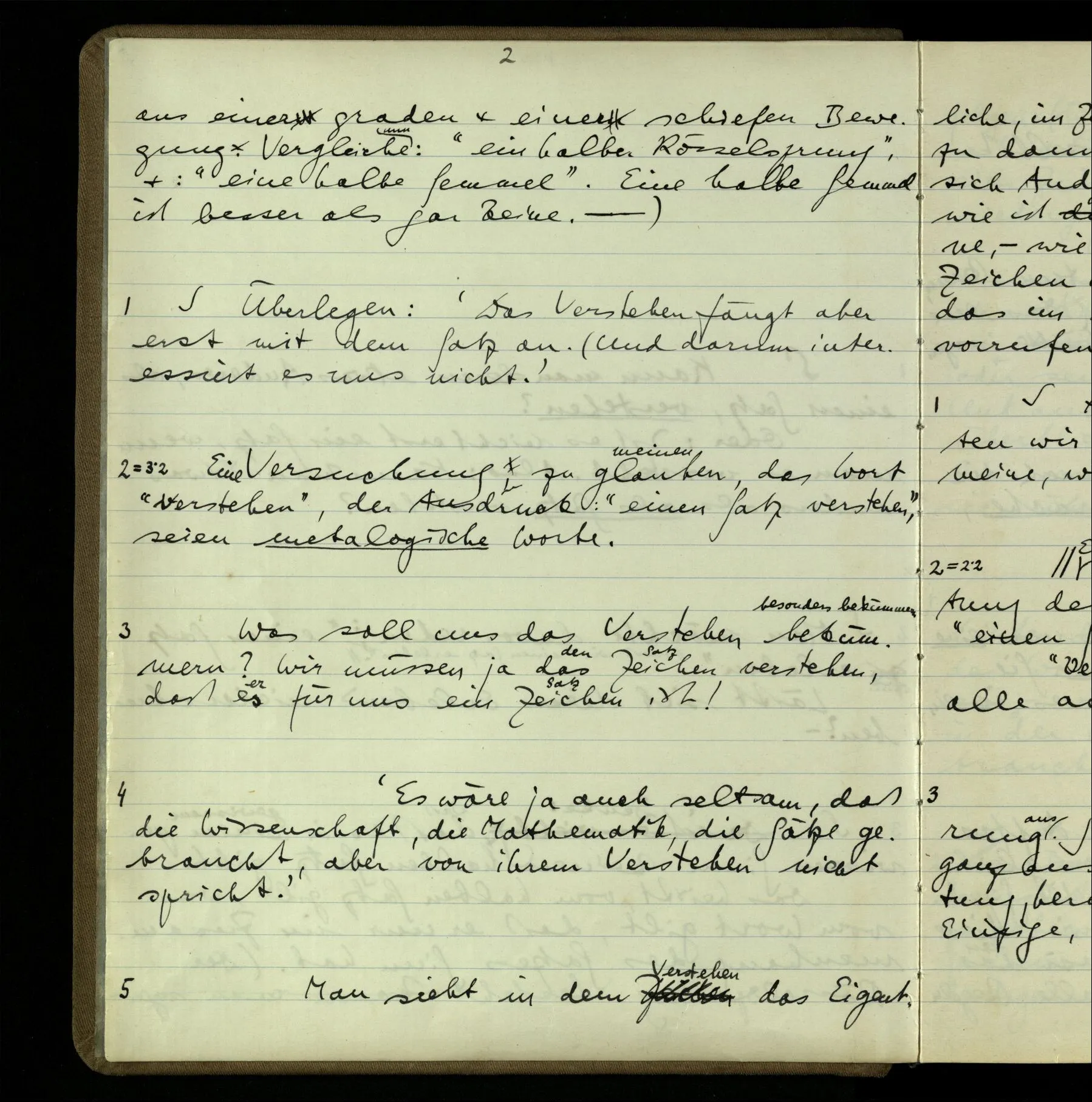 2 = 3˙2 Eine Versuchung, zu glauben, das Wort “verstehen”, der Ausdruck: “einen Satz verstehen”, seien metalogische Worte.