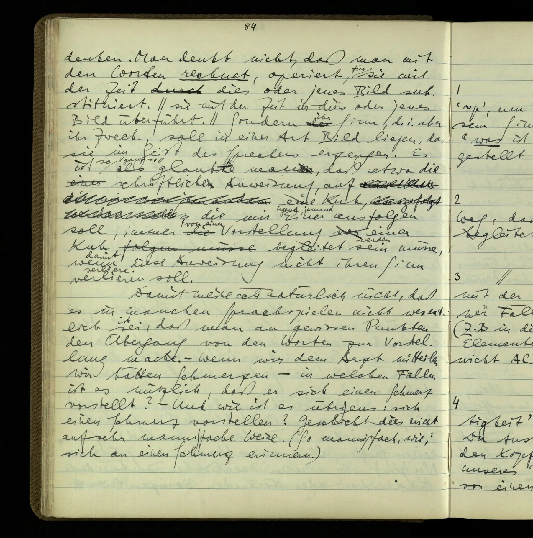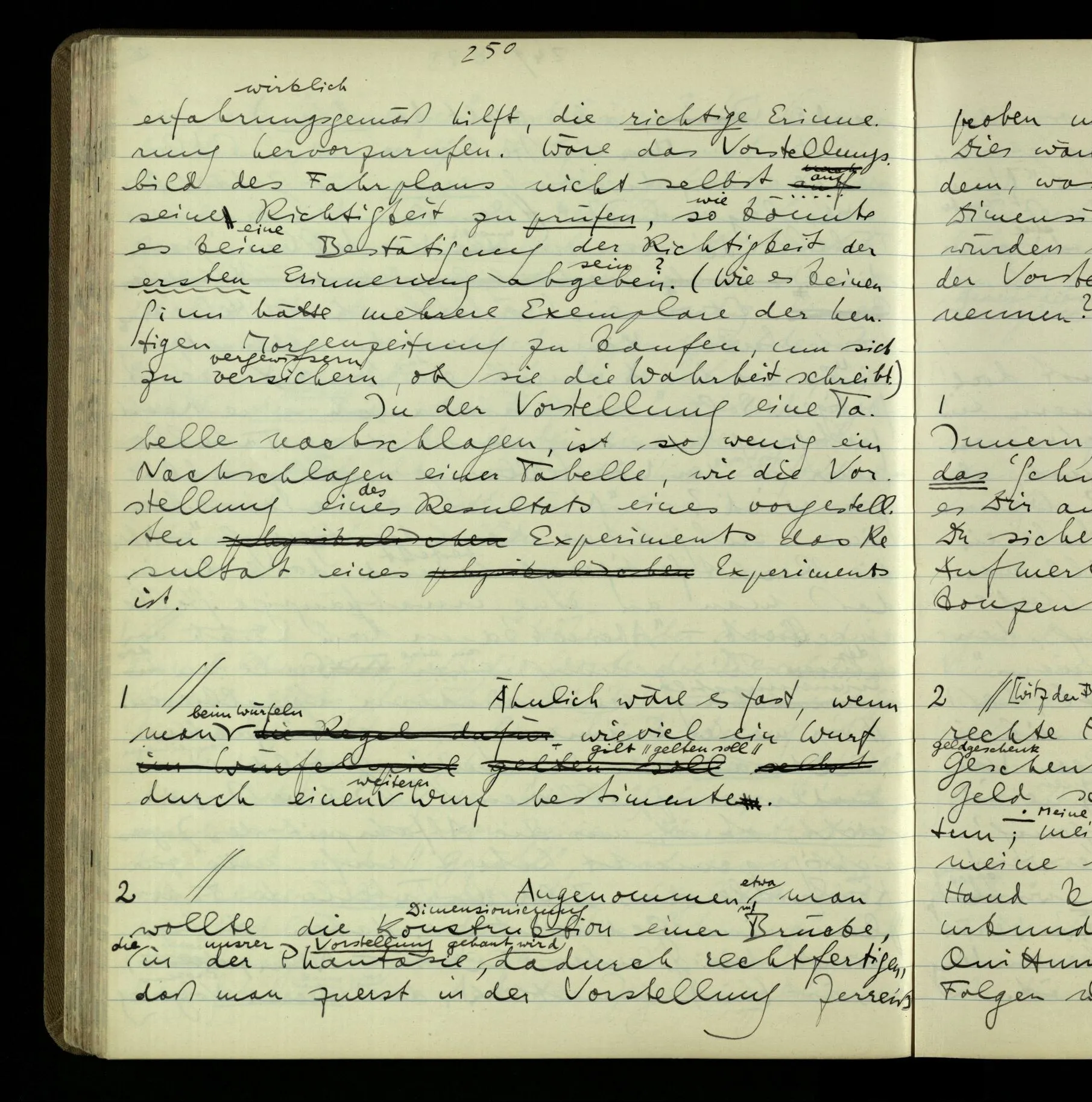 Wie weiß ich daß dieser Gedankengang mich zu dieser Handlung geführt hat? Nun, es ist ein bestimmtes Bild: z.B., in einer experimentellen Untersuchung durch eine Rechnung zu einem Experiment geführt werden. Es sieht so aus: … & nun könnte ich ein Beispiel beschreiben.
