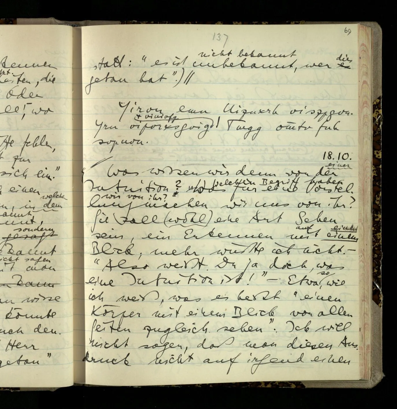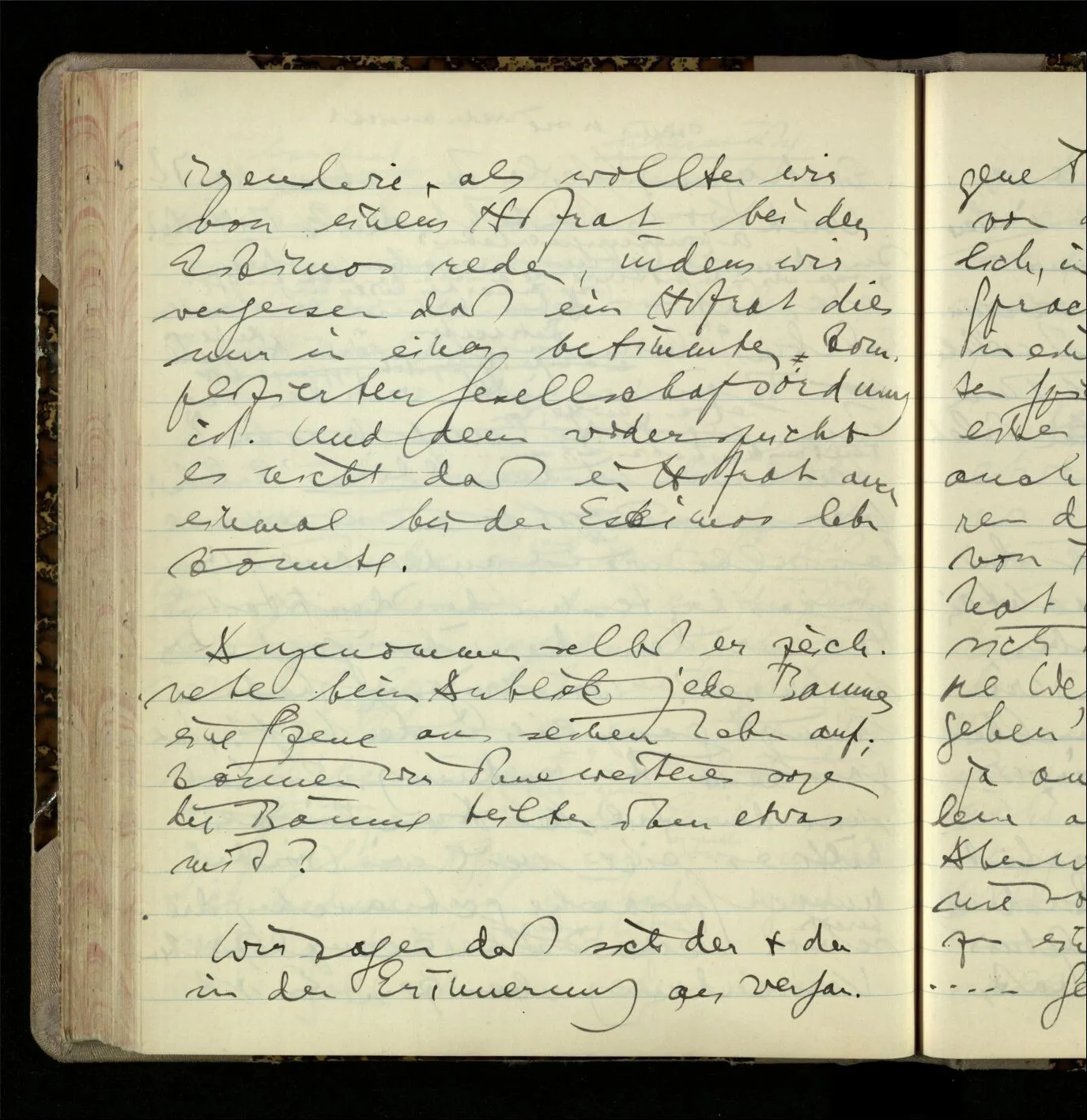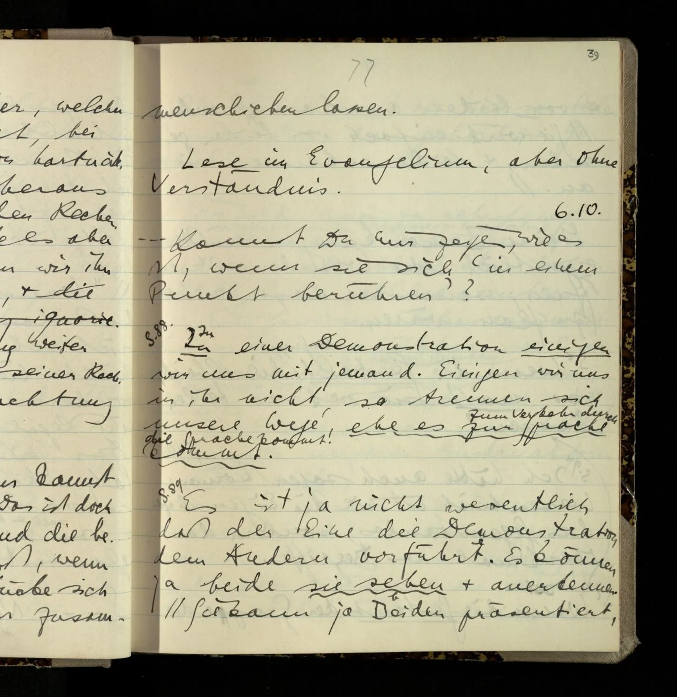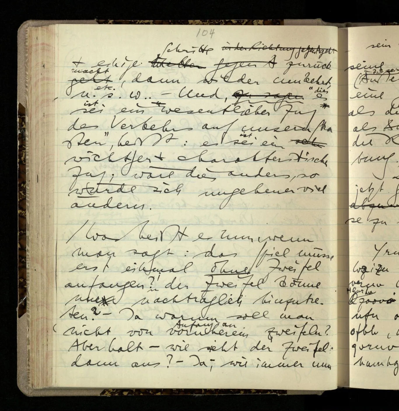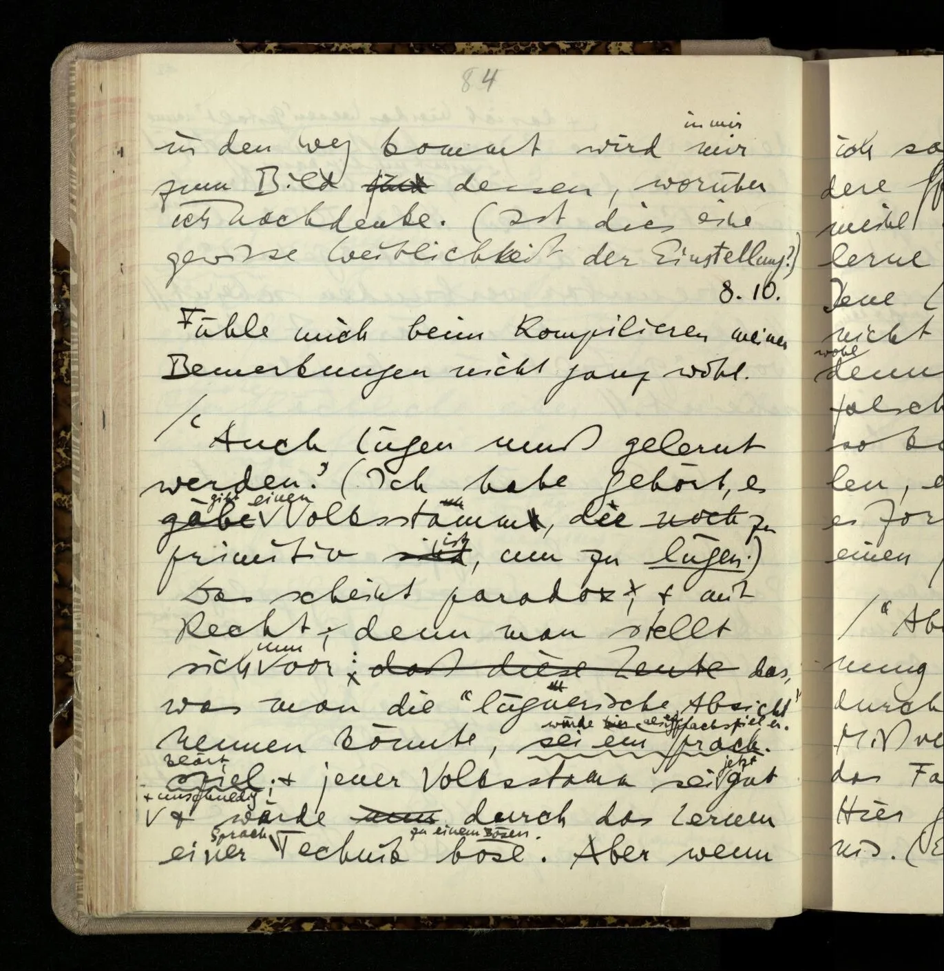 24.09.1937 Was wir liefern sind eigentlich Bemerkungen zur Naturgeschichte des Menschen; aber nicht kuriose Beiträge, sondern solche Feststellungen, an denen niemand gezweifelt hat, & die dem Bemerktwerden nur entgehen, weil sie ständig vor unsern Augen sind.