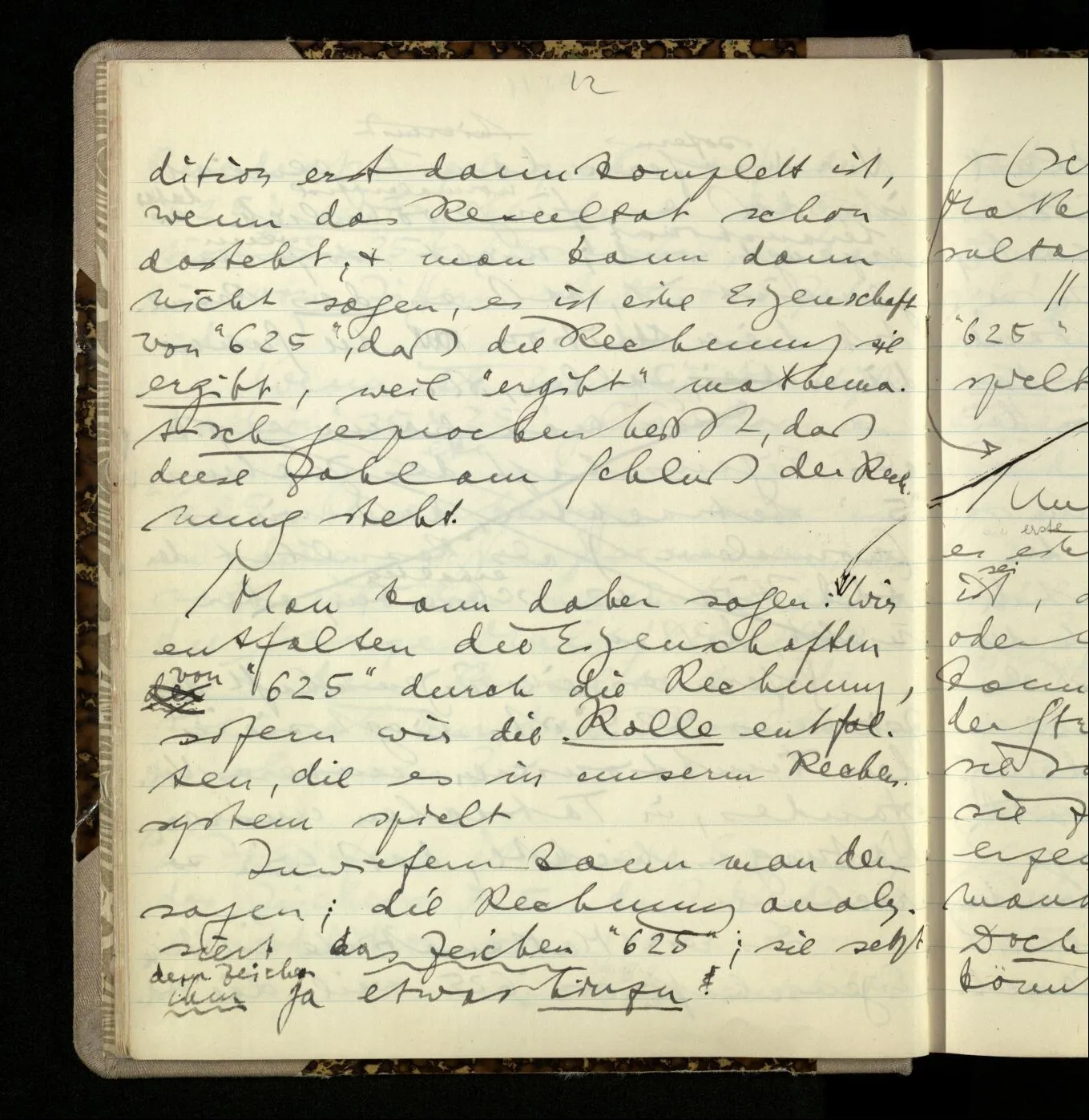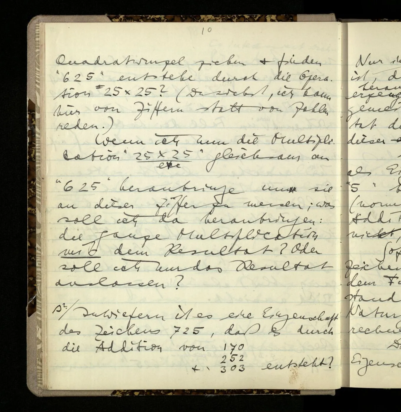 Man kann daher sagen: Wir entfalten die Rolle, die “625” in unserm Rechensystem spielt. Inwiefern kann man denn sagen, die Rechnung analysiert das Zeichen “625”, sie setzt ihm ja etwas hinzu.