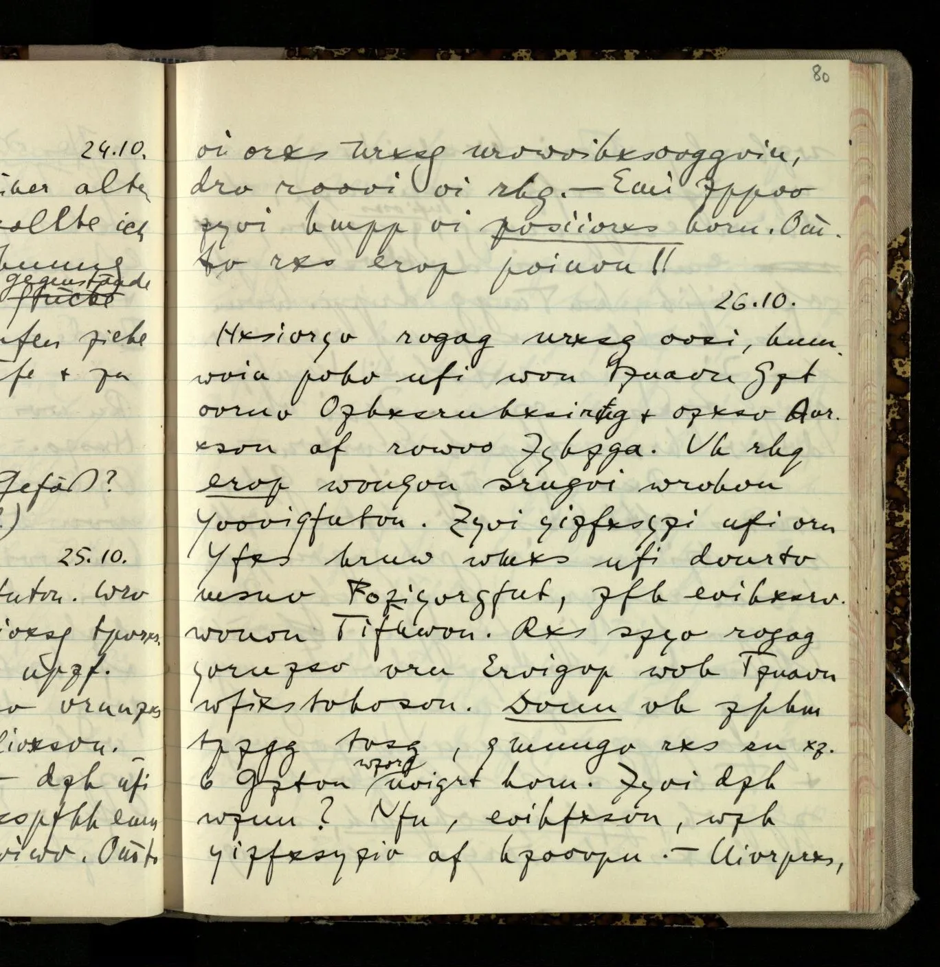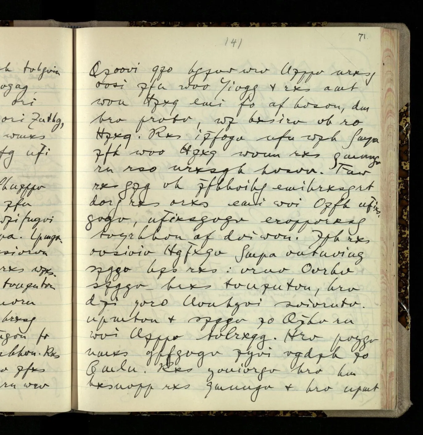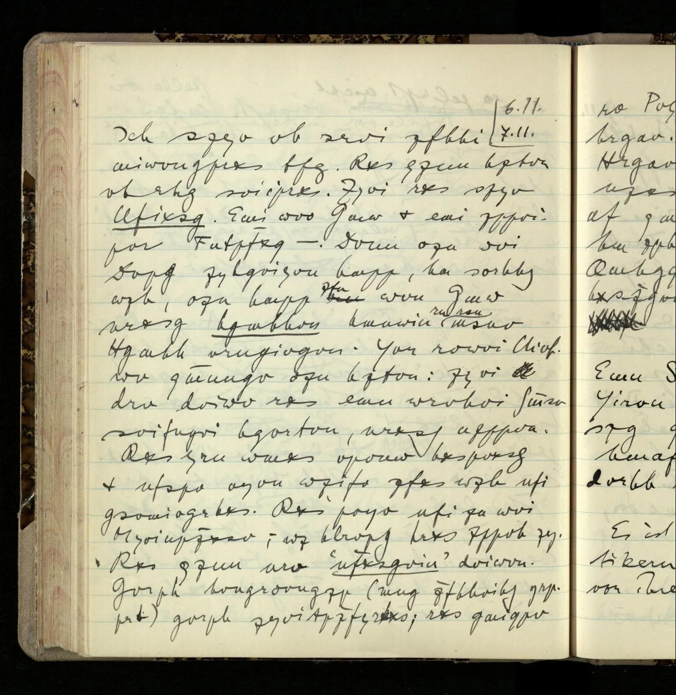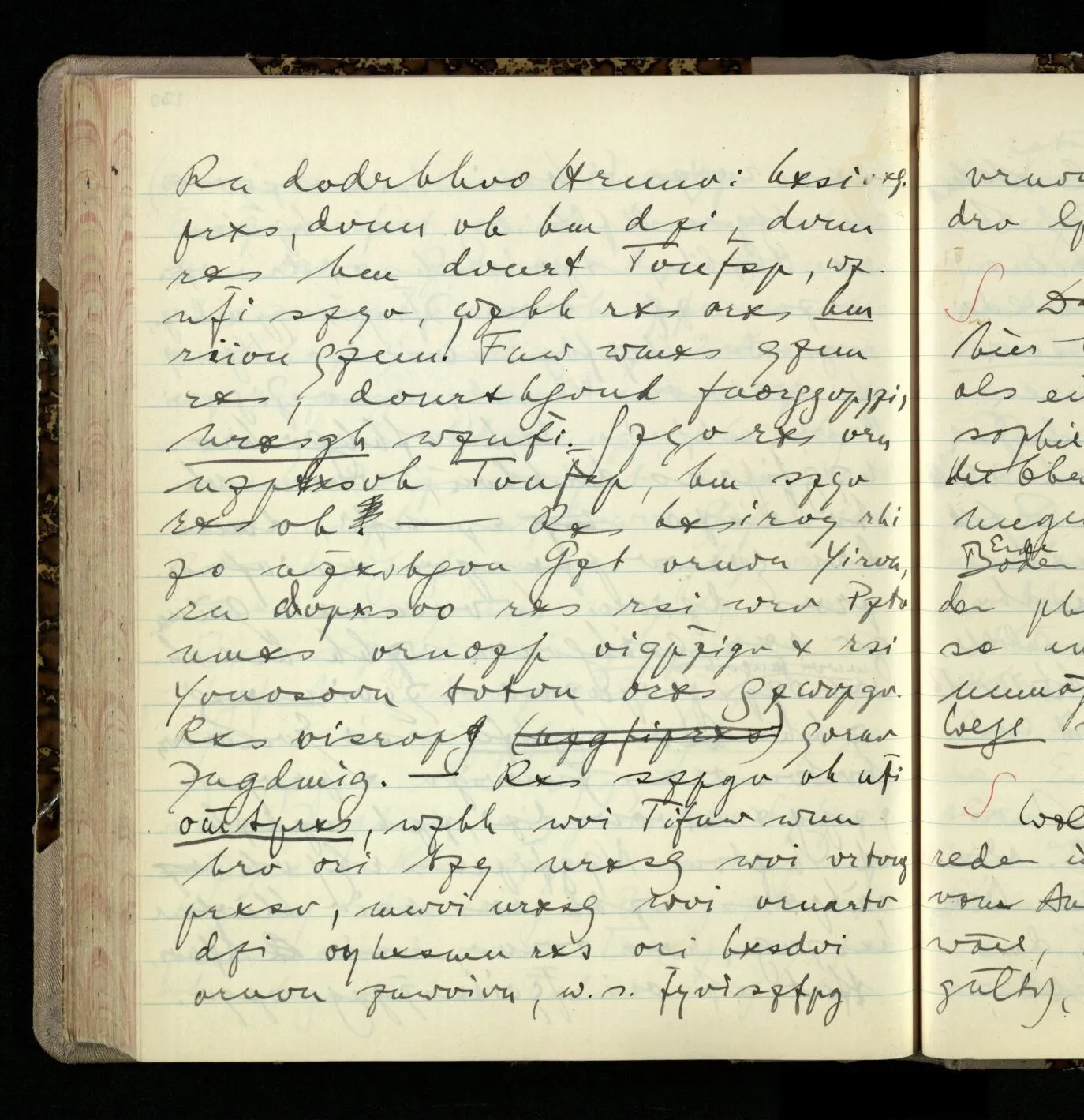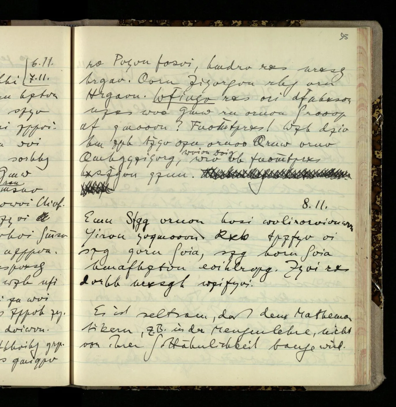 19.11.1937 Wie kann ich, was Regelmäßigkeit ist, beschreiben? z.B. ein regelmäßiger Wechsel der Farbe: blau, rot, blau, rot, blau, …. Ich kann natürlich statt dessen auch auf Muster zeigen. Aber nicht auch auf meine Vorstellungen? Wenn ich nun dem Andern sagte: “ich habe jetzt eine regelmäßige Folge von Farbenvorstellungen: das, das, das, das, das, u.s.w.” Da könnte er fragen: “Bist Du sicher, daß Du Dich nicht irrst? daß es wirklich eine solche regelmäßige Folge war? Hat Dich Dein Gedächtnis nicht getäuscht?” – So könnte ich antworten: “Mir scheint sie regelmäßig!” – Er: “Aber ist sie darum regelmäßig? denn wenn das ist, dann braucht ja gar nichts vorzuliegen wie z.B. diese regelmäßige Musterreihe hier. Dann haben ja wir beide, ich & Du, nur Dein Wort, ‘regelmäßig’ oder (die Tatsache) daß Du auf die & die Muster zeigst. Ich sage damit beginnt das Sprachspiel sowohl für mich als auch für Dich.