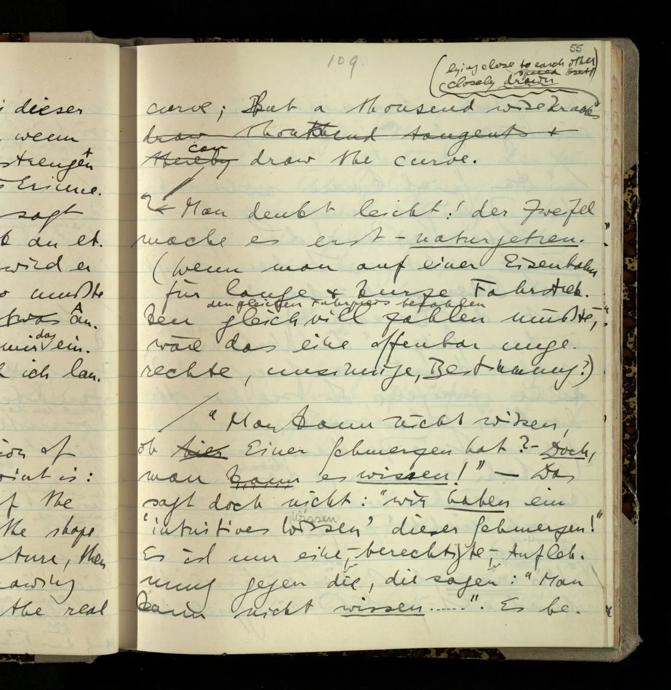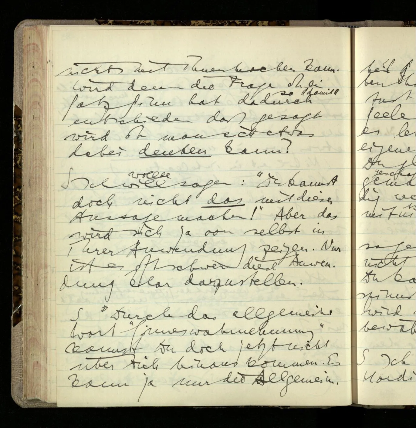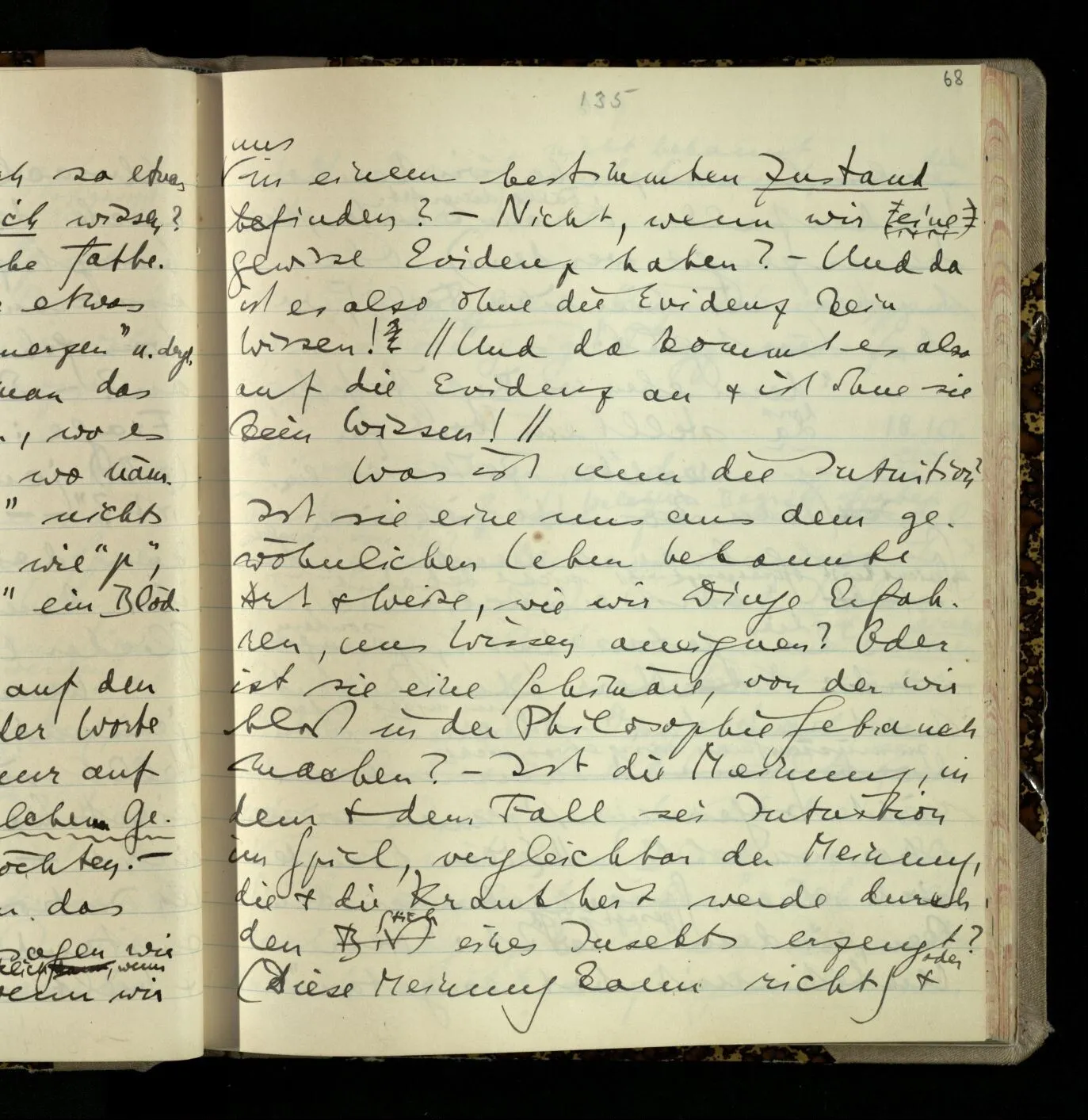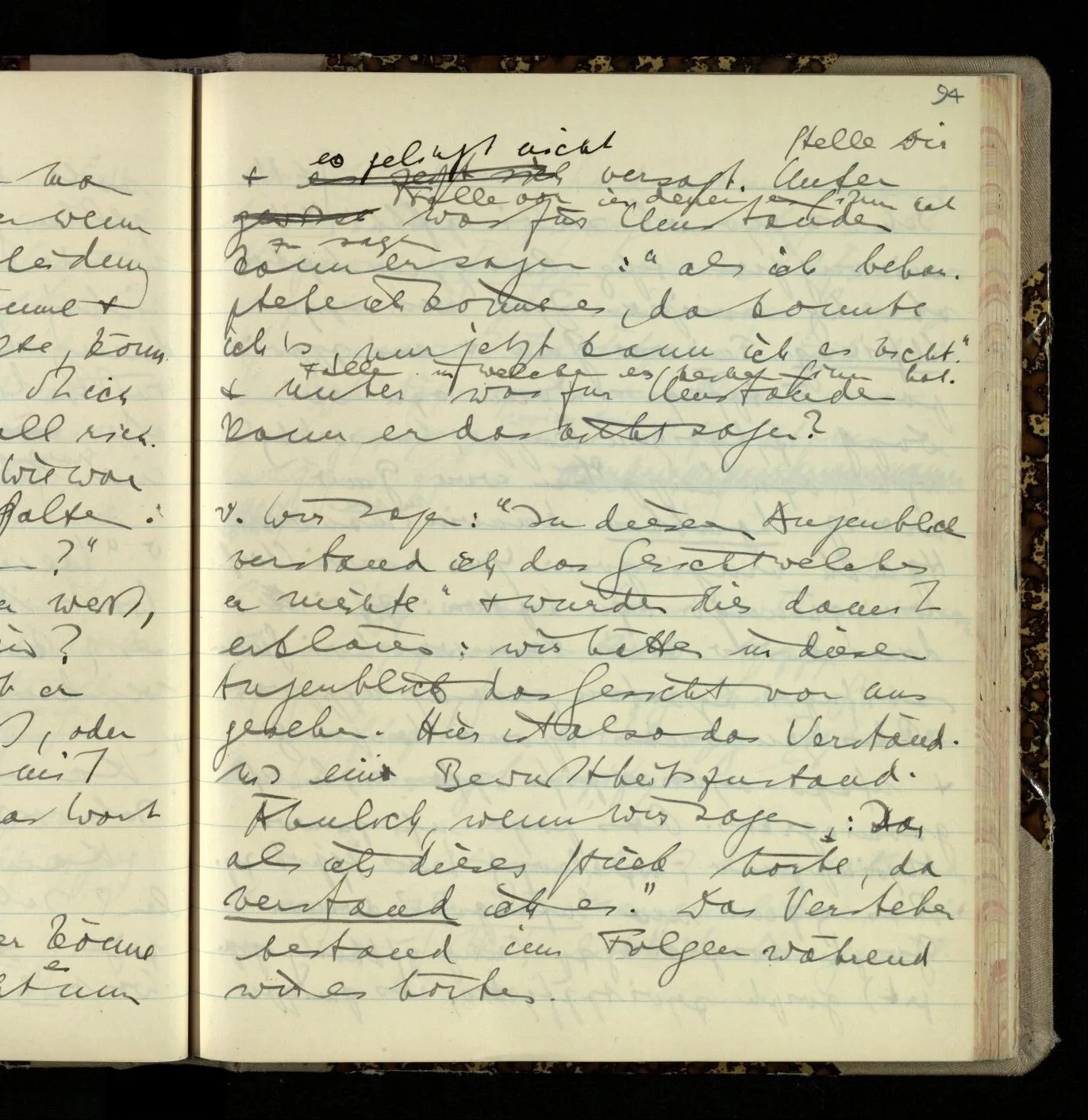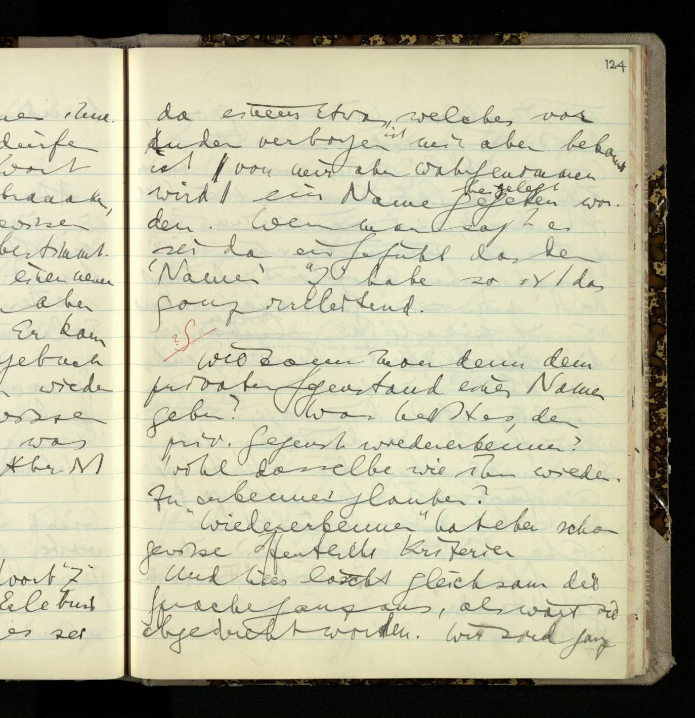 Ich könnte ja sagen: Wenn jener Mann der das Tagebuch führt beim Lesen desselben Erinnerungen hat, dann teilt ihm das Tagebuch etwas mit. – – Aber nun fragt es sich noch: Wann sagen wir, daß er ‘Erinnerungen hat’. Wenn darauf zur Antwort kommt: “Wenn er ein gewisses inneres Erlebnis hat”, so