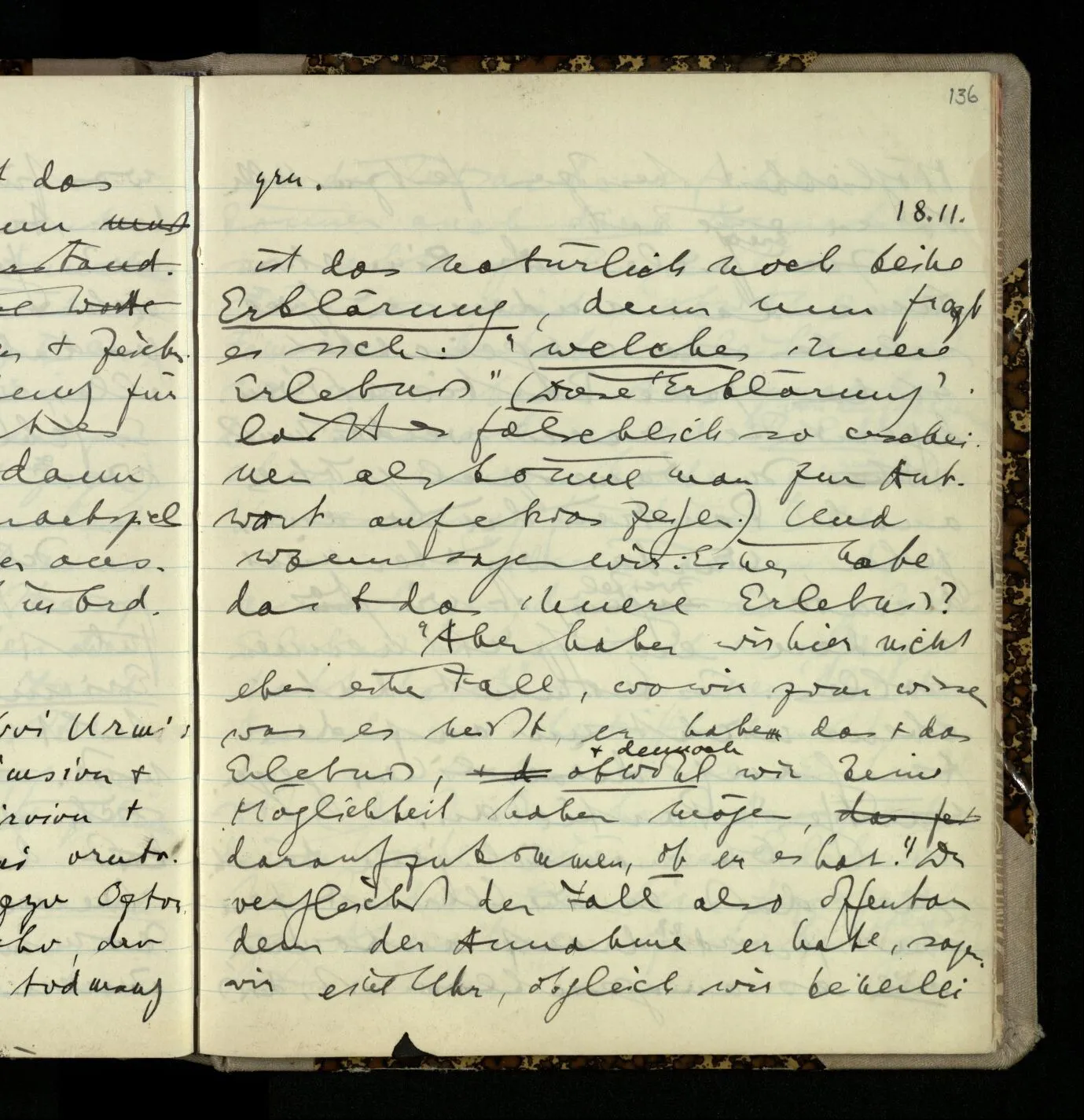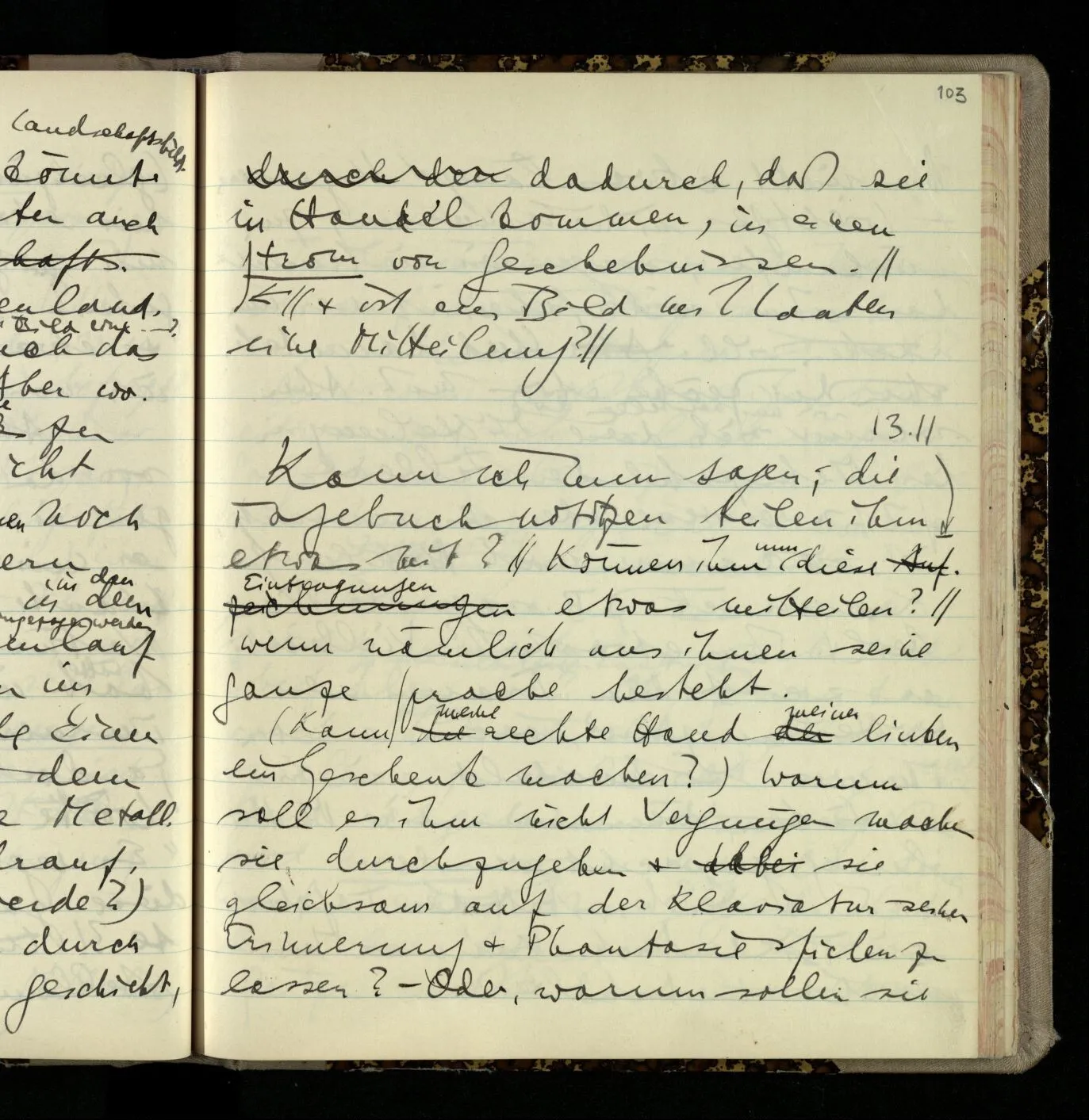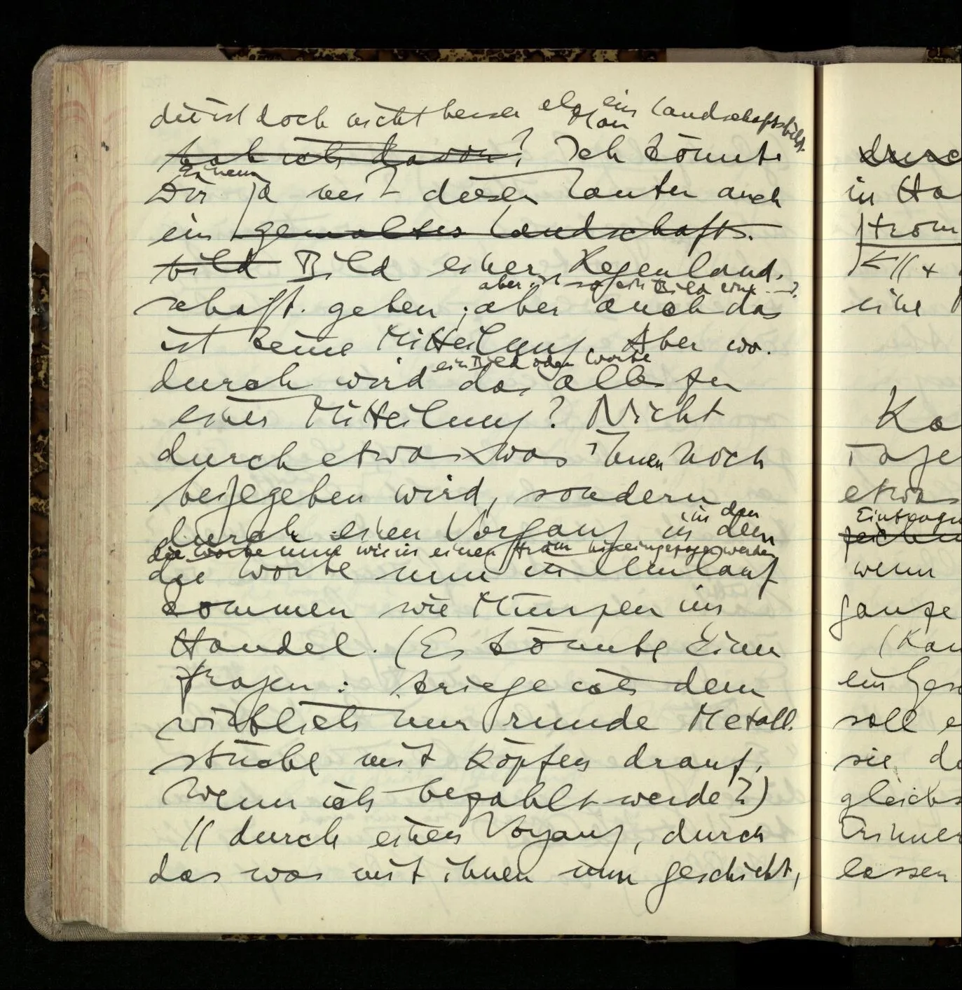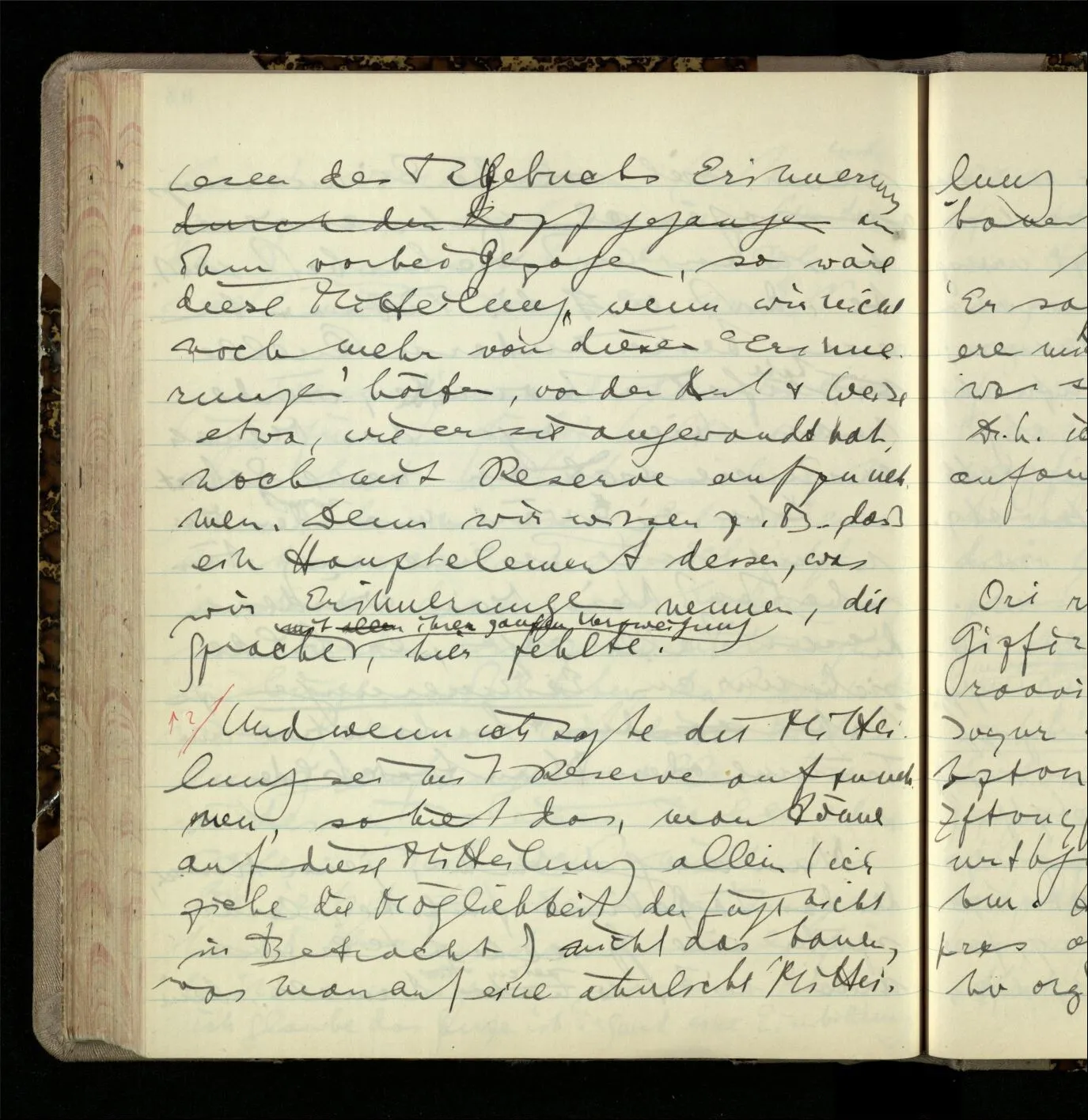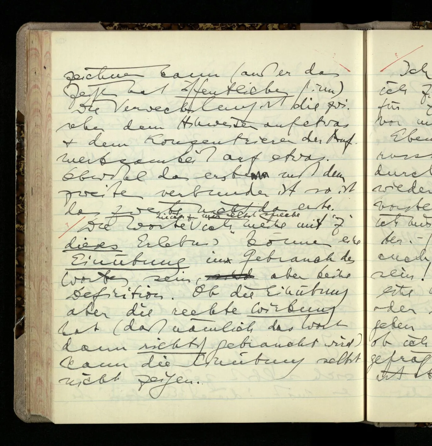 Ich könnte ja sagen: Wenn jener Mann der das Tagebuch führt beim Lesen desselben Erinnerungen hat, dann teilt ihm das Tagebuch etwas mit. – – Aber nun fragt es sich noch: Wann sagen wir, daß er ‘Erinnerungen hat’. Wenn darauf zur Antwort kommt: “Wenn er ein gewisses inneres Erlebnis hat”, so