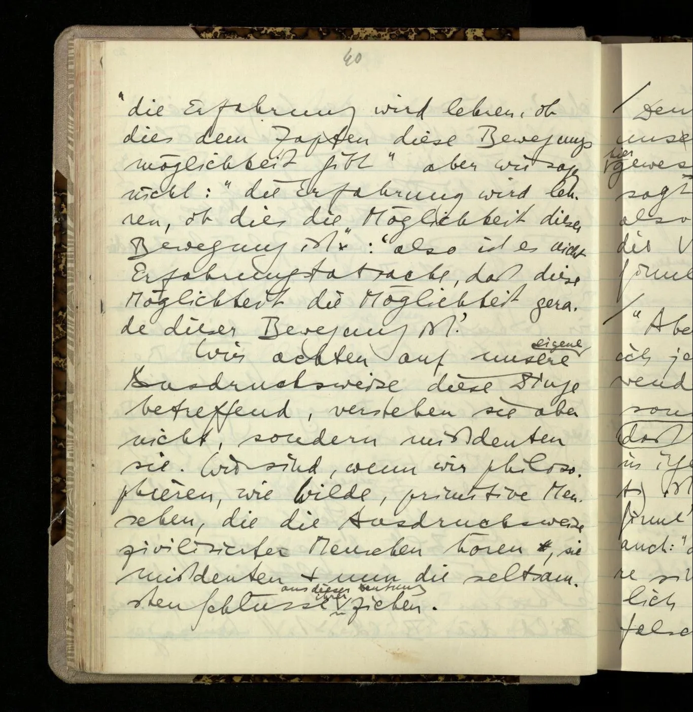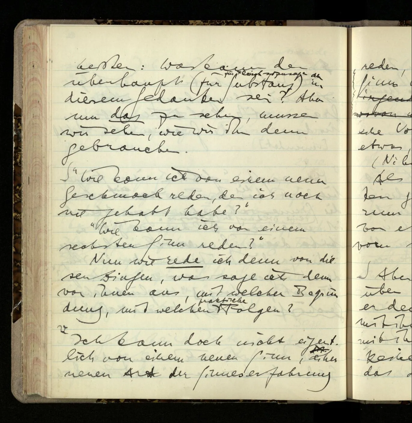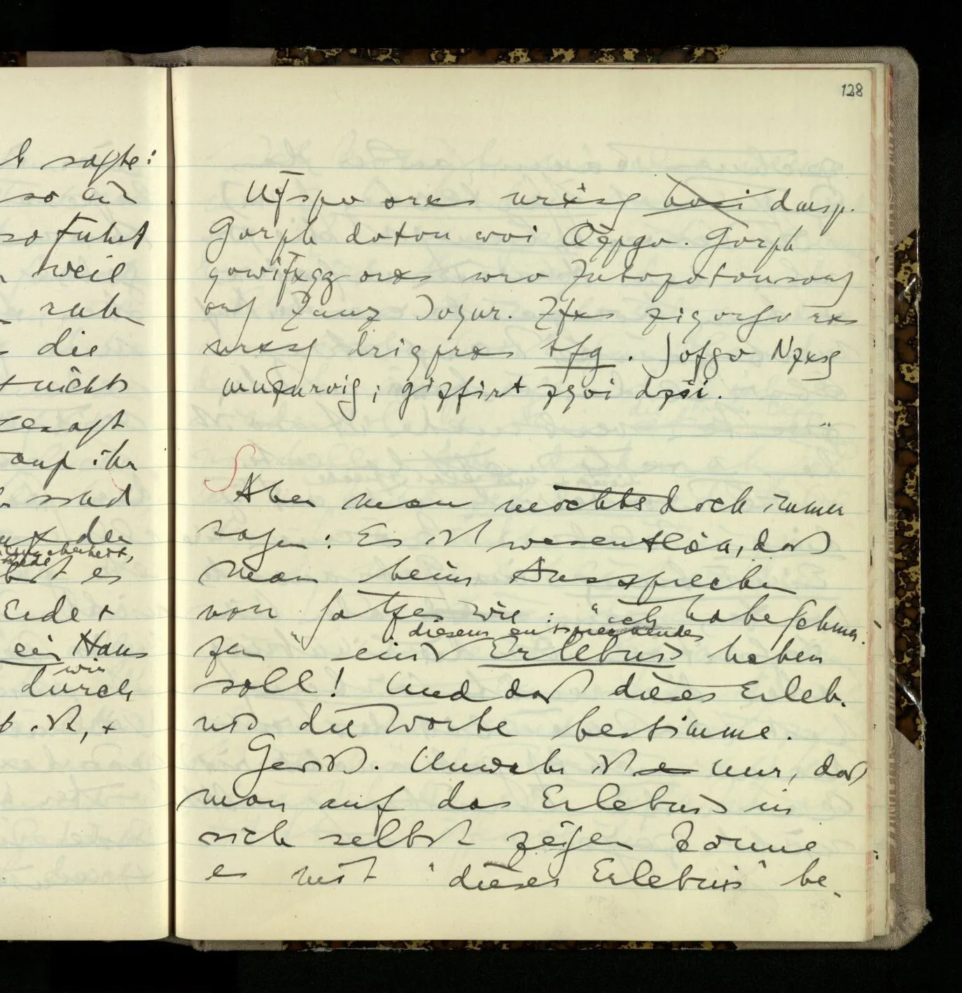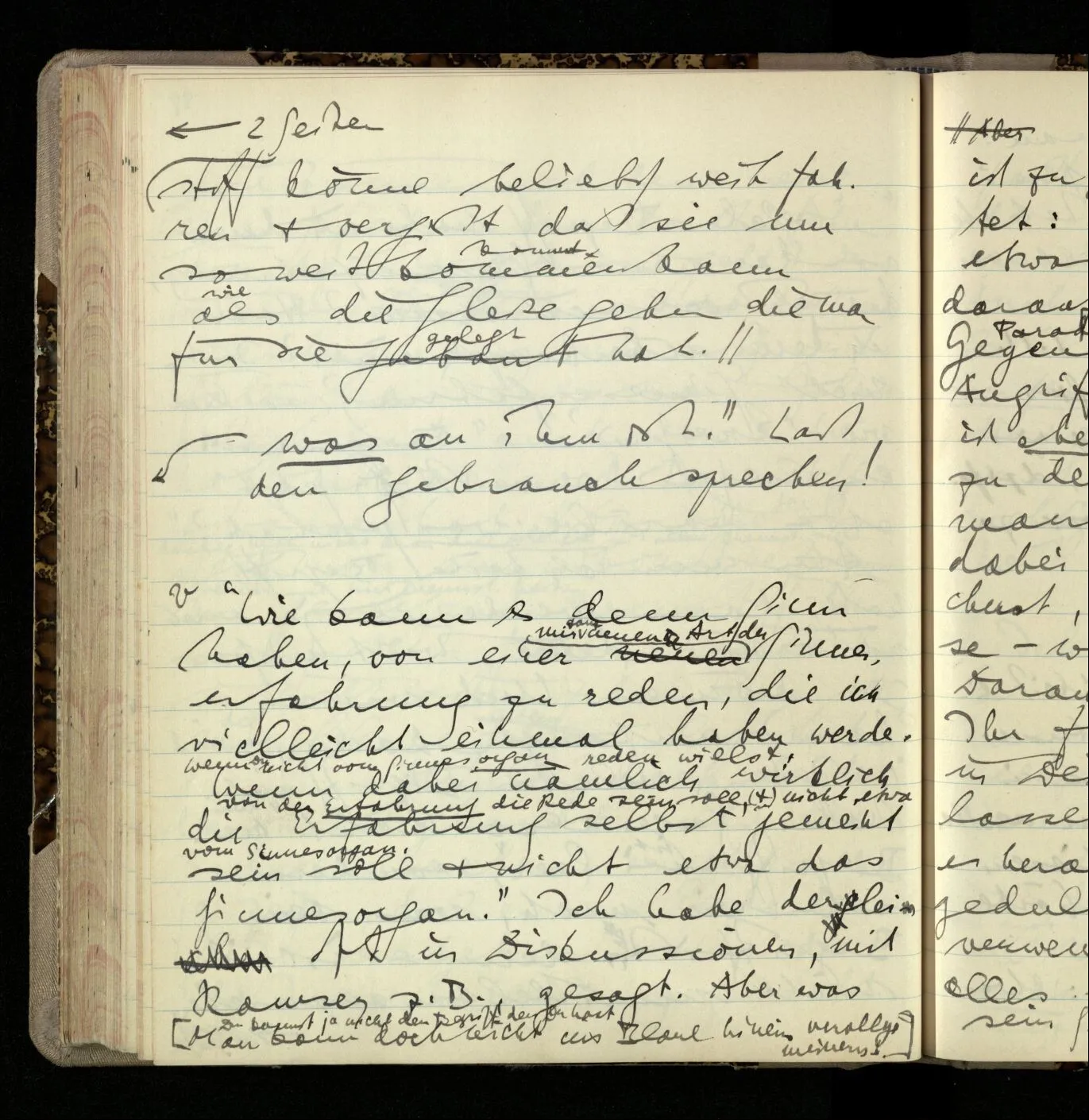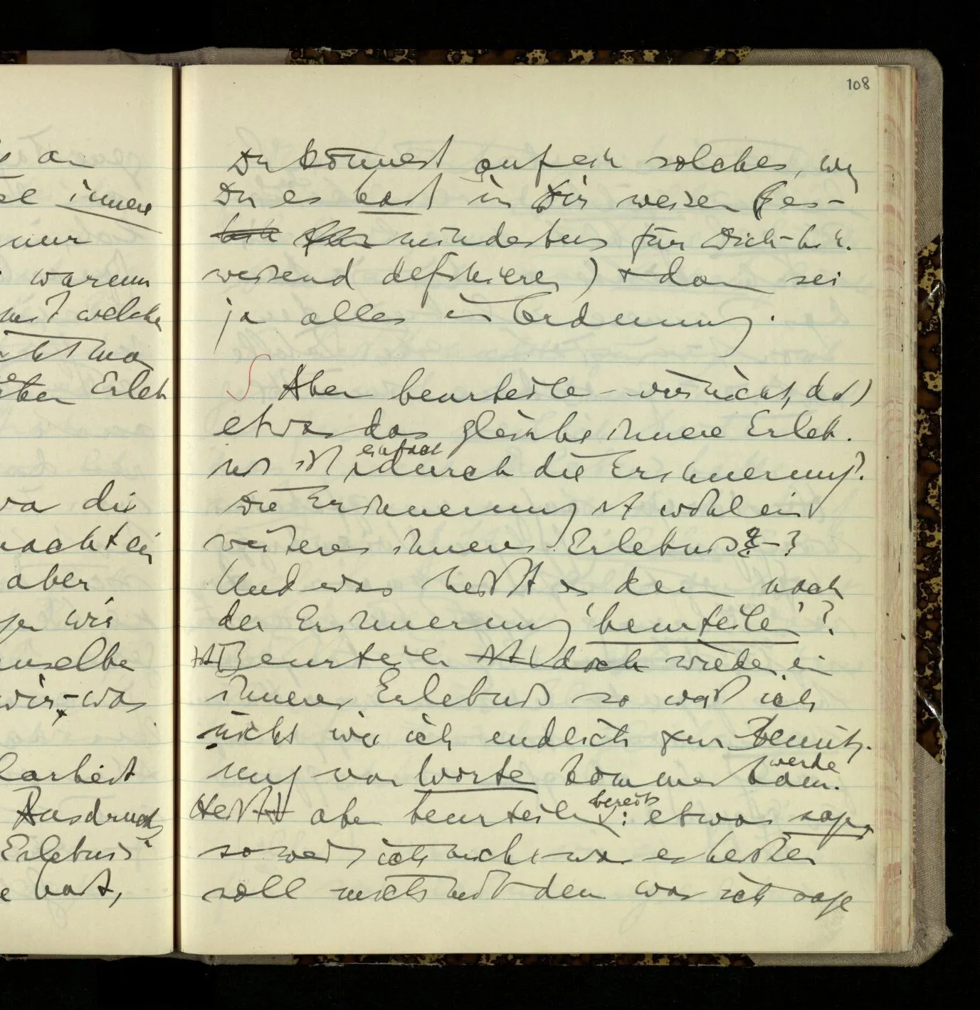 Ich könnte ja sagen: Wenn jener Mann der das Tagebuch führt beim Lesen desselben Erinnerungen hat, dann teilt ihm das Tagebuch etwas mit. – – Aber nun fragt es sich noch: Wann sagen wir, daß er ‘Erinnerungen hat’. Wenn darauf zur Antwort kommt: “Wenn er ein gewisses inneres Erlebnis hat”, so