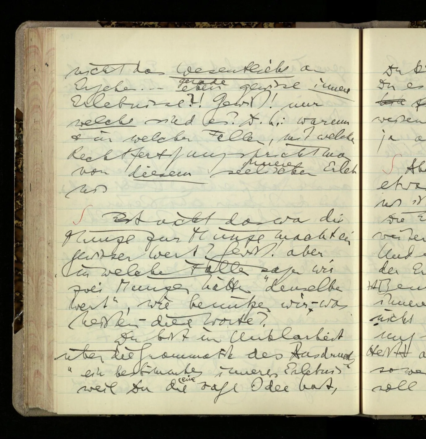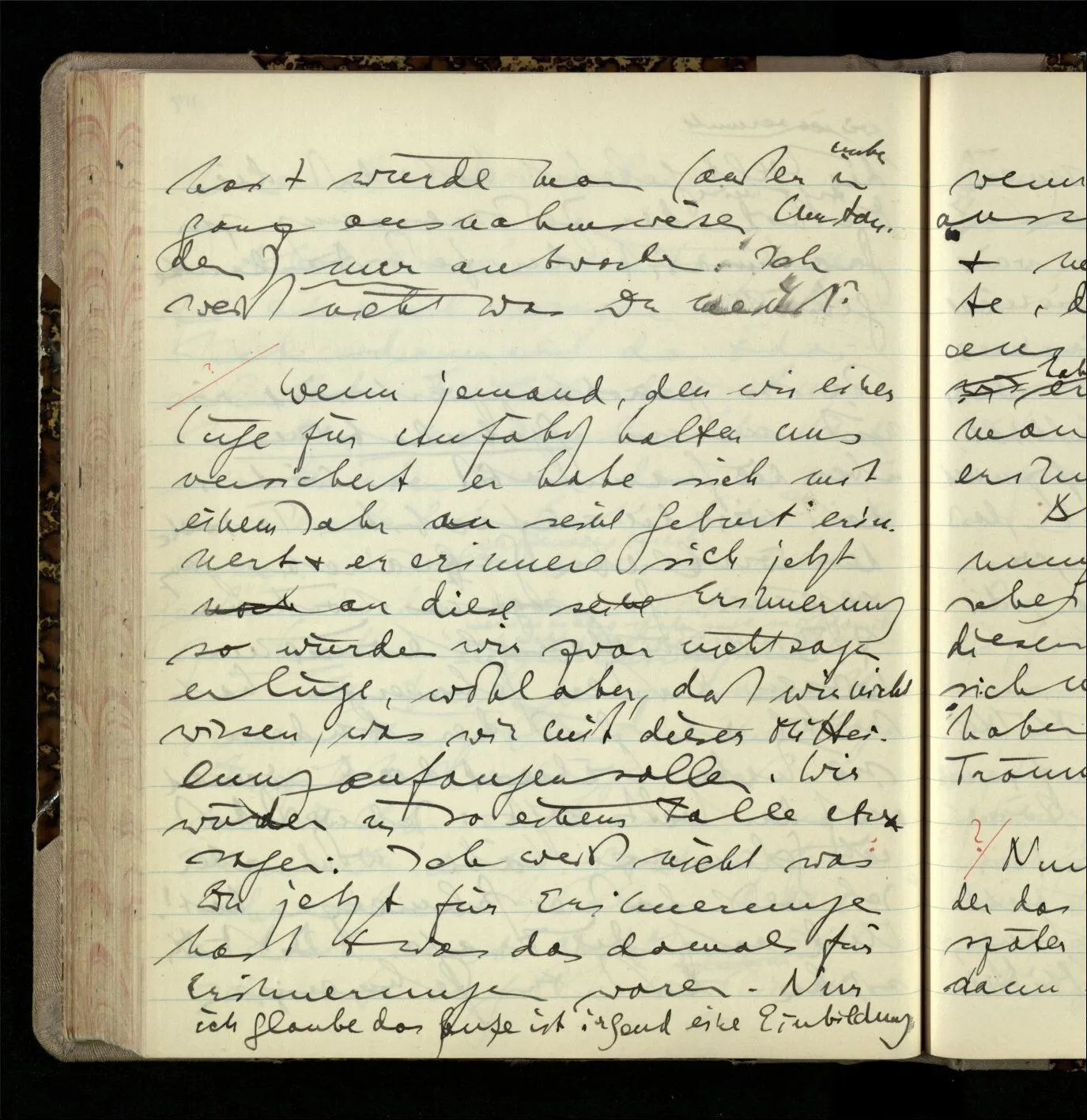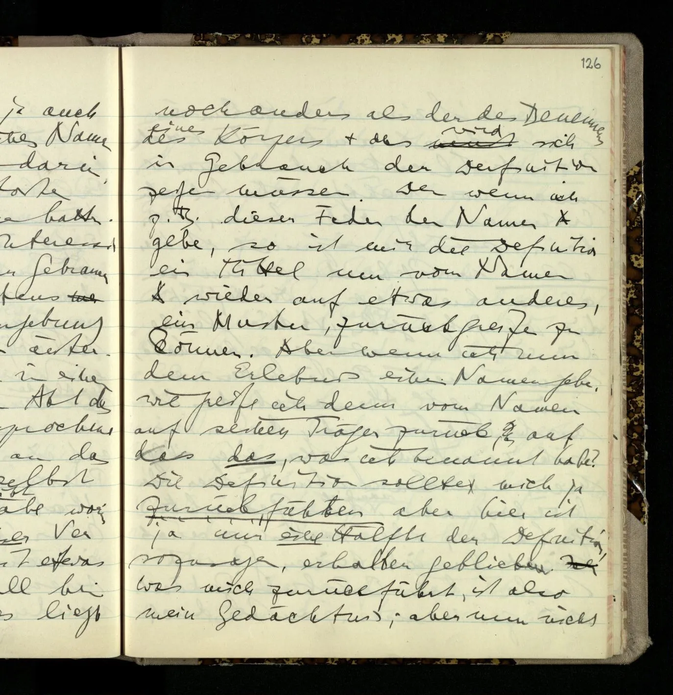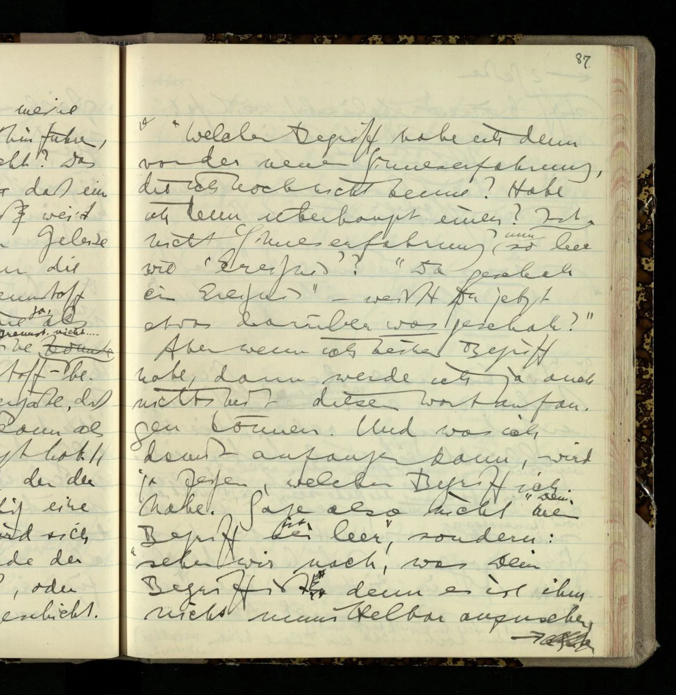 Ich könnte ja sagen: Wenn jener Mann der das Tagebuch führt beim Lesen desselben Erinnerungen hat, dann teilt ihm das Tagebuch etwas mit. – – Aber nun fragt es sich noch: Wann sagen wir, daß er ‘Erinnerungen hat’. Wenn darauf zur Antwort kommt: “Wenn er ein gewisses inneres Erlebnis hat”, so