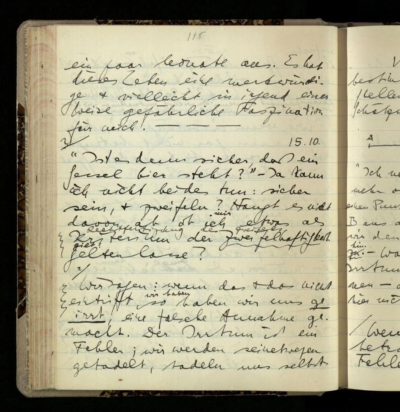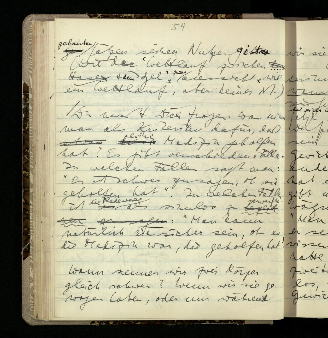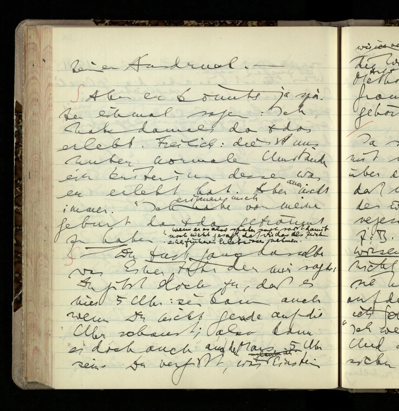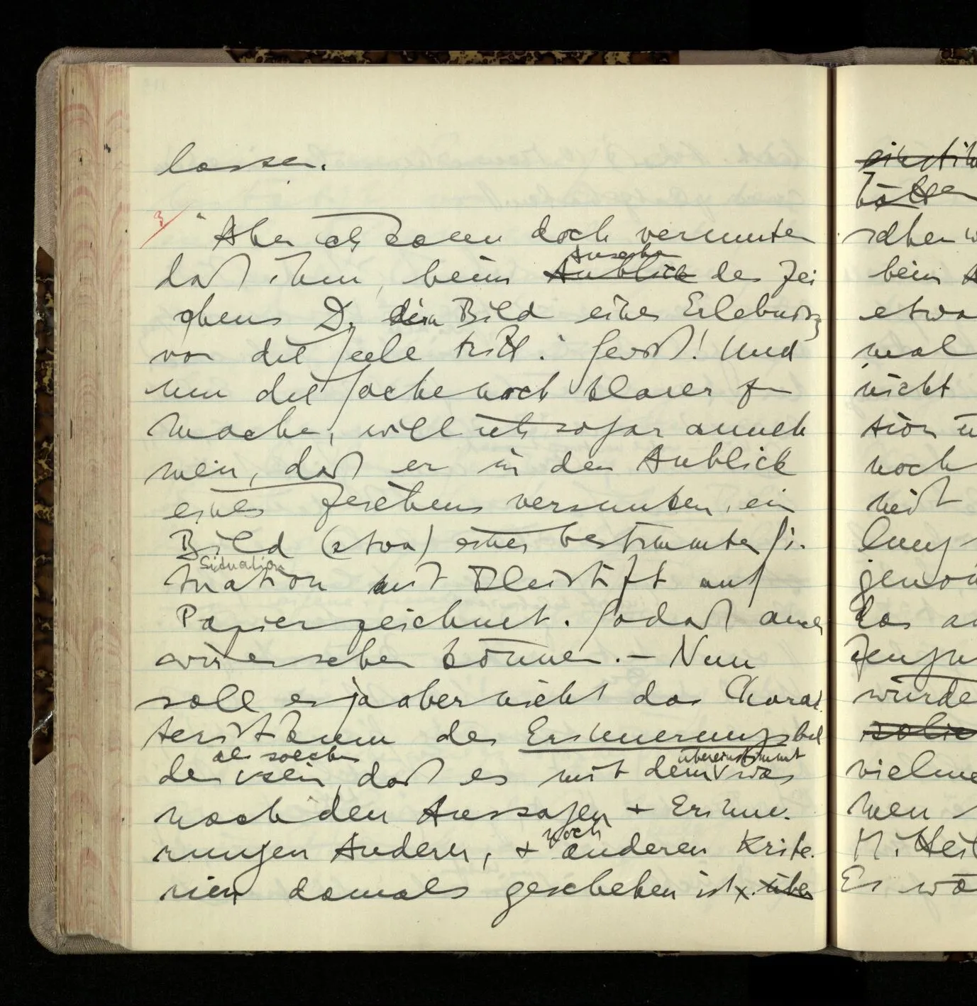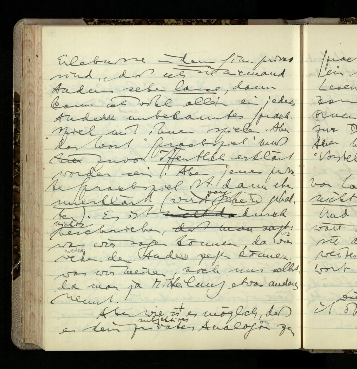 Ich könnte ja sagen: Wenn jener Mann der das Tagebuch führt beim Lesen desselben Erinnerungen hat, dann teilt ihm das Tagebuch etwas mit. – – Aber nun fragt es sich noch: Wann sagen wir, daß er ‘Erinnerungen hat’. Wenn darauf zur Antwort kommt: “Wenn er ein gewisses inneres Erlebnis hat”, so