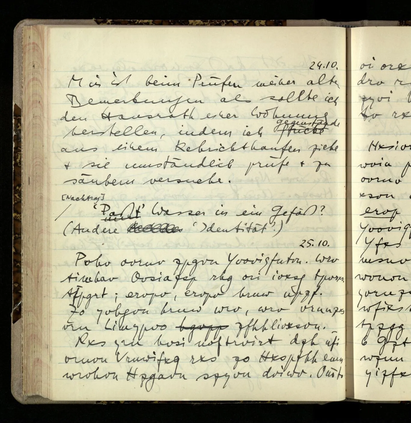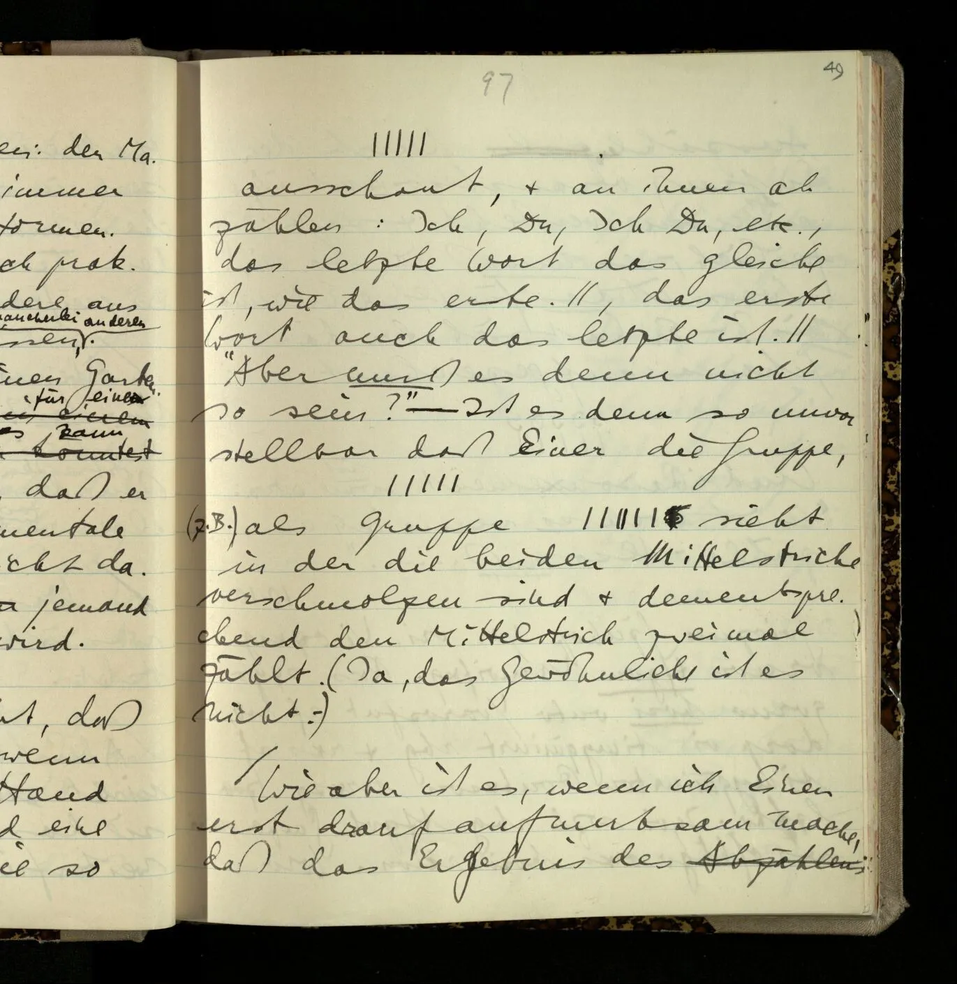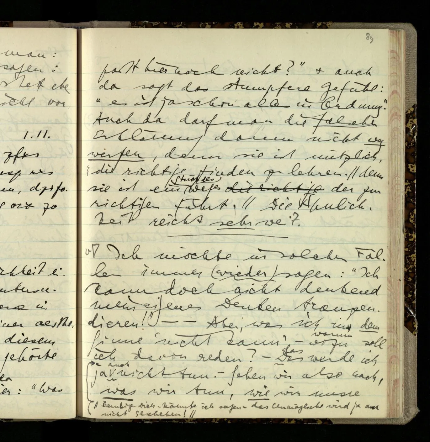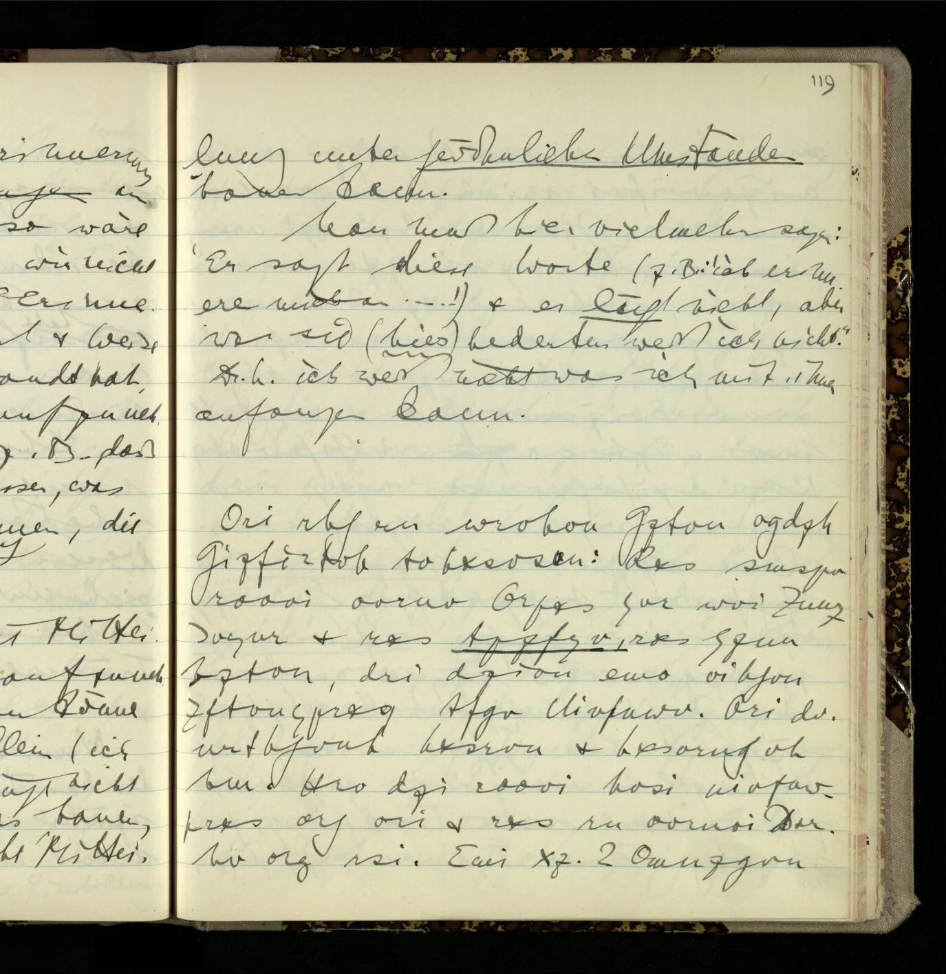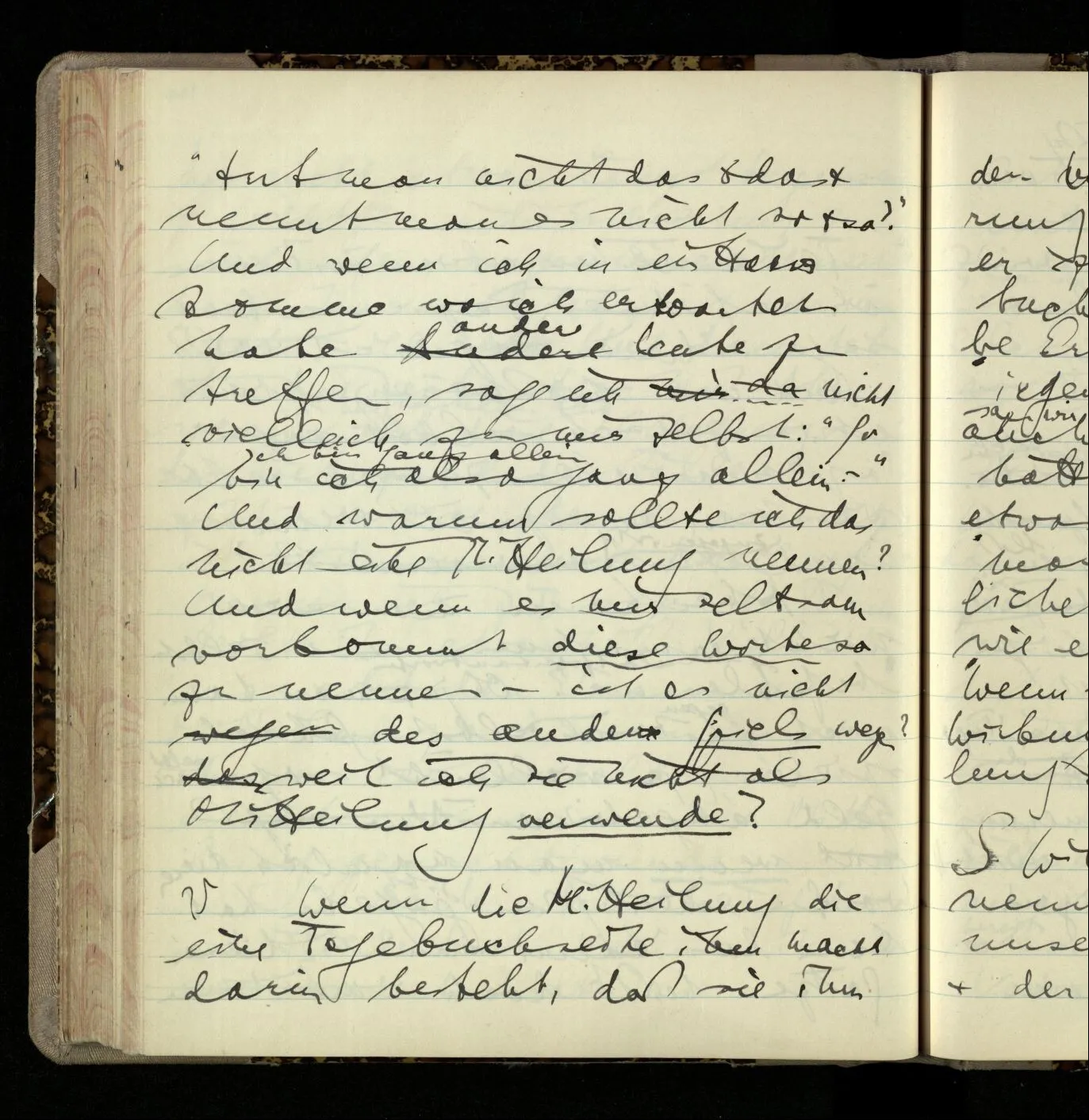 Ich könnte ja sagen: Wenn jener Mann der das Tagebuch führt beim Lesen desselben Erinnerungen hat, dann teilt ihm das Tagebuch etwas mit. – – Aber nun fragt es sich noch: Wann sagen wir, daß er ‘Erinnerungen hat’. Wenn darauf zur Antwort kommt: “Wenn er ein gewisses inneres Erlebnis hat”, so