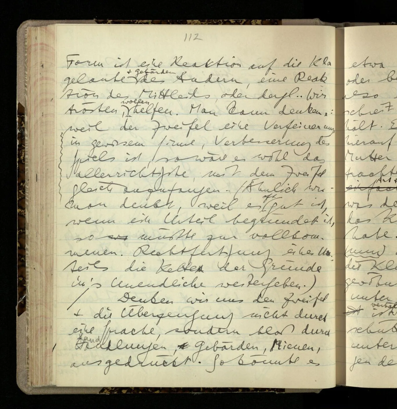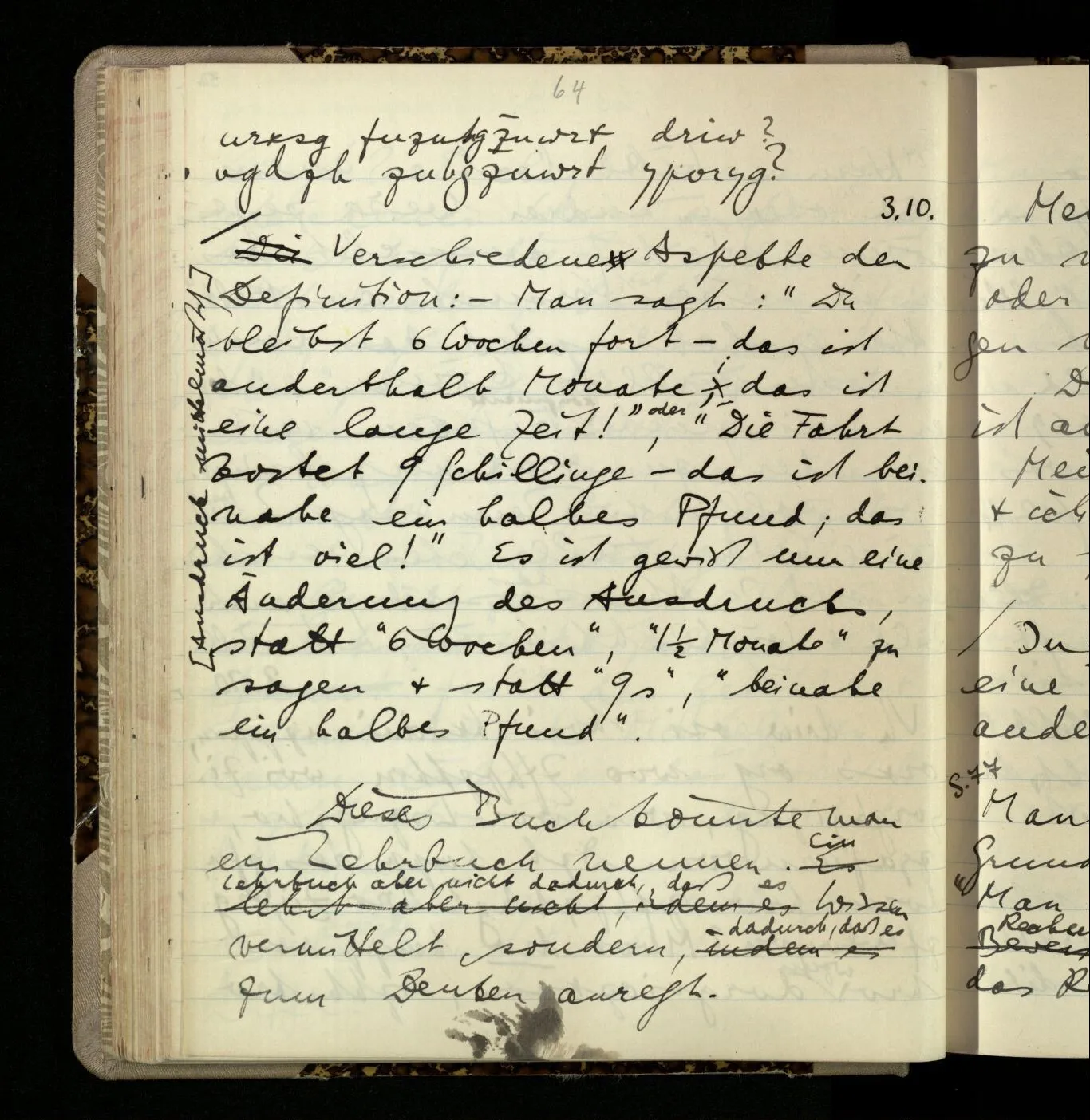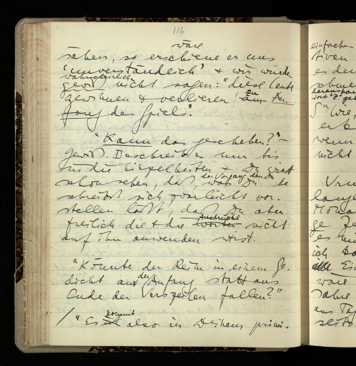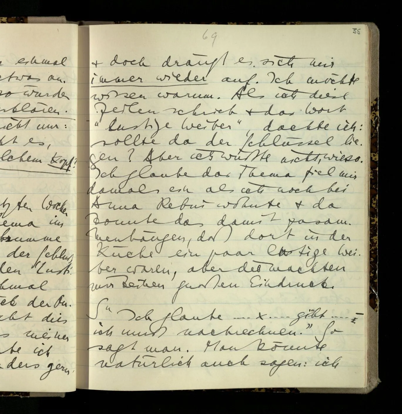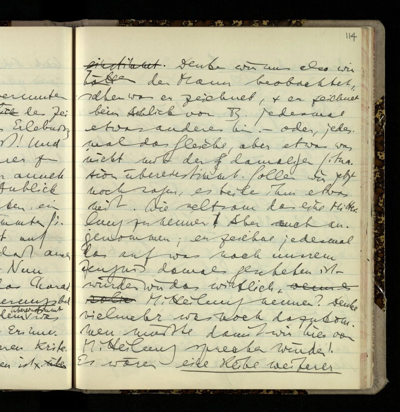 Ich könnte ja sagen: Wenn jener Mann der das Tagebuch führt beim Lesen desselben Erinnerungen hat, dann teilt ihm das Tagebuch etwas mit. – – Aber nun fragt es sich noch: Wann sagen wir, daß er ‘Erinnerungen hat’. Wenn darauf zur Antwort kommt: “Wenn er ein gewisses inneres Erlebnis hat”, so