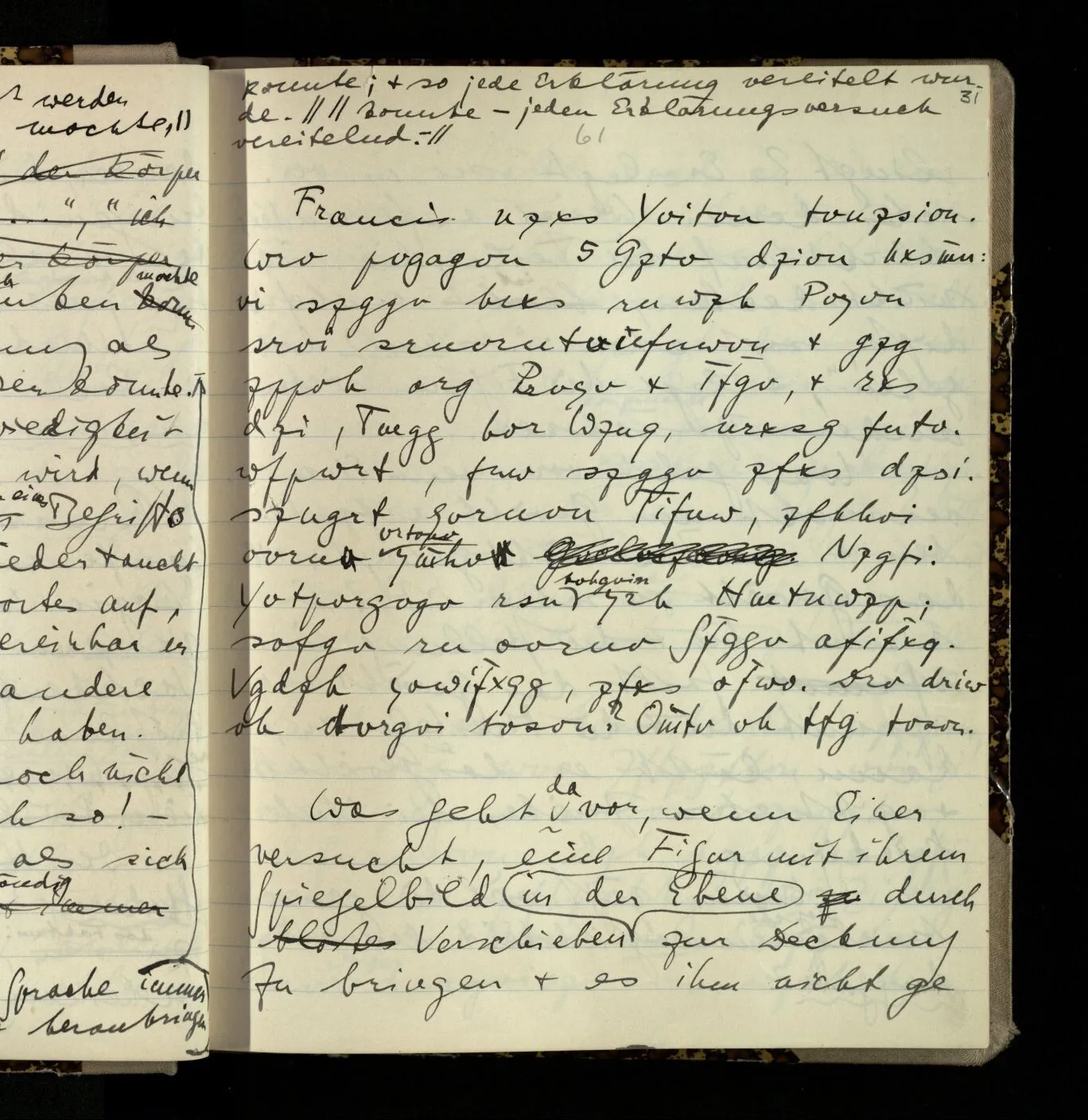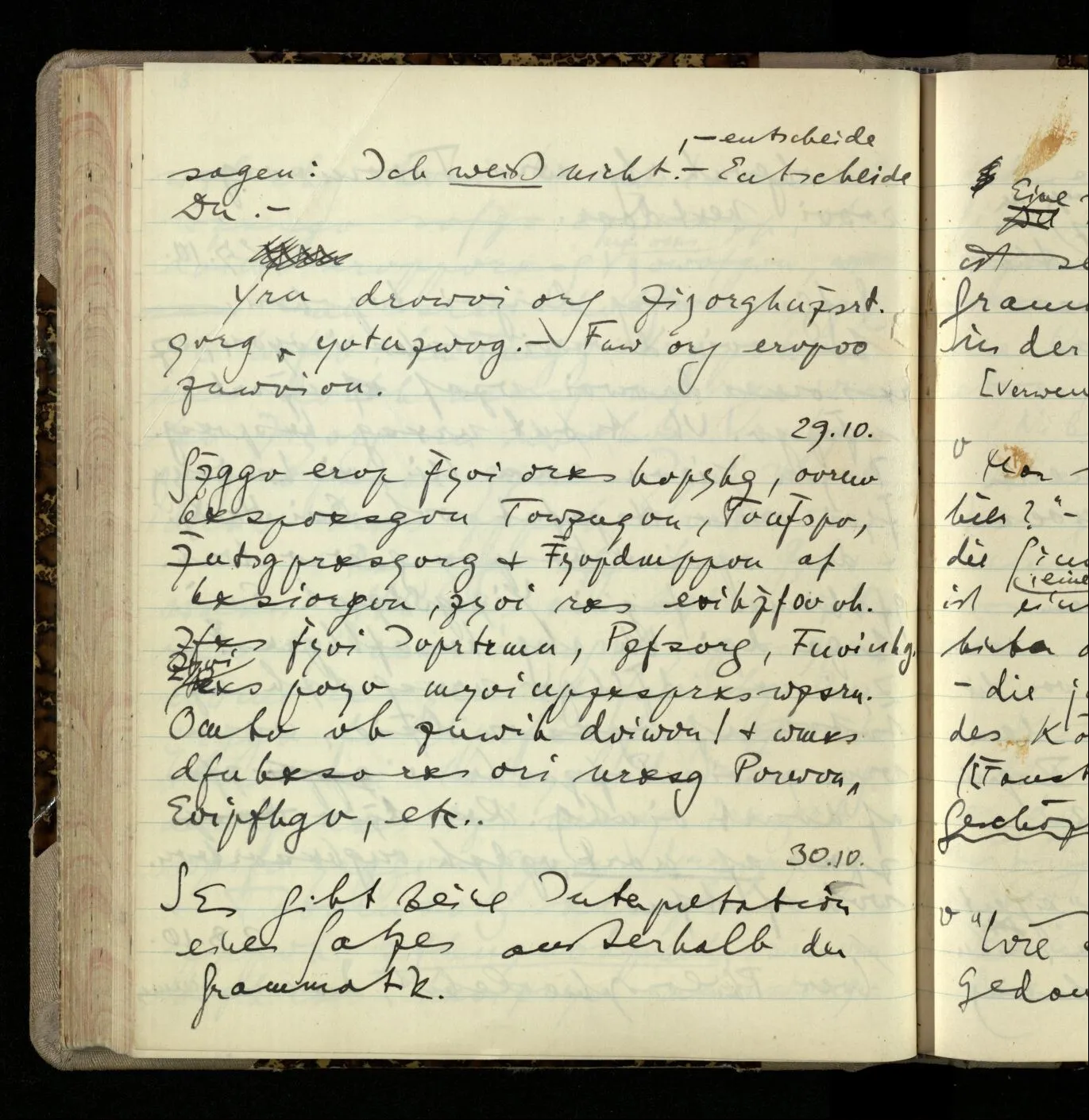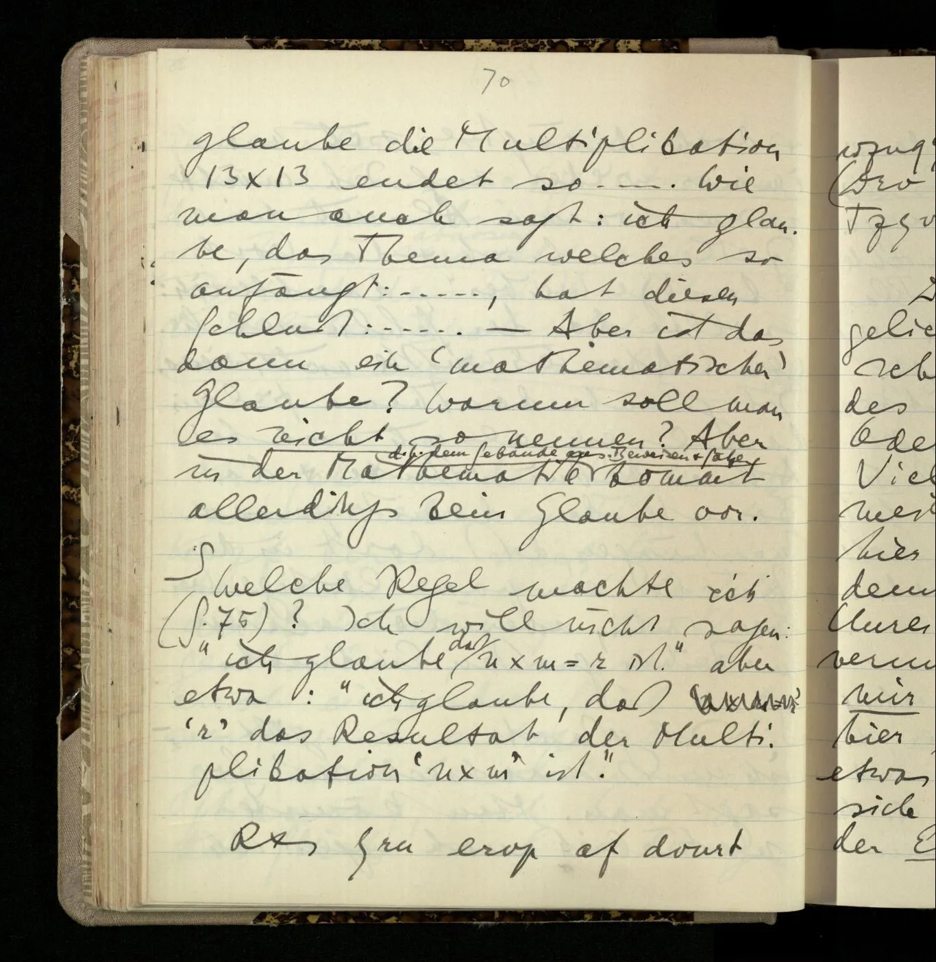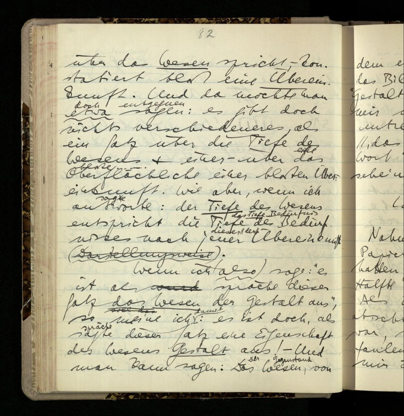 17.11.1937 Wir haben, in Betreff der Grammatik eines Wortes ein Vorurteil. Dieses, gestützt auf mancherlei Erscheinungen der Oberflächengrammatik, ist so mächtig, daß es der raffiniertesten Methoden bedarf davon los zu kommen. (In der Mathematik speziell wird die Oberflächengrammatik eigens daraufhin eingerichtet Mißverständnisse zu erzeugen.)