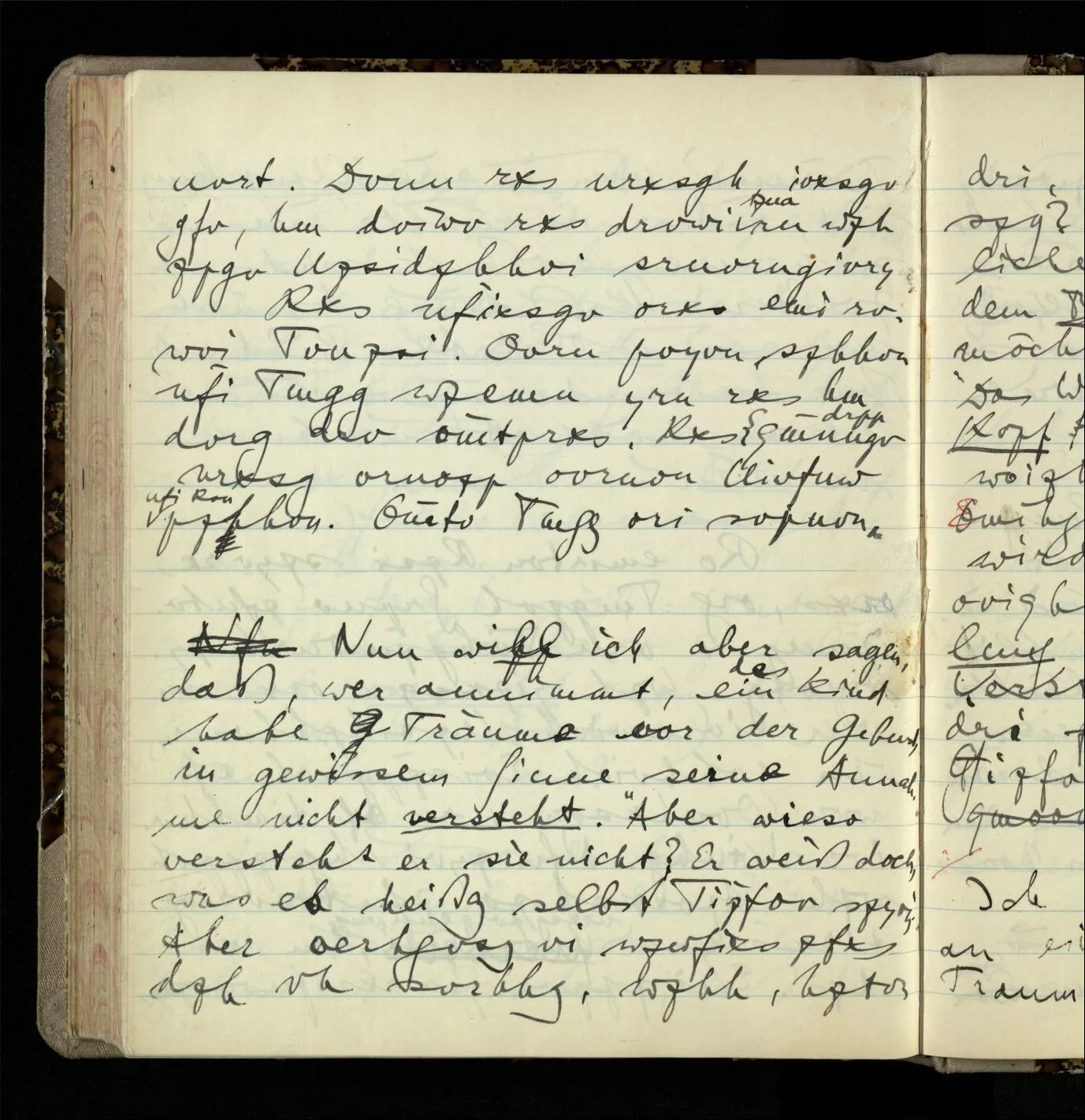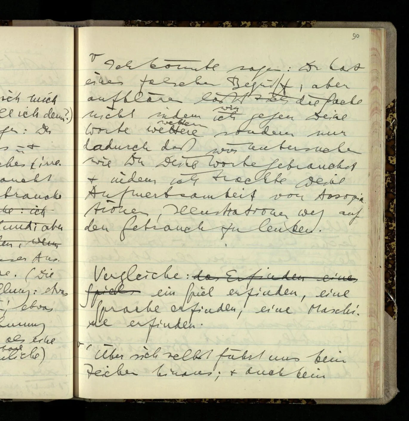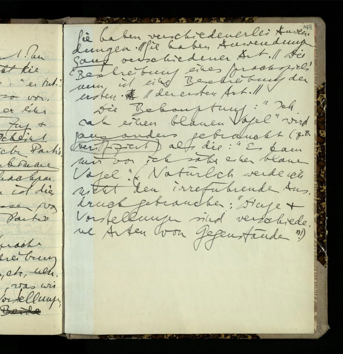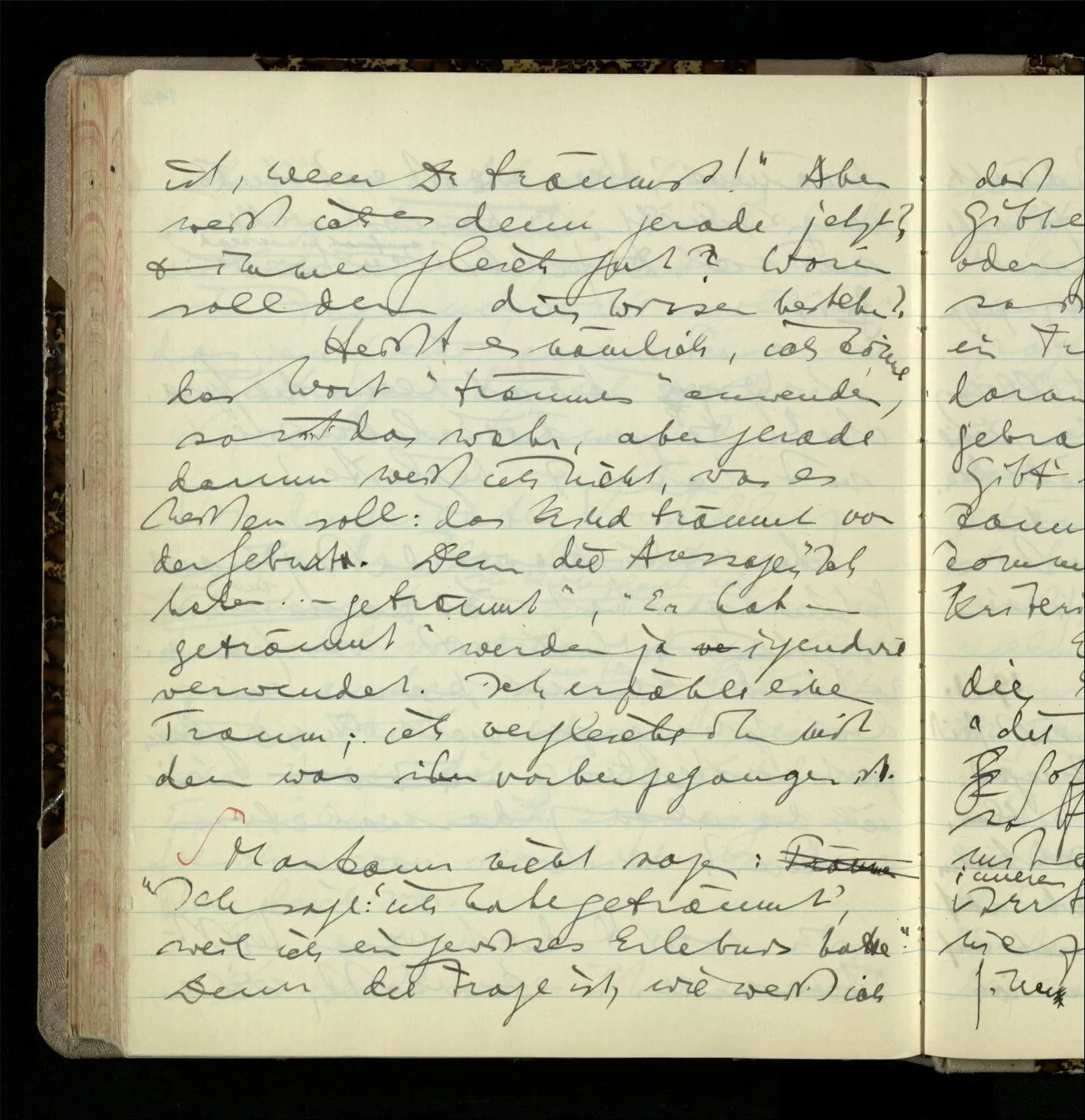 Du weißt doch was es heißt “träumen”. Du weißt, wie es ist, wenn Du träumst! Aber weiß ich es denn gerade jetzt? & immer gleich gut? Worin soll denn dies Wissen bestehen? Heißt es nämlich, ich könne das Wort “träumen” anwenden, so ist das wahr, aber gerade darum weiß ich nicht, was es heißen soll: das Kind träumt vor der Geburt. Denn die Aussagen “Ich habe … – geträumt”, “Er hat – geträumt” werden ja irgendwie verwendet. Ich erzähle einen Traum; ich vergleiche ihn mit dem was ihm vorhergegangen ist.