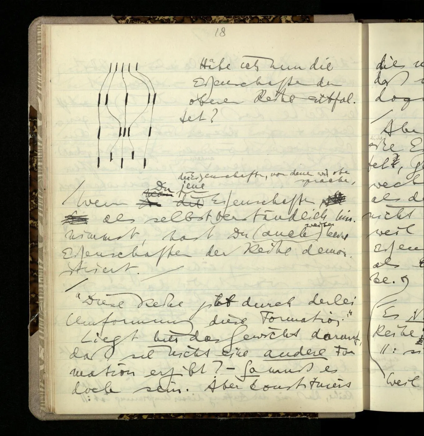 “Diese Reihe gibt durch derlei Umformung diese Formation.” Liegt hier das Gewicht darauf, daß sie nicht eine andere Formation ergibt? – So muß es doch sein. Aber konstituiert dies nicht eben die Eigenschaft, daß nichts weg & nichts dazukommt?