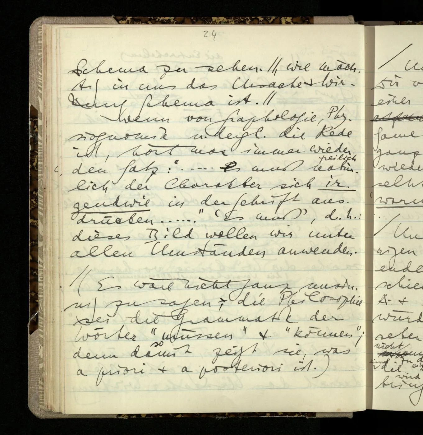 (Es wäre nicht ganz unsinnig zu sagen, die Philosophie sei die Grammatik der Wörter “müssen” & “können”; denn damit zeigt sie, was a priori & a posteriori ist.)