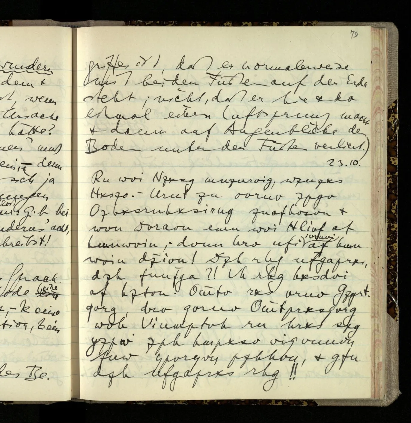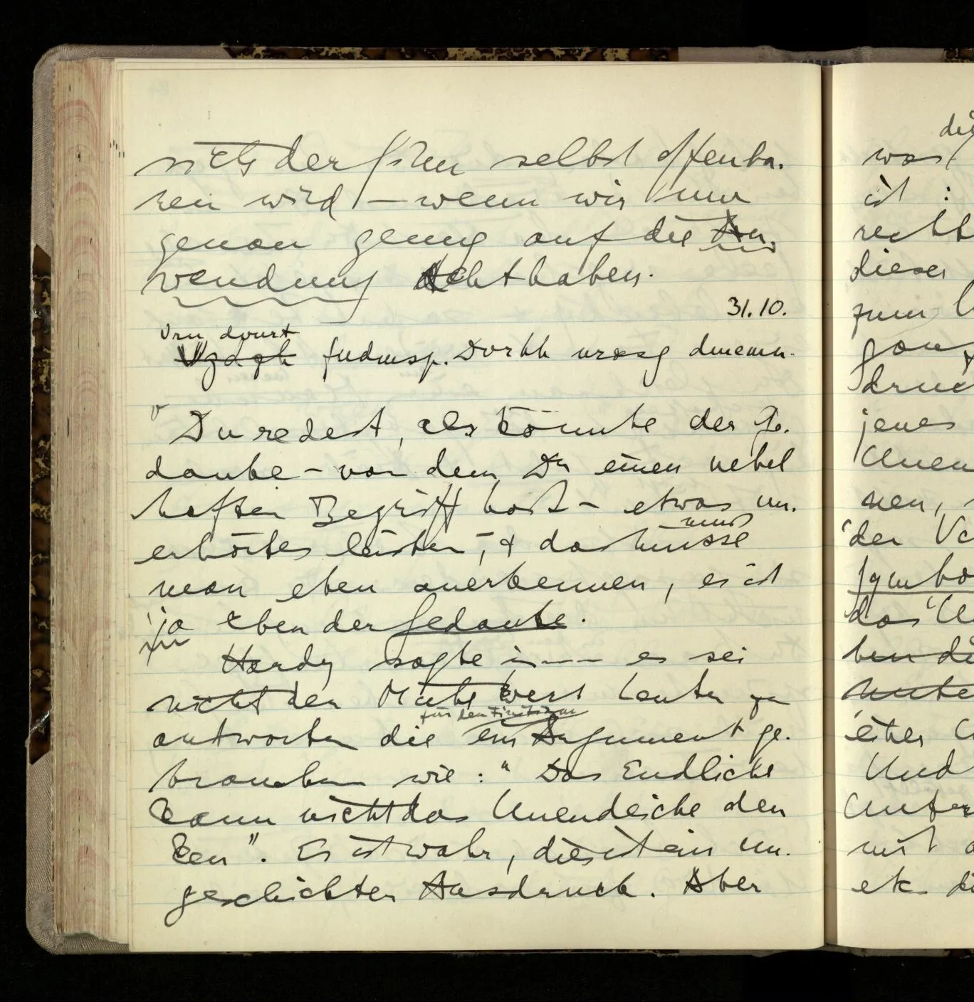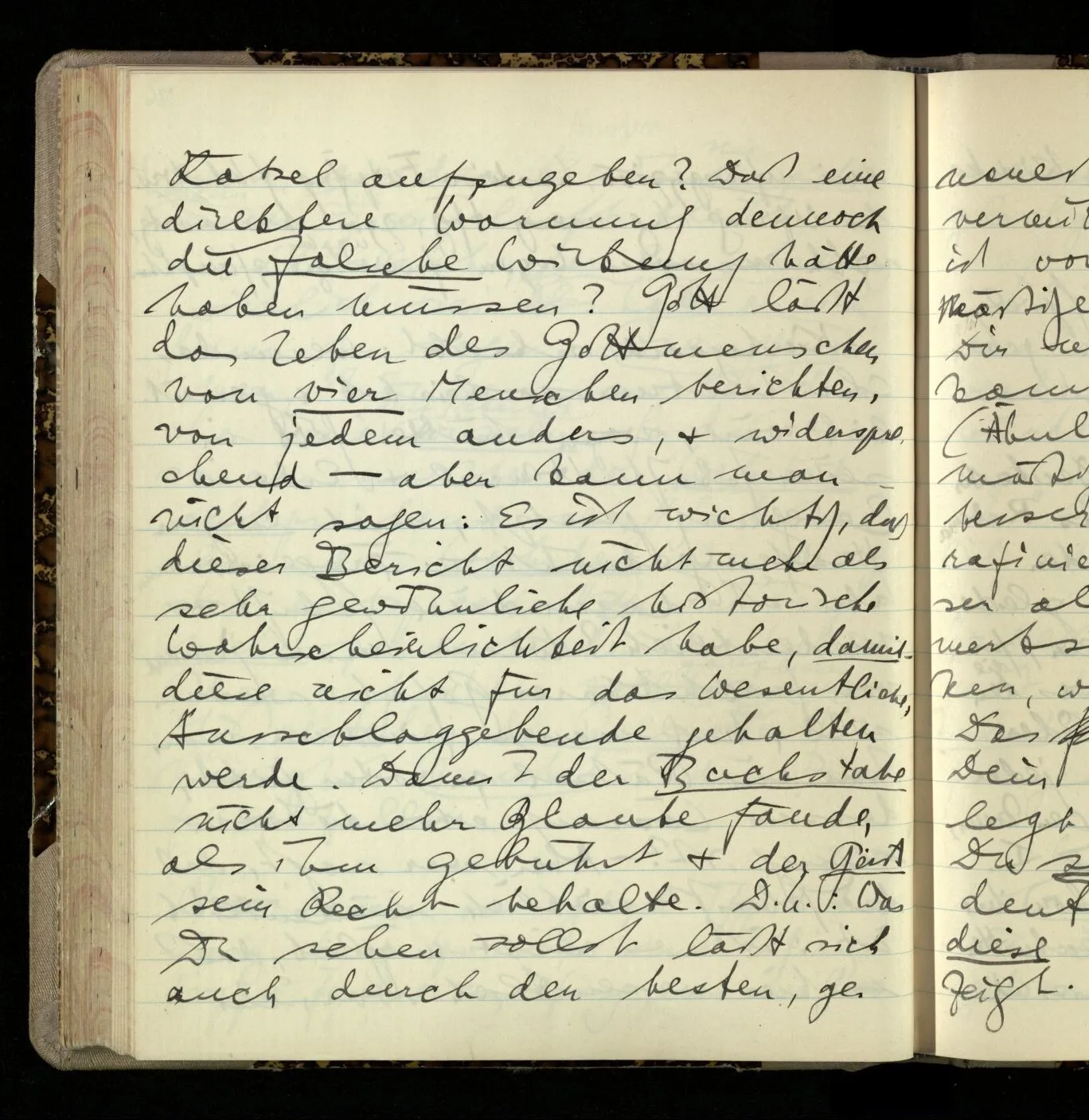 Im vorigen Jahr habe ich mich, mit Gottes Hilfe aufgerafft & ein Geständnis abgelegt. Das brachte mich in ein reineres Fahrwasser in ein besseres Verhältnis zu den Menschen & zu größerem Ernst. Nun aber ist alles das gleichsam aufgezehrt & ich nicht weit von dort, wo ich war. Vor allem bin ich unendlich feig. Wenn ich nichts Rechtes tue, so werde ich wieder ganz in das alte Fahrwasser hineintreiben. Ich fürchte mich vor jeder Gefahr. Mein Leben hassen für Gott davon bin ich so weit wie möglich. Ich könnte nicht einmal meinen Freund für Ihn lassen. Möge Gott mir helfen.