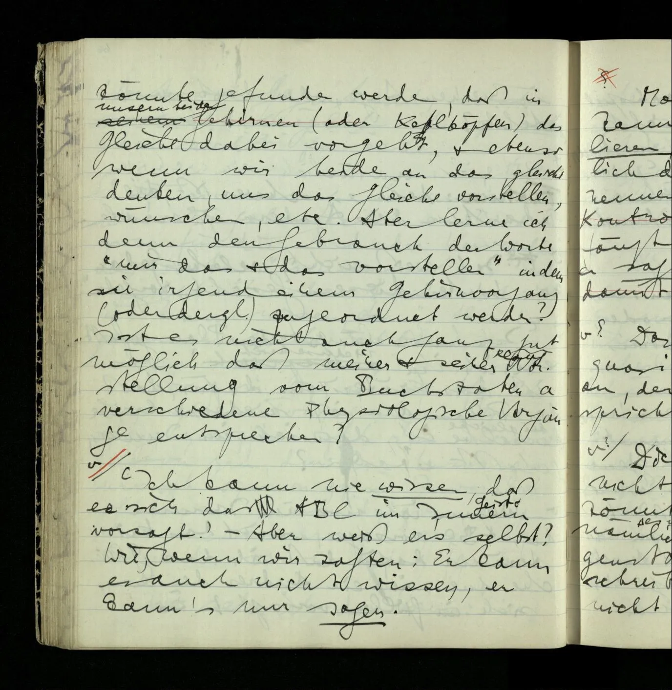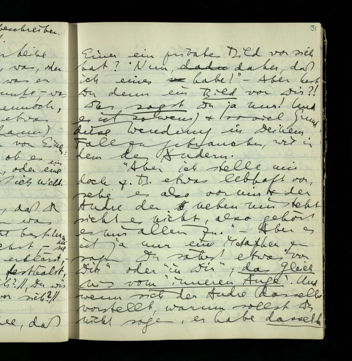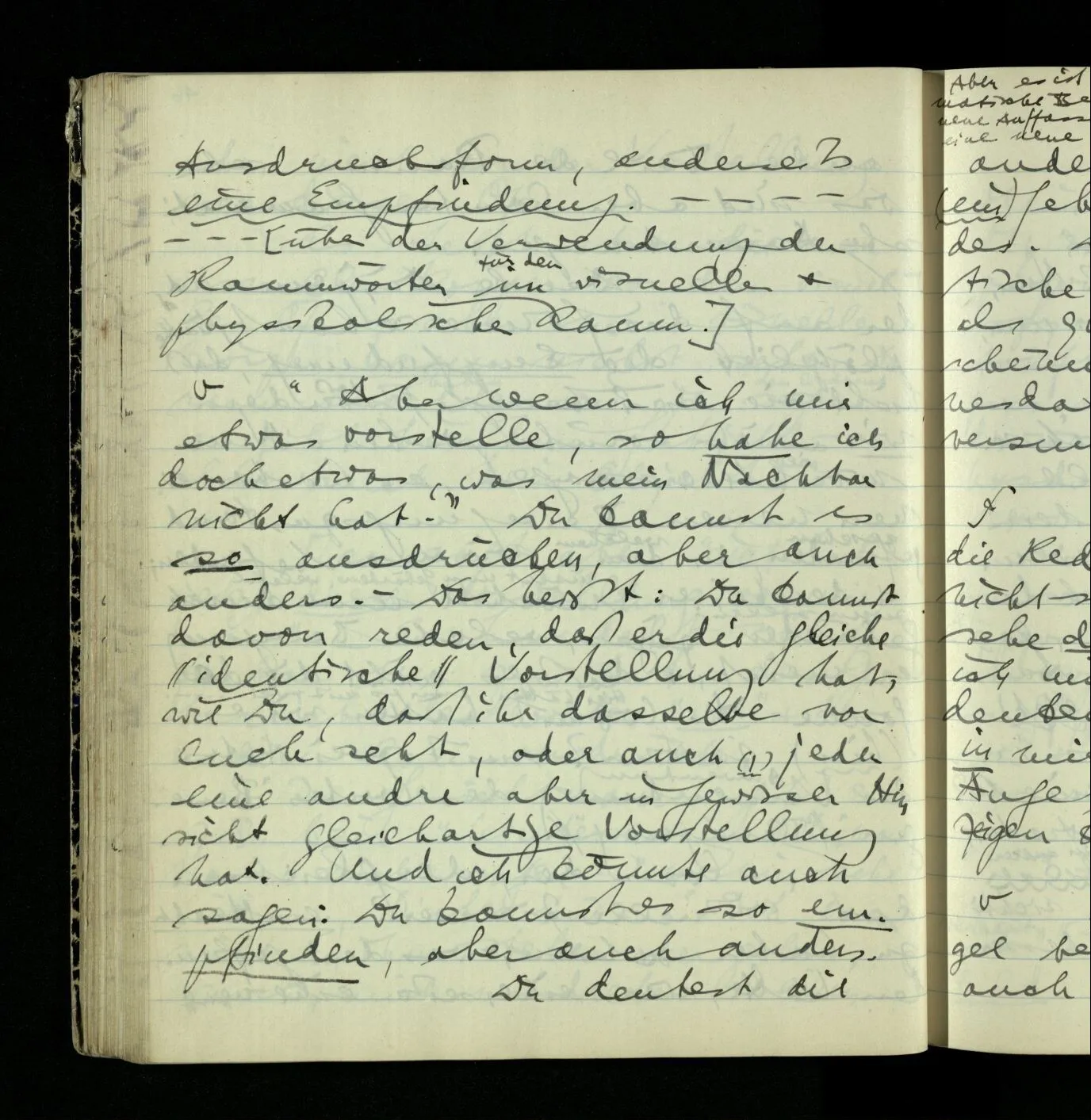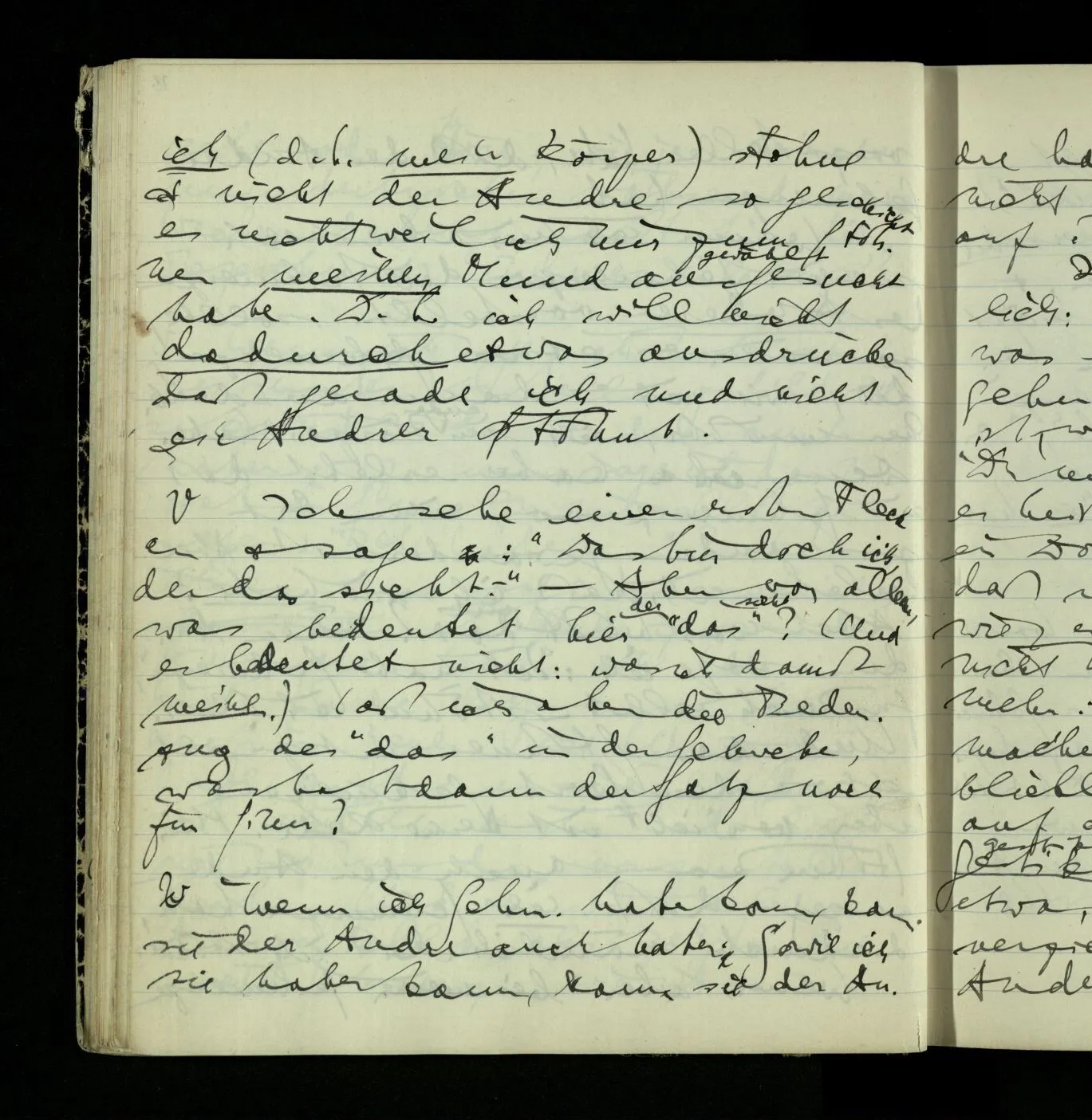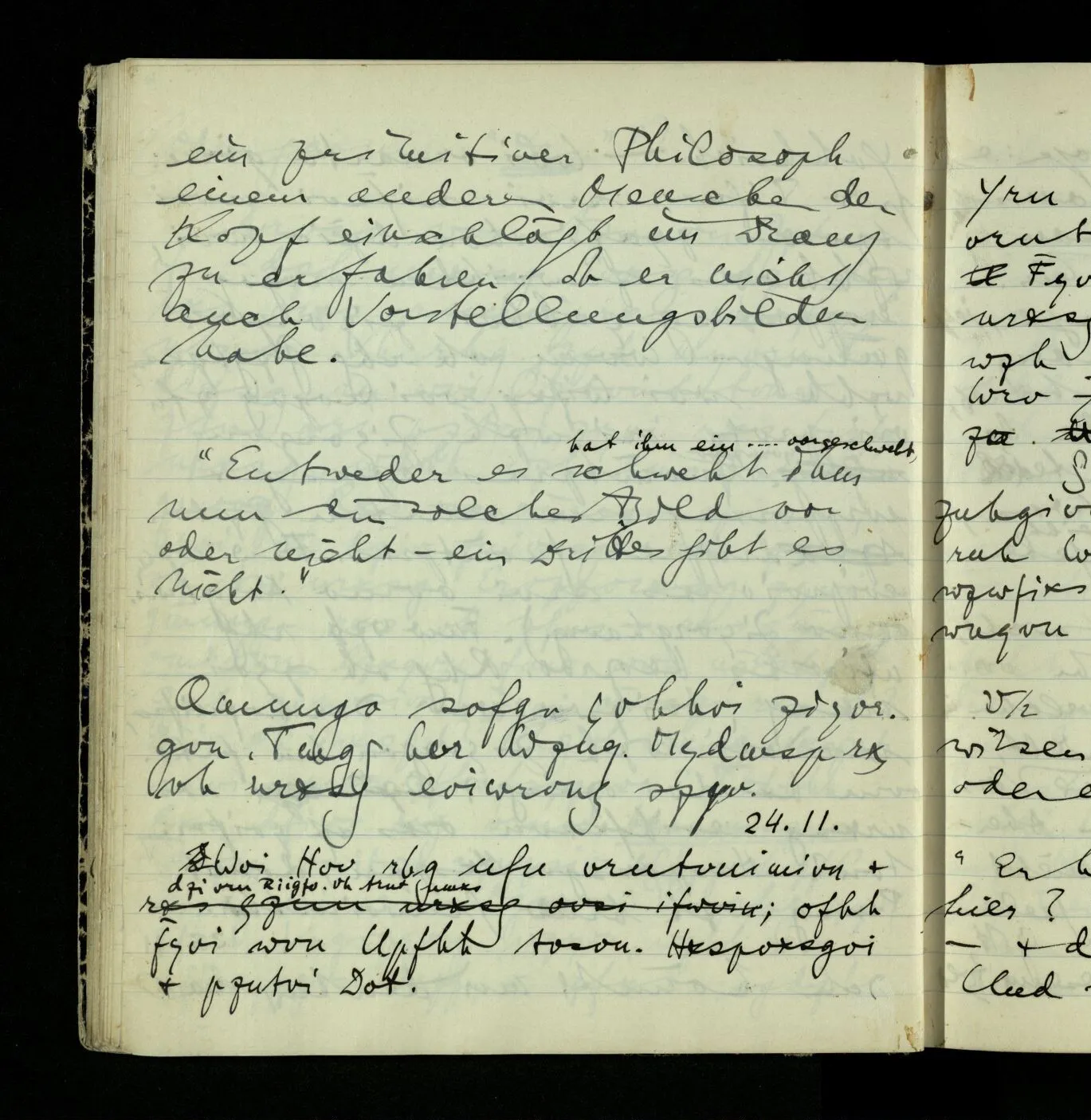 23.11.1937 Ich könnte mir denken, daß ein primitiver Philosoph einem anderen Menschen den Kopf einschlägt im Drang zu erfahren, ob er nicht auch Vorstellungsbilder habe.
