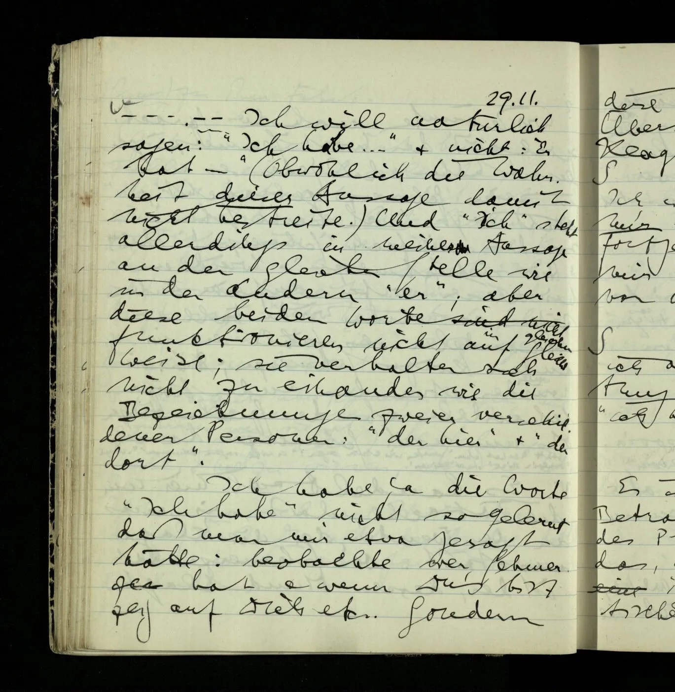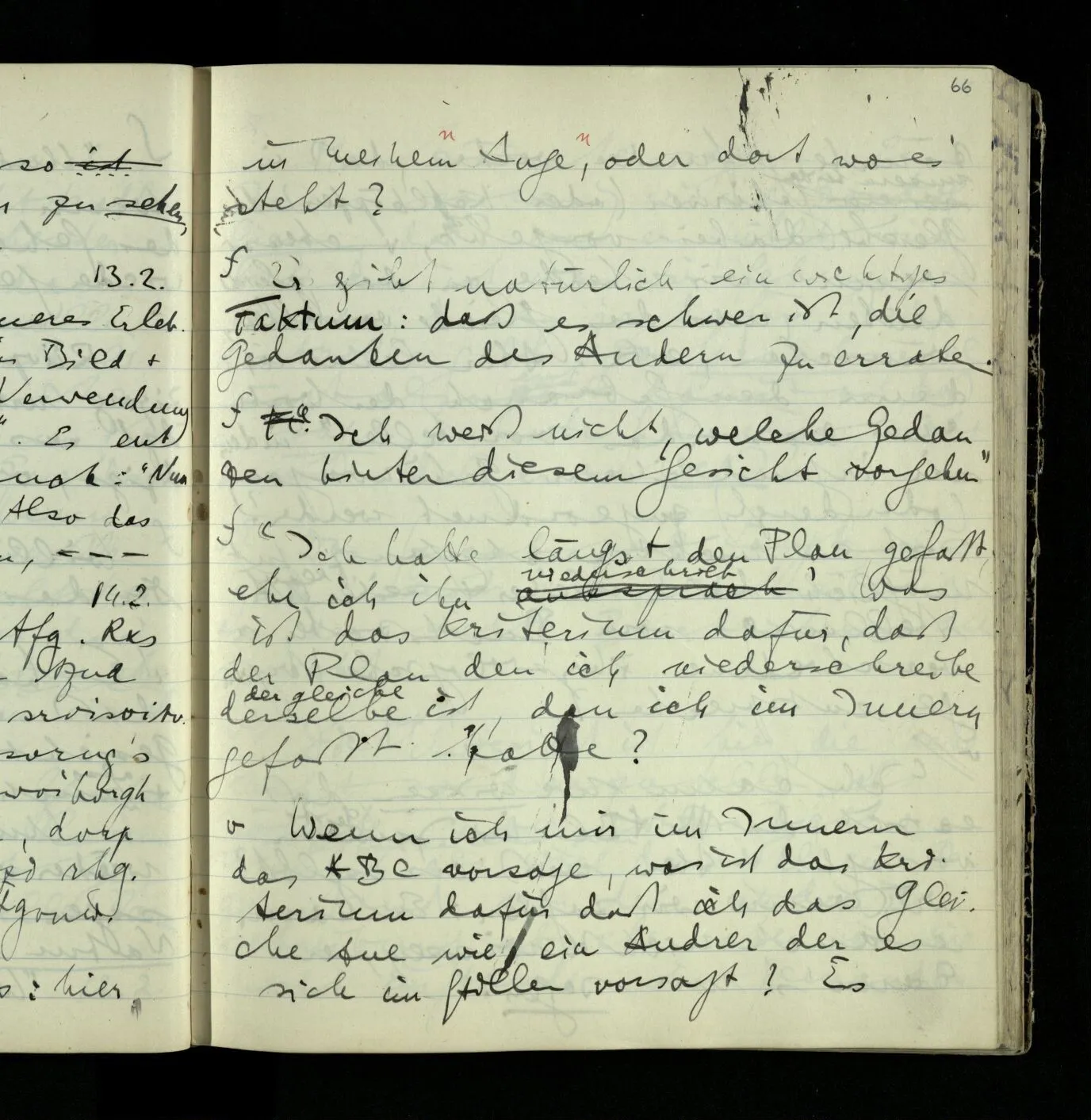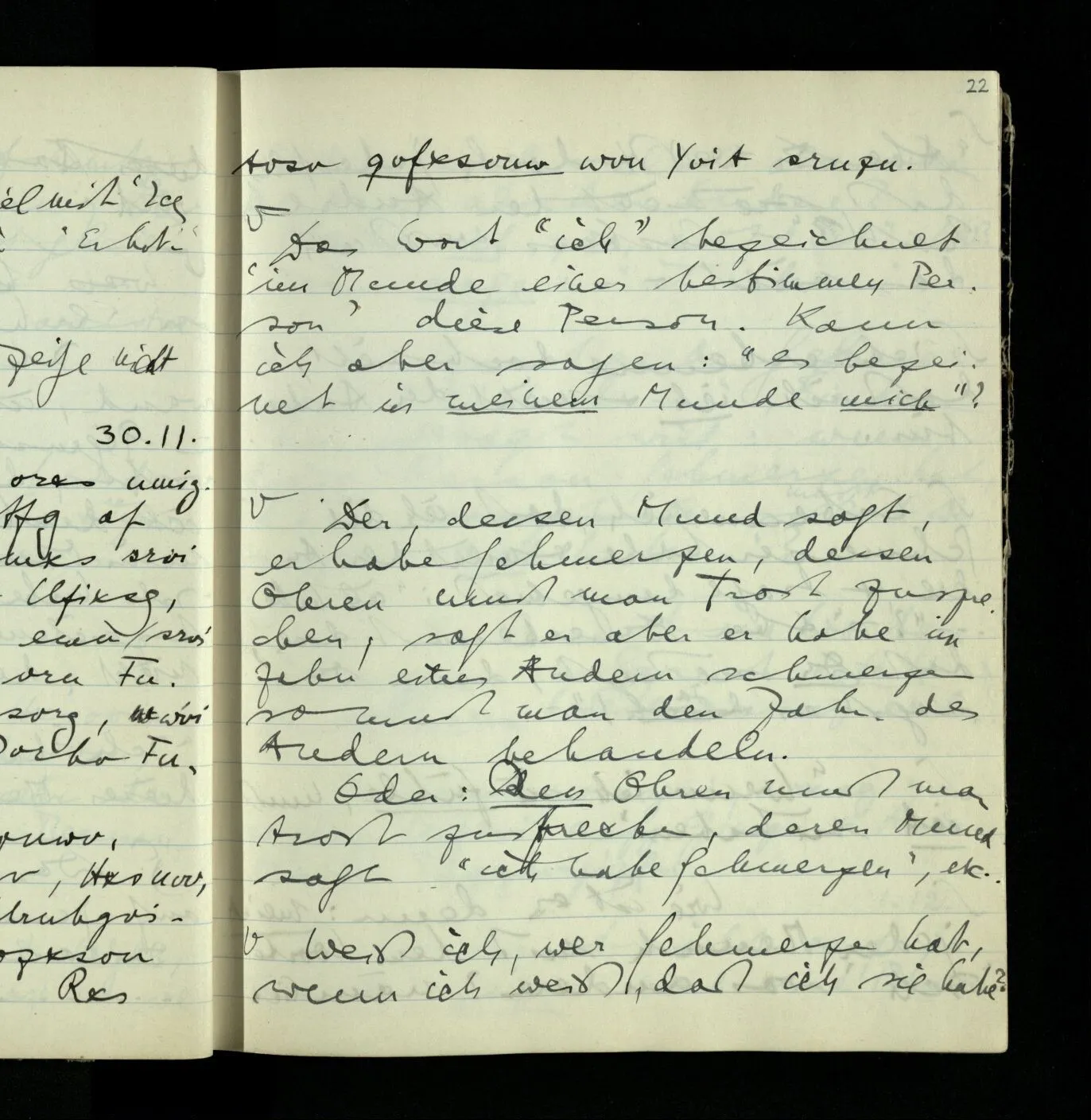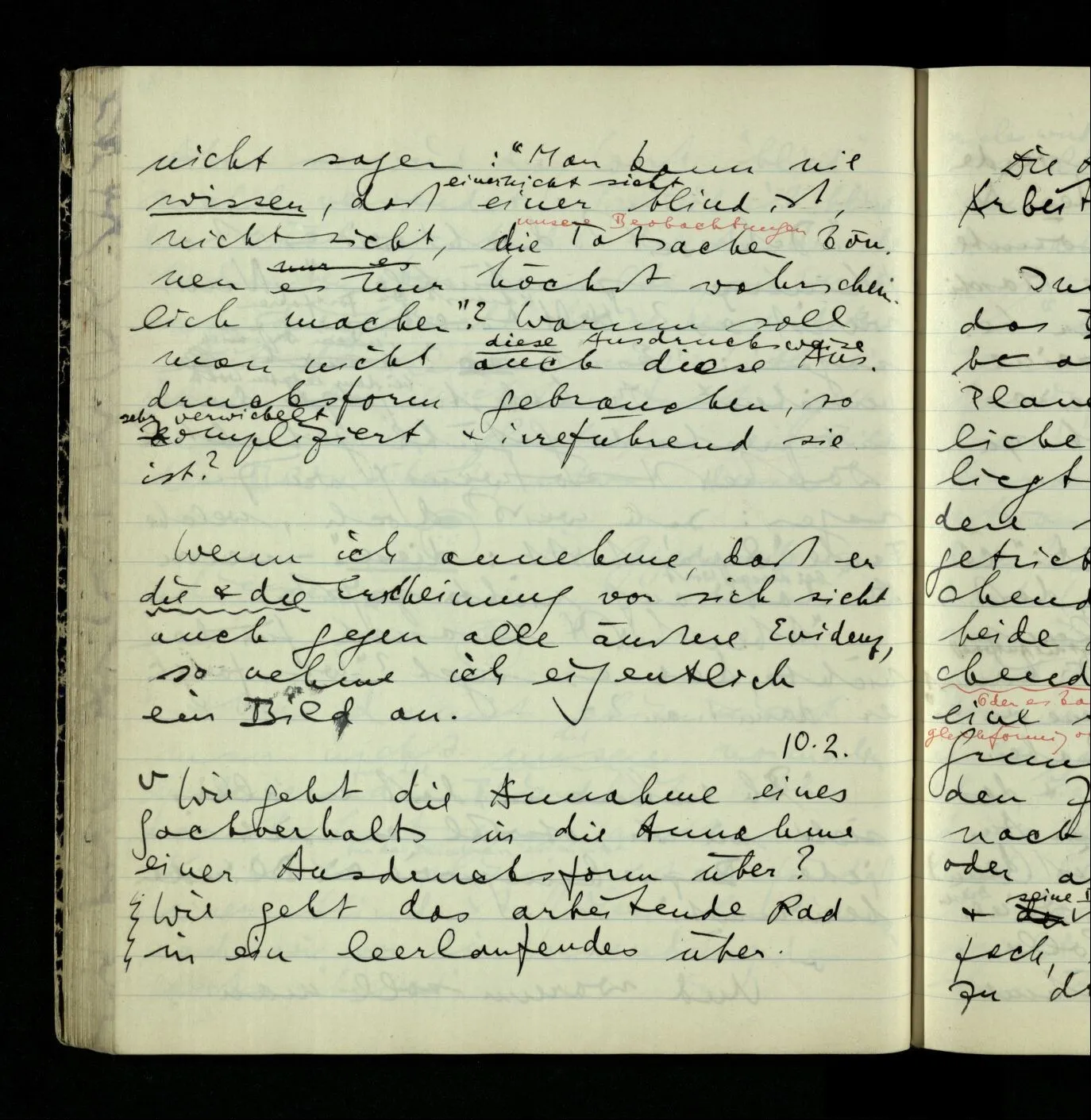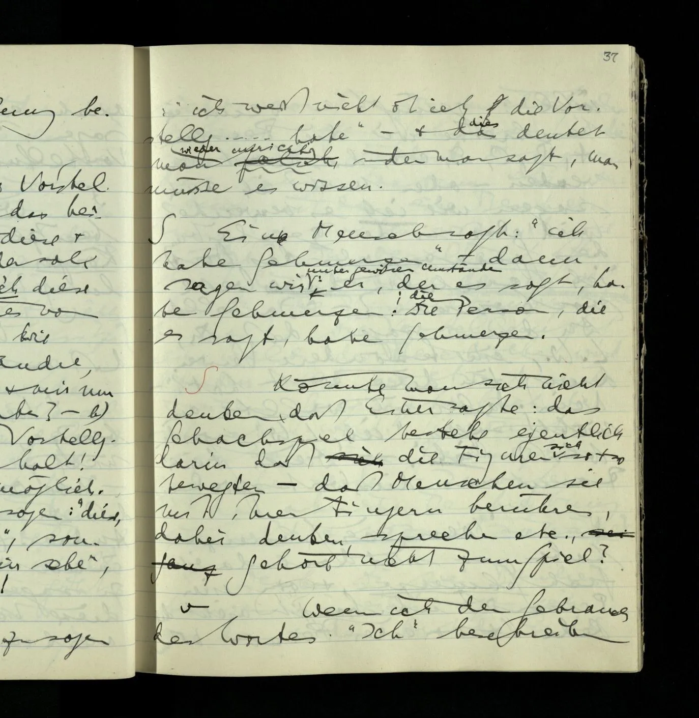 23.11.1937 Ich könnte mir denken, daß ein primitiver Philosoph einem anderen Menschen den Kopf einschlägt im Drang zu erfahren, ob er nicht auch Vorstellungsbilder habe.