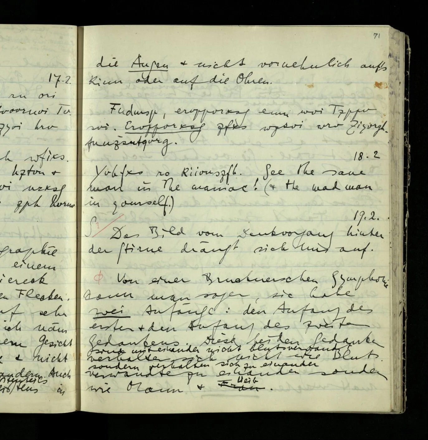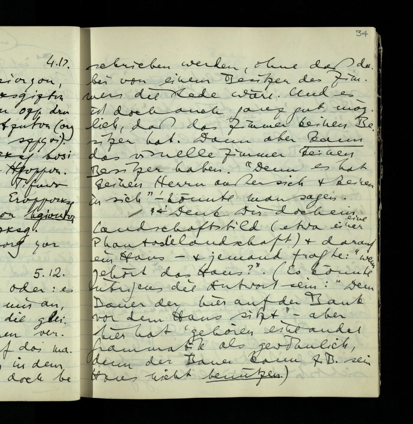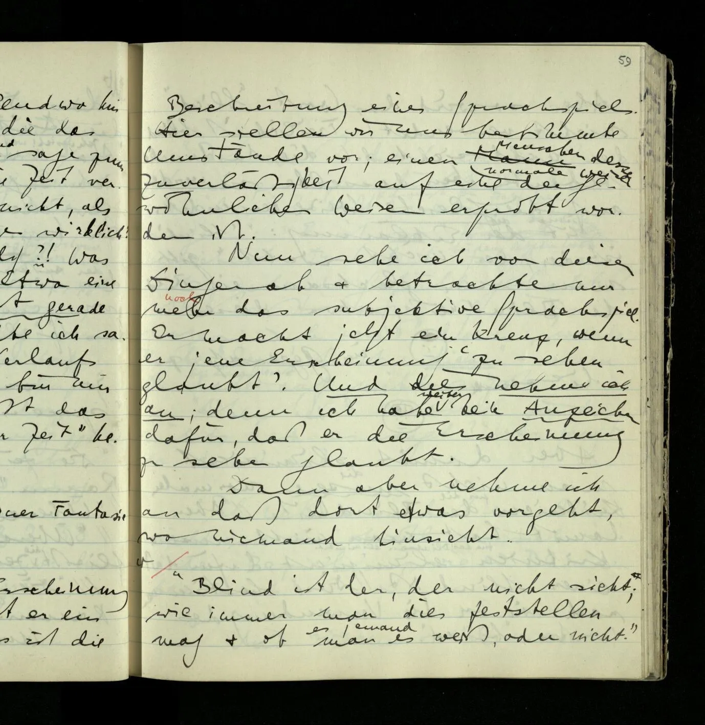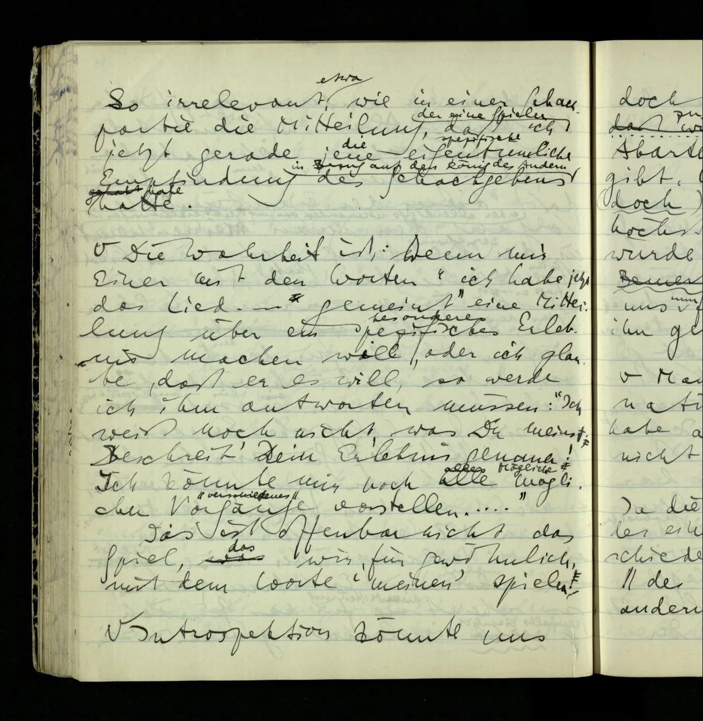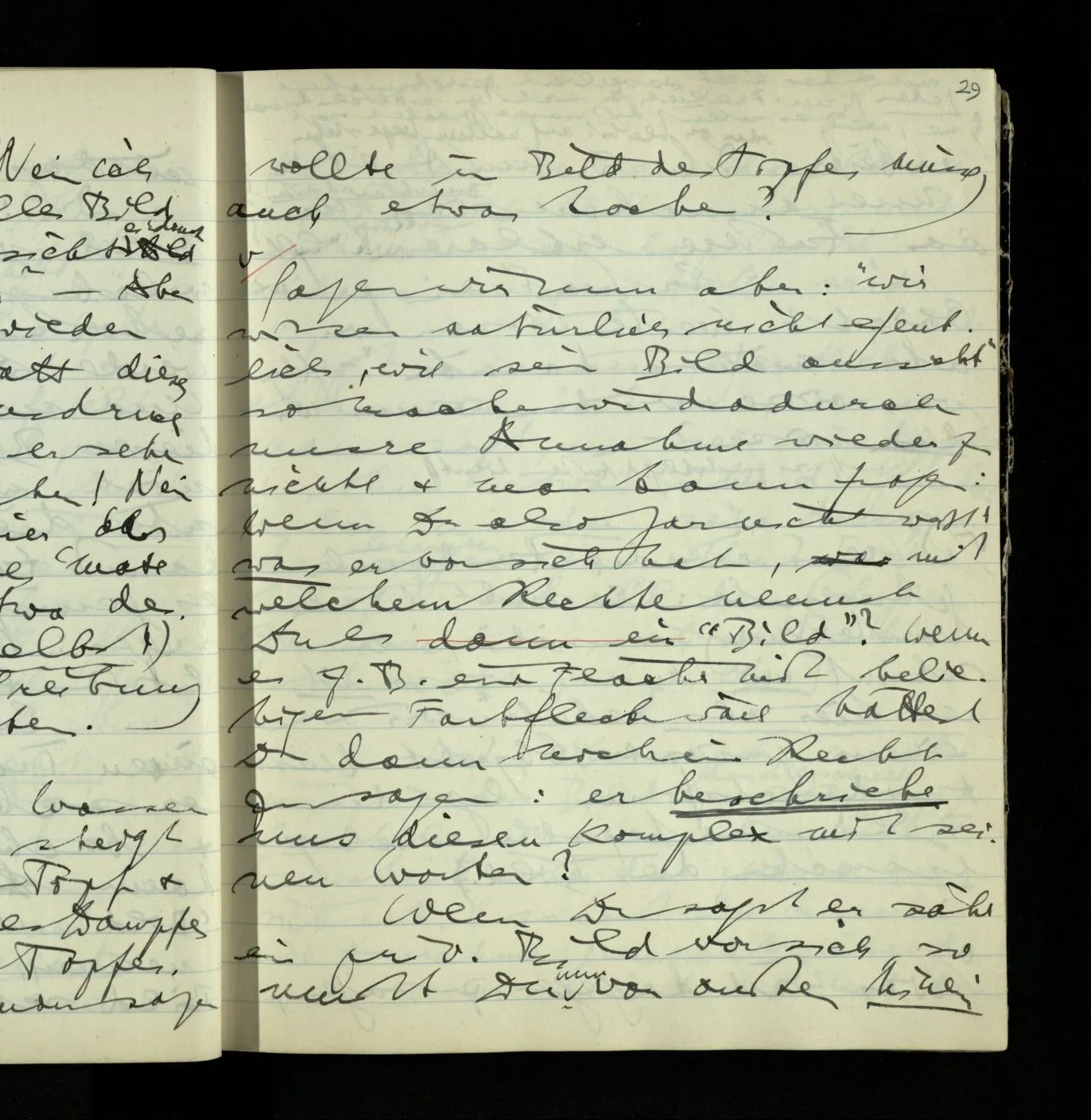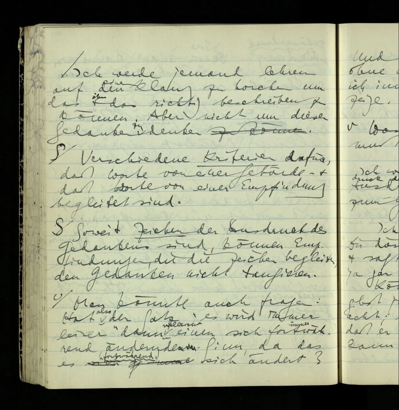 23.11.1937 Ich könnte mir denken, daß ein primitiver Philosoph einem anderen Menschen den Kopf einschlägt im Drang zu erfahren, ob er nicht auch Vorstellungsbilder habe.
