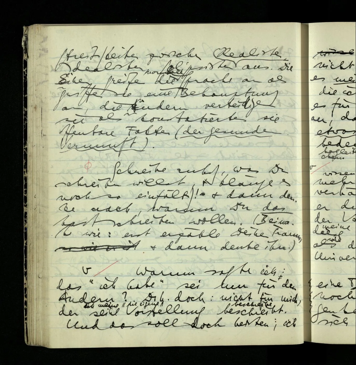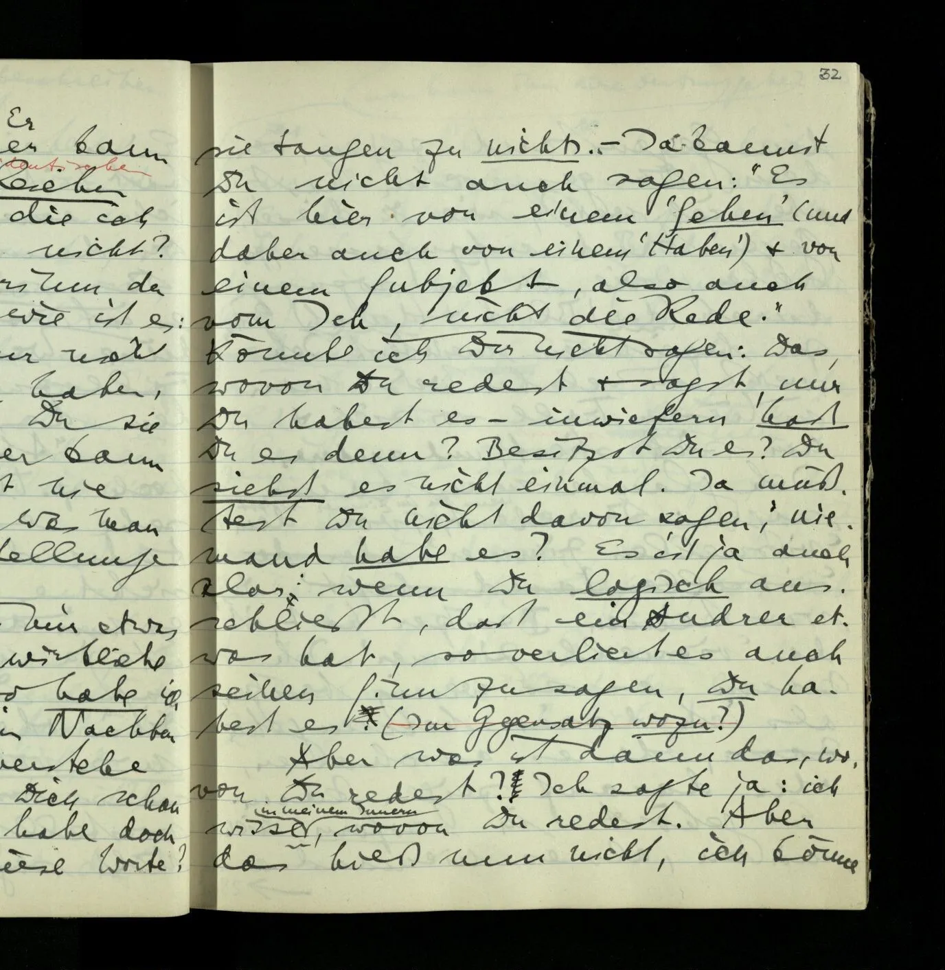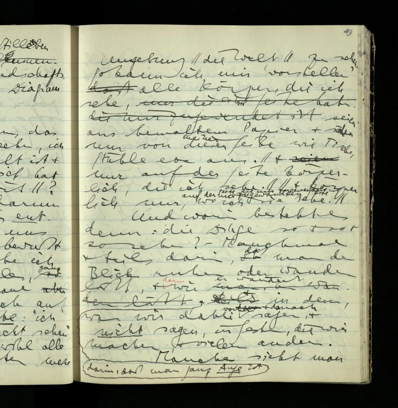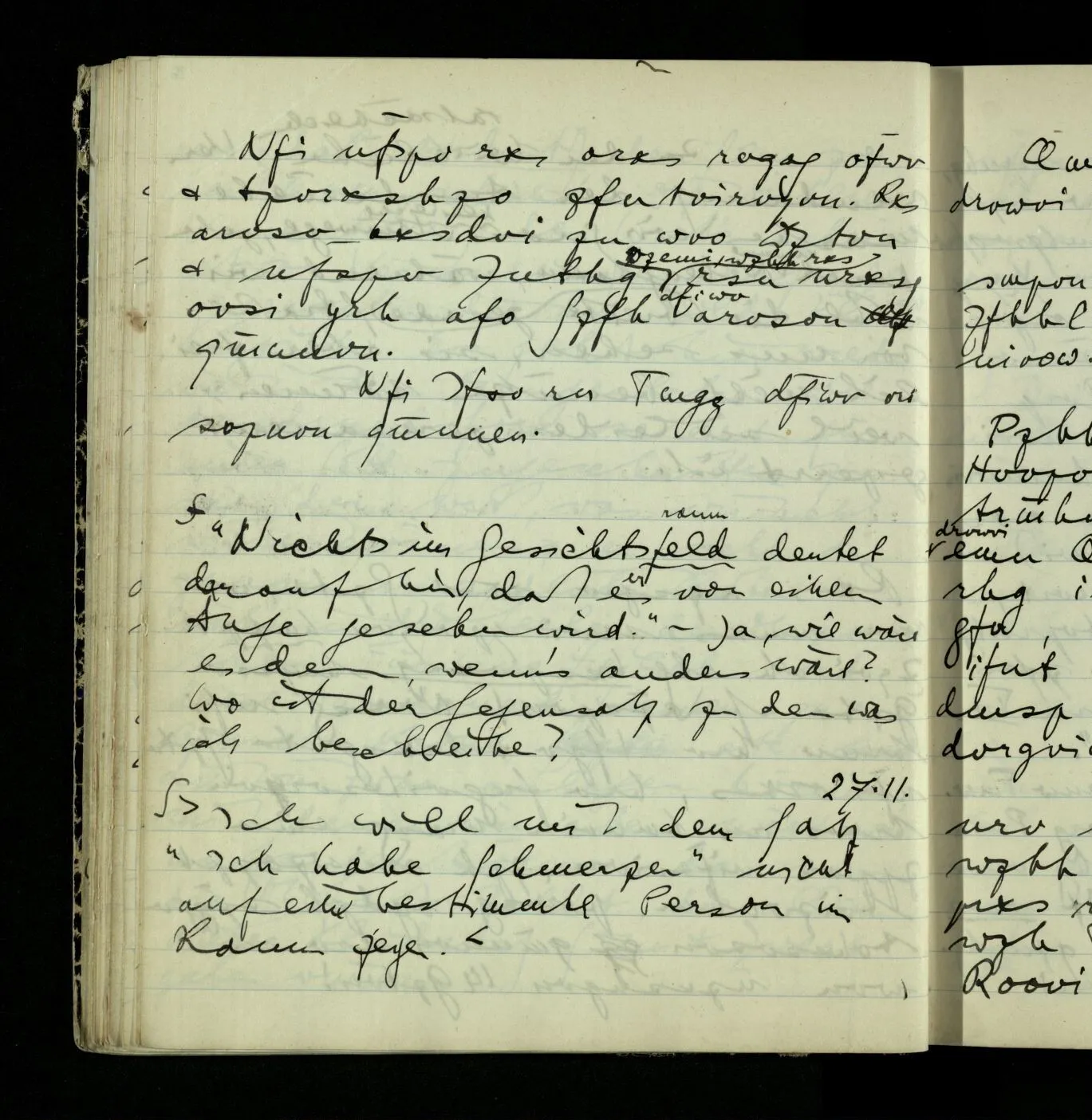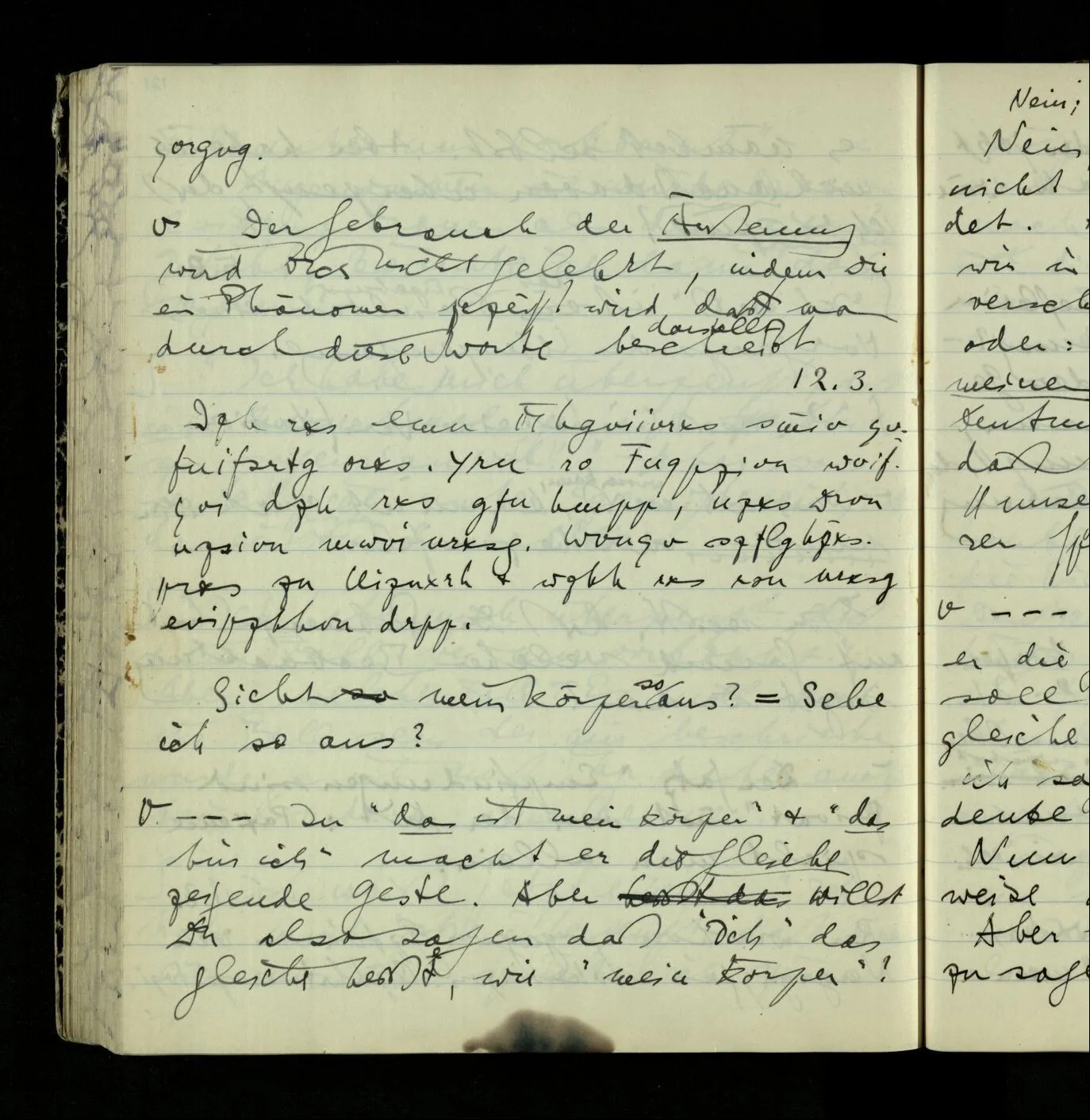 23.11.1937 Ich könnte mir denken, daß ein primitiver Philosoph einem anderen Menschen den Kopf einschlägt im Drang zu erfahren, ob er nicht auch Vorstellungsbilder habe.
