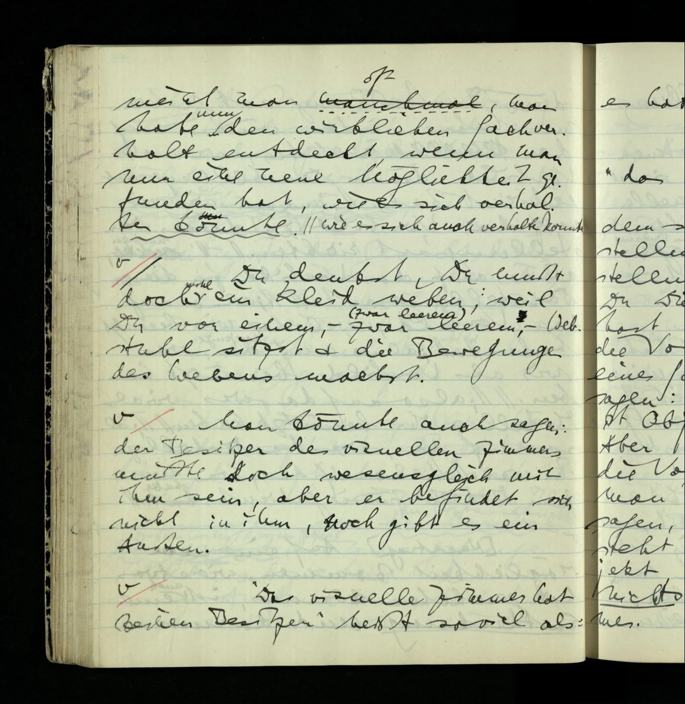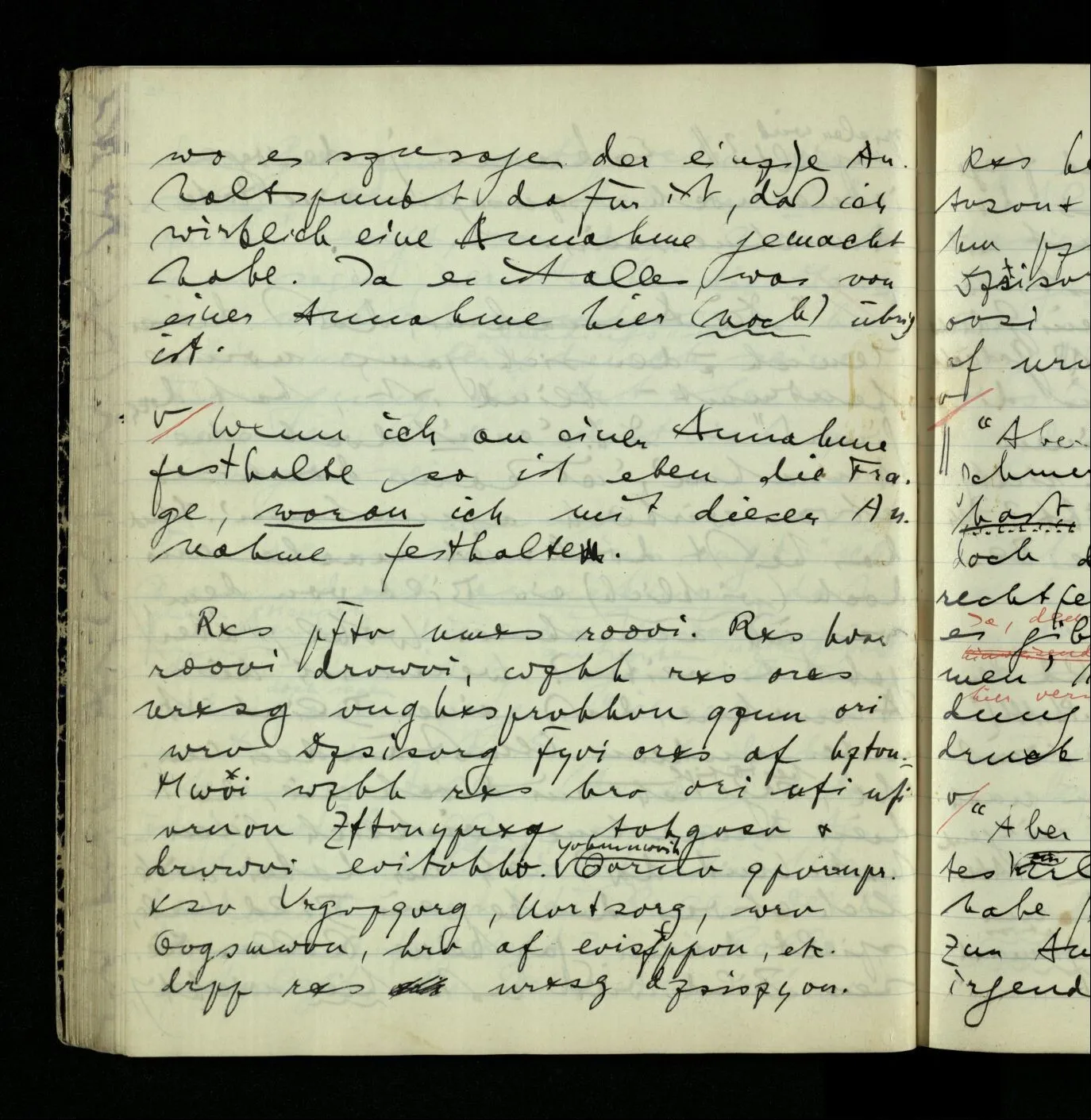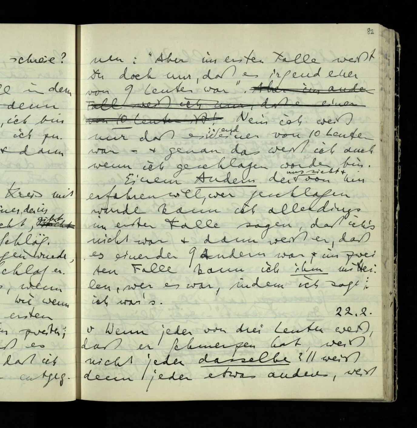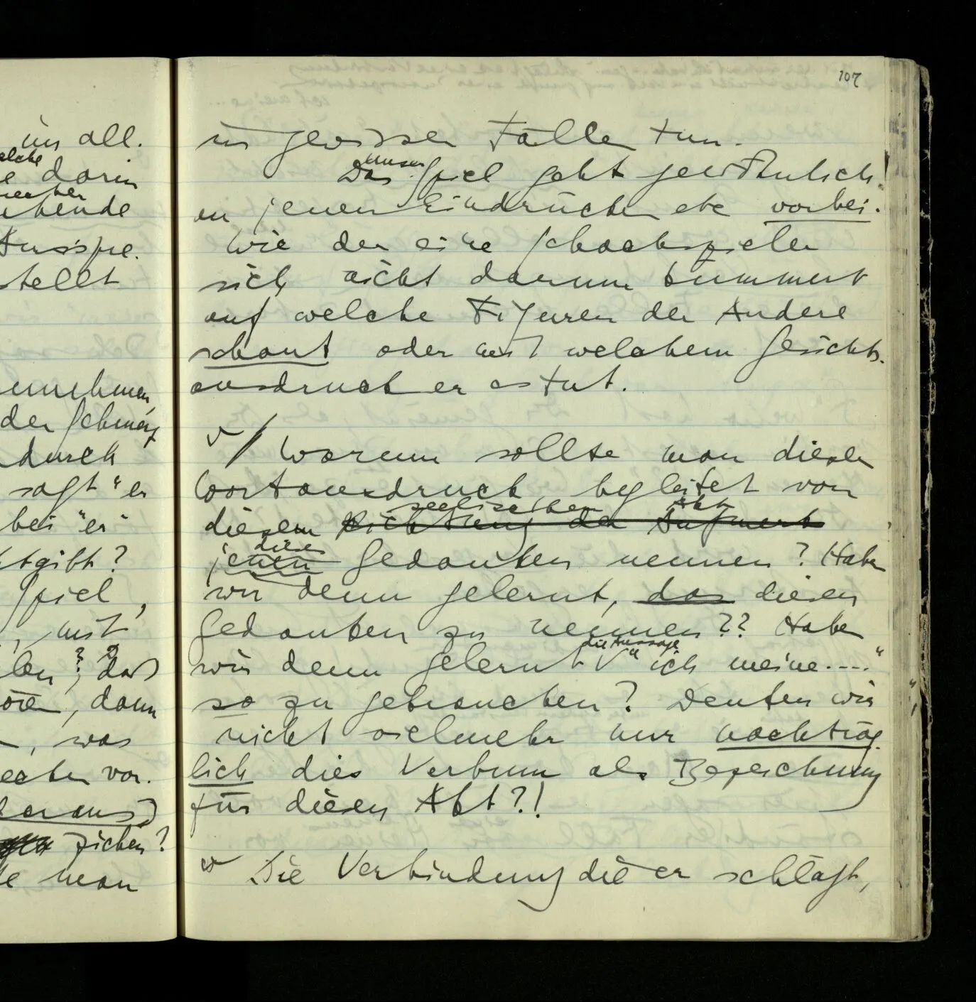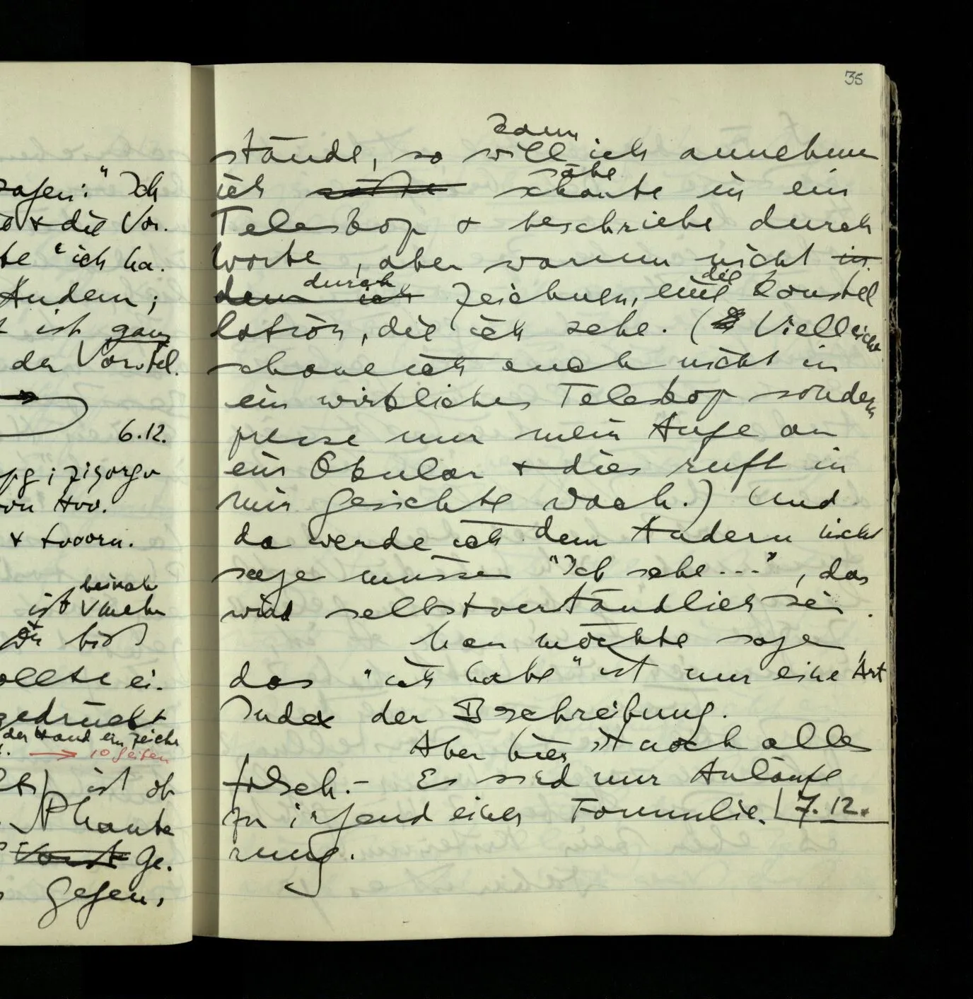 23.11.1937 Ich könnte mir denken, daß ein primitiver Philosoph einem anderen Menschen den Kopf einschlägt im Drang zu erfahren, ob er nicht auch Vorstellungsbilder habe.