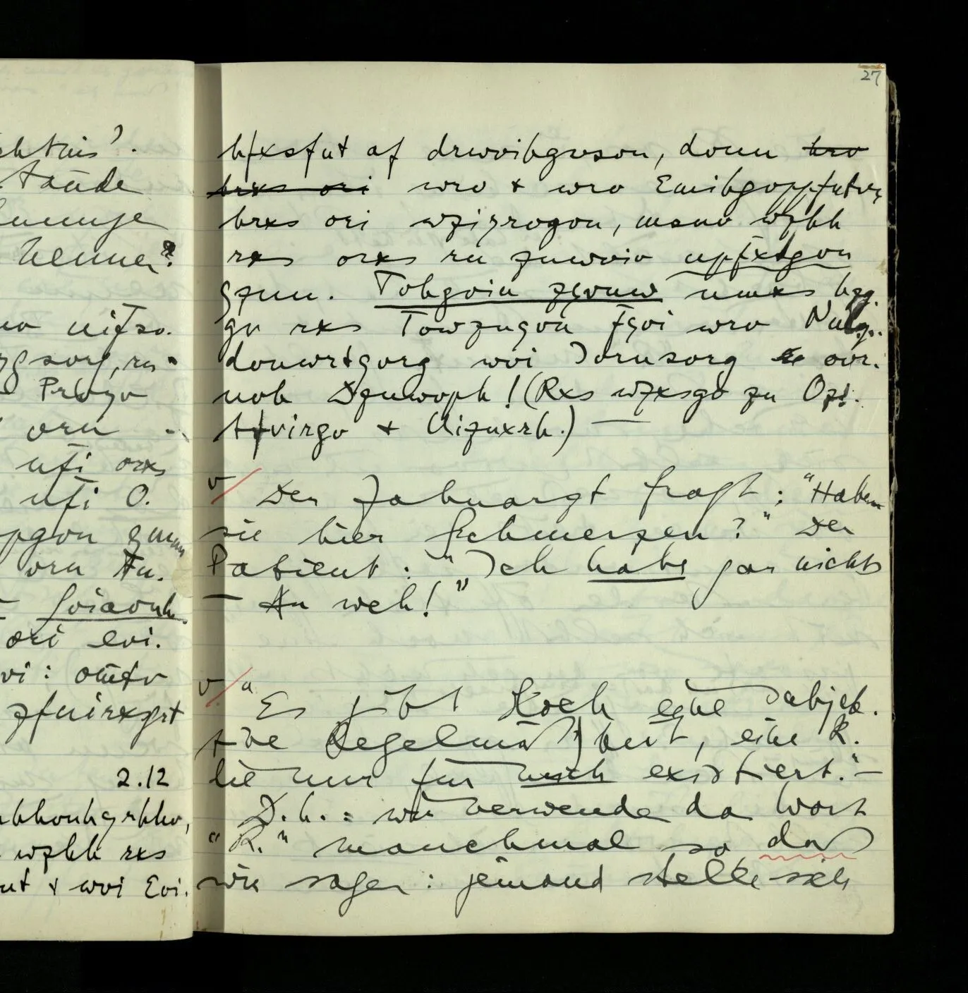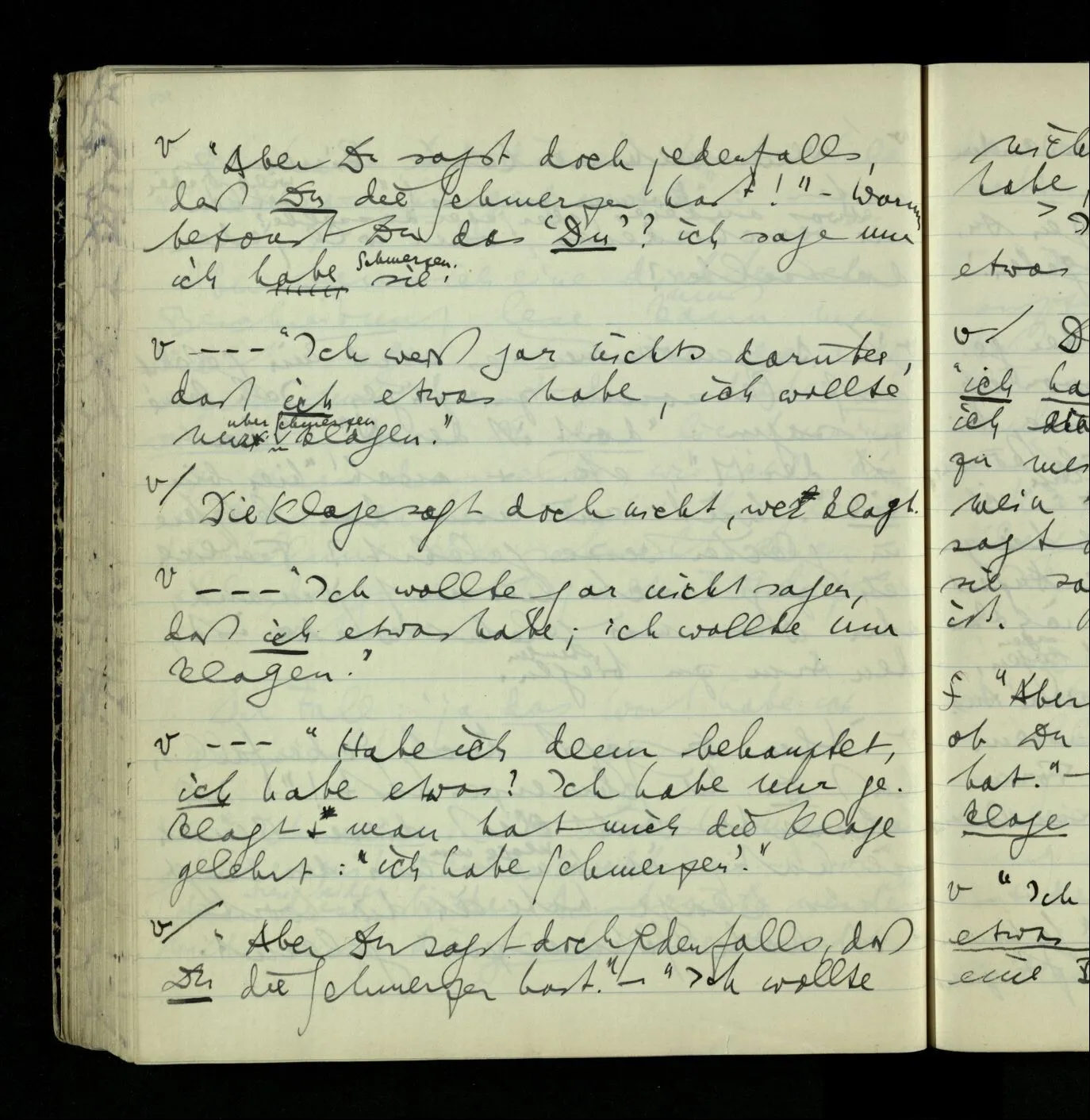 27.11.1937 ›Ich will mit dem Satz “Ich habe Schmerzen” nicht auf eine bestimmte Person im Raum zeigen.‹