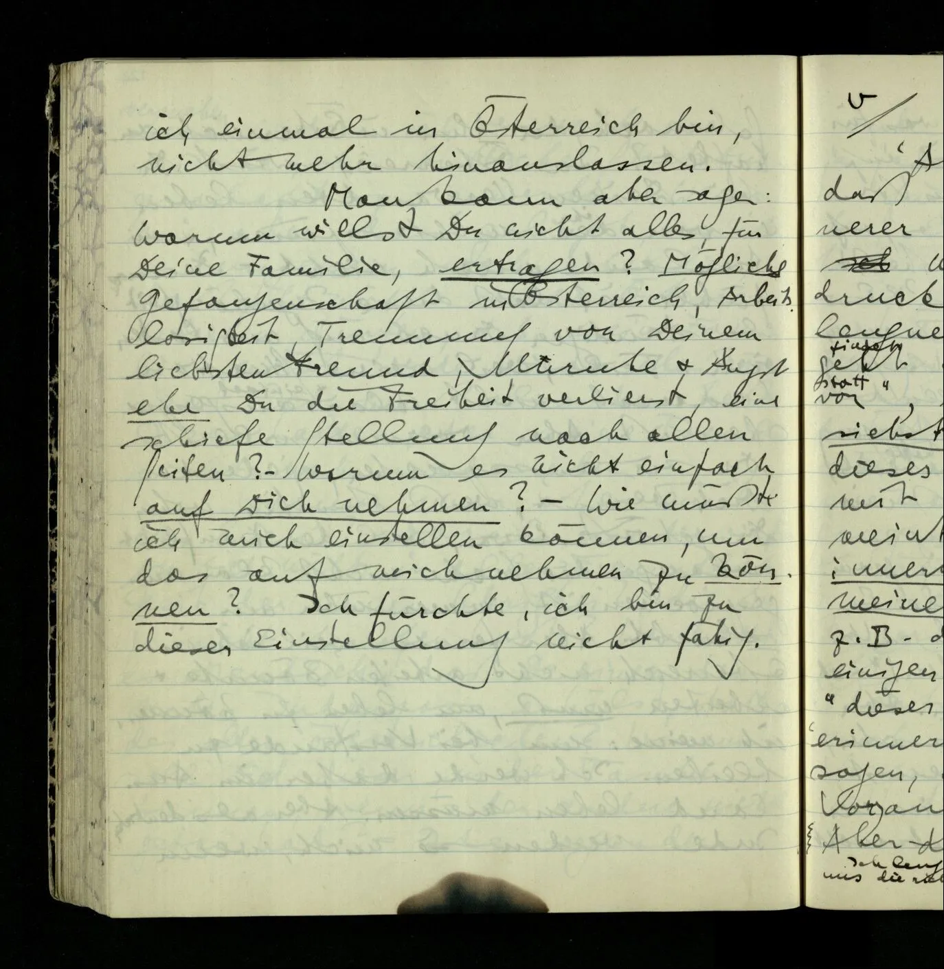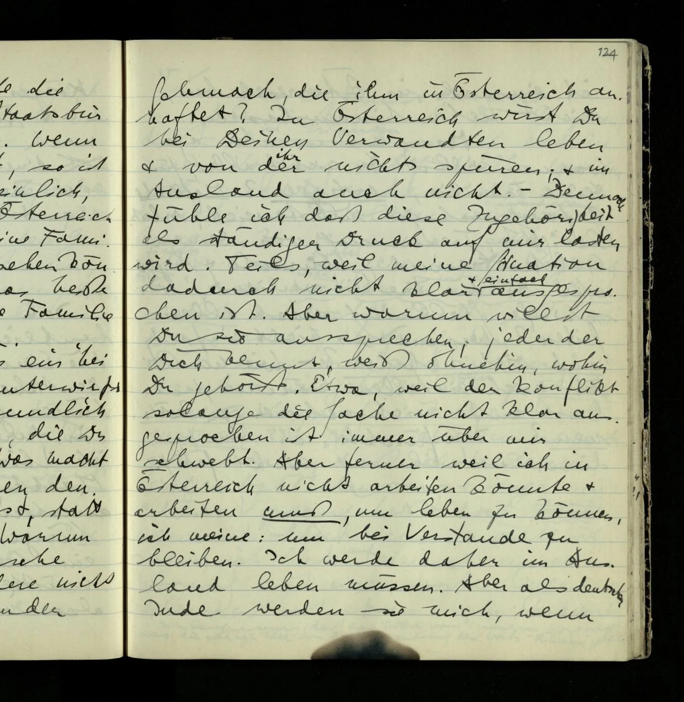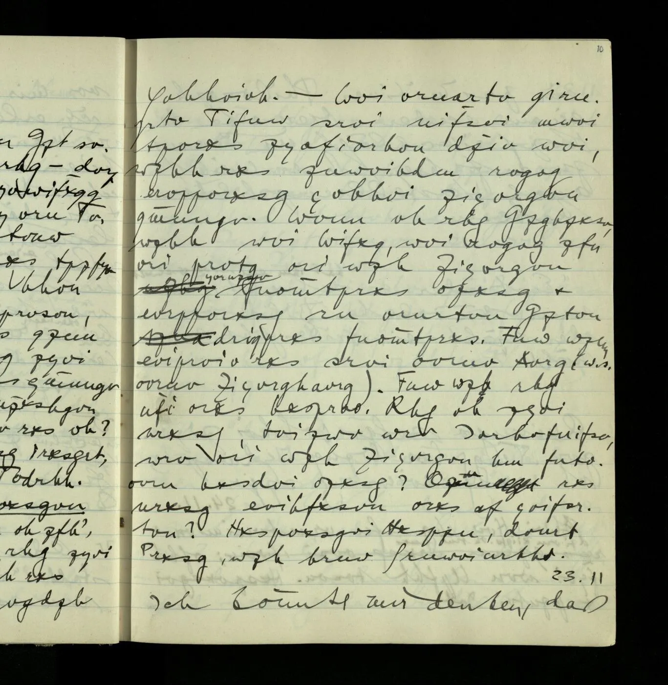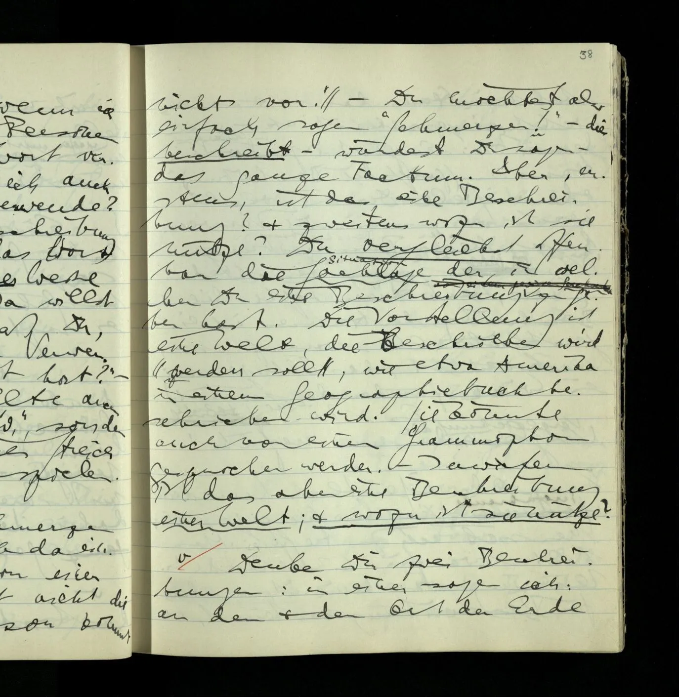 22.11.1937 Ich zähle jetzt die Tage, meines Aufenthaltes. Noch etwas weniger als 3 Wochen. Ob ich sie erleben werde. – Ich fürchte mich vor allem; vor dem Aufenthalt, vor der Reise durch Deutschland; sogar etwas vor Wien, & vor der Zukunft. Ja, ich bin jetzt, sozusagen, beschissen. Fühle mich verloren. Gott wende es! Sich in die Welt finden – darauf kommt es an. Nicht von ihr fordern. Sondern sich in sie finden, wie sie ist. D.h.: nicht sich einen Roman vormachen, & dann über den Mangel an Übereinstimmung der Welt mit ihm erstaunt & beleidigt sein. Aber ich tue dies eben doch. Ich fühle mich ziemlich elend.