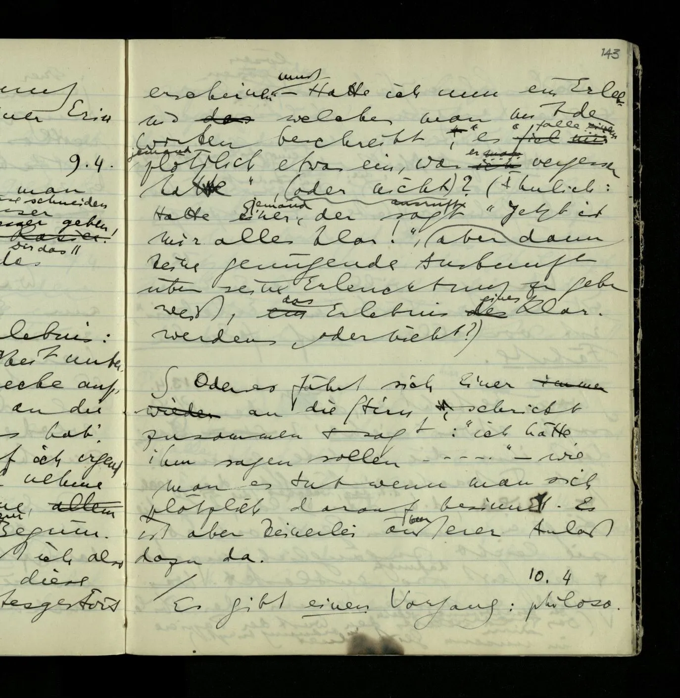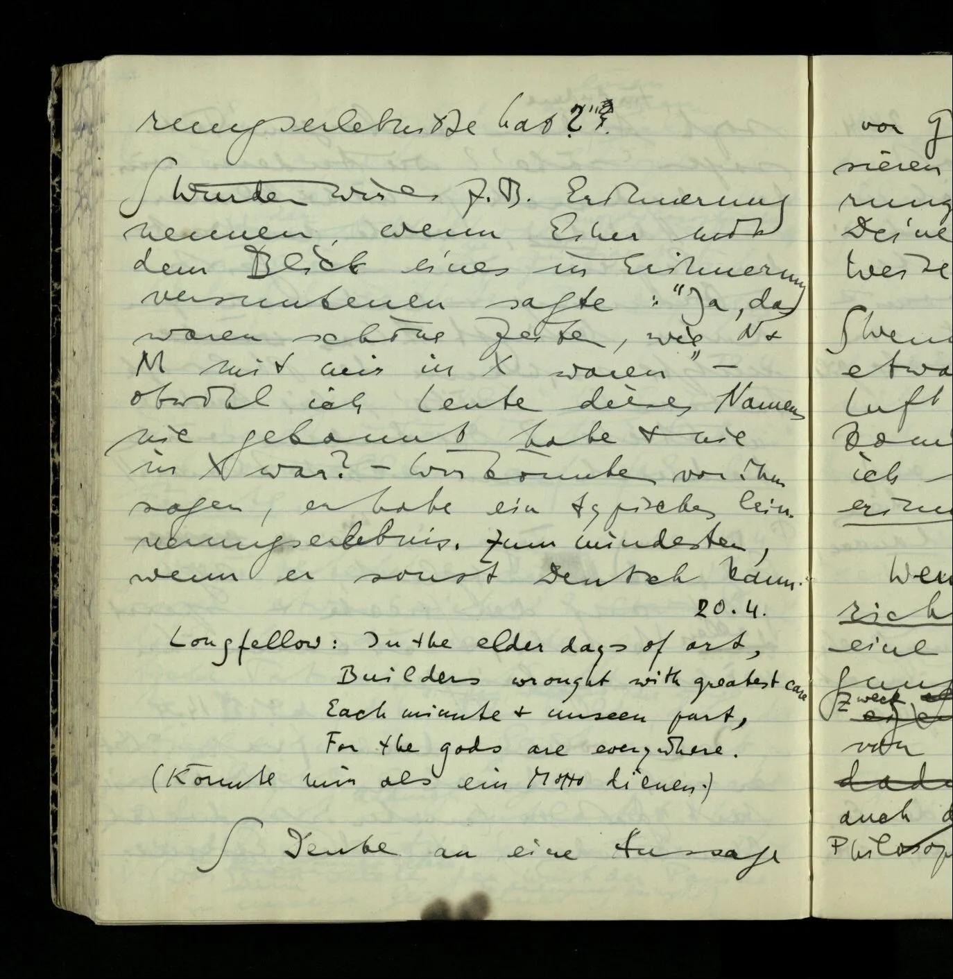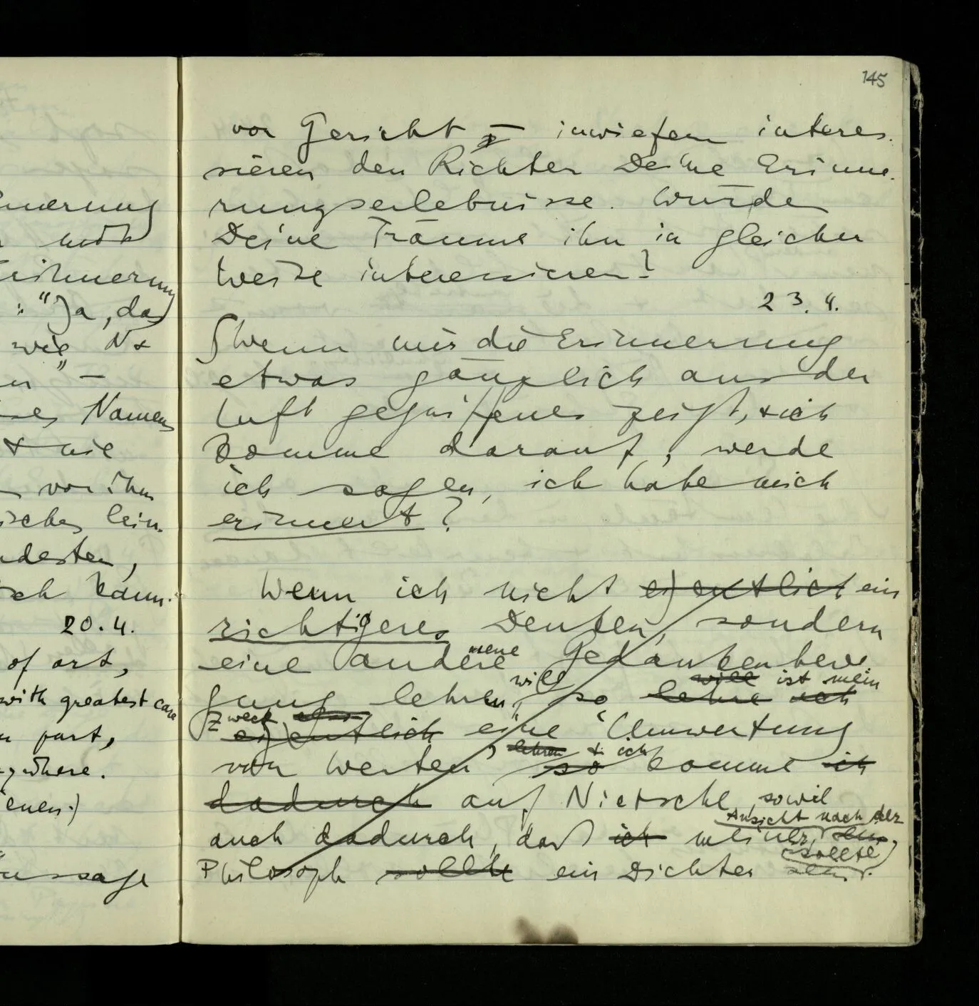 23.04.1938 Wenn mir die Erinnerung etwas gänzlich aus der Luft gegriffenes zeigt, & ich komme darauf, werde ich sagen, ich habe mich erinnert?