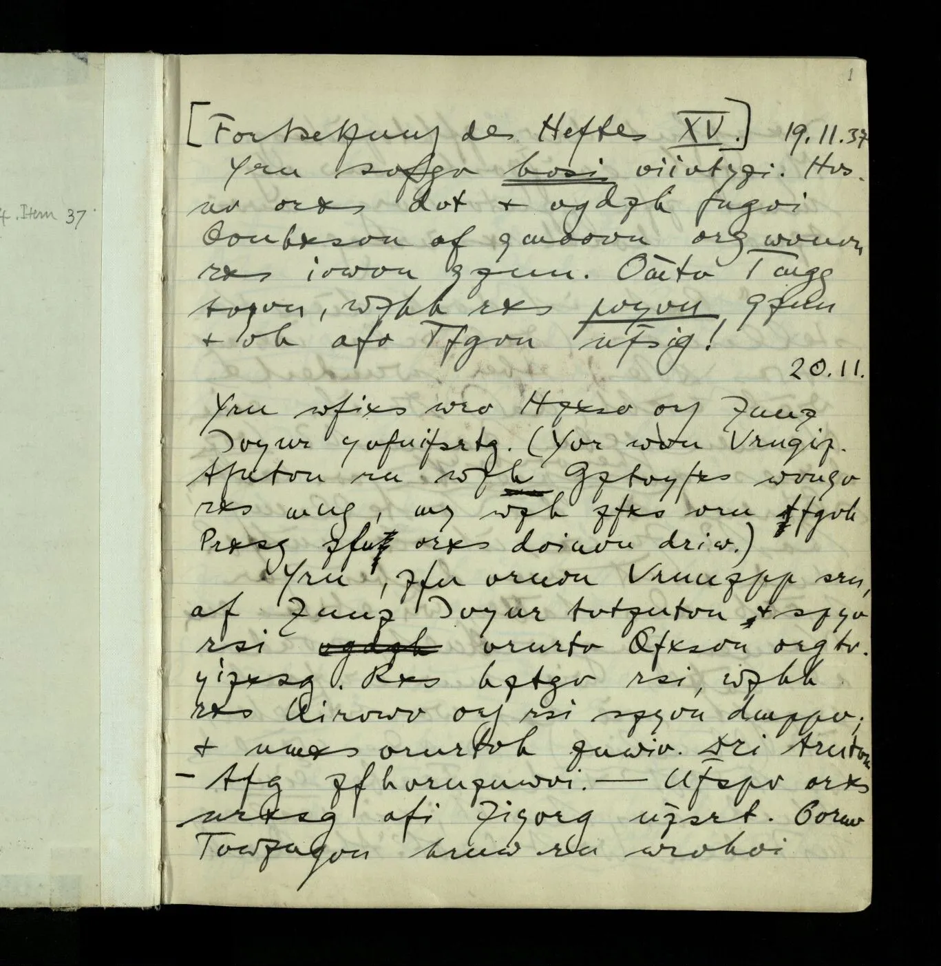 19.11.1937 Bin heute sehr erregbar. Sehne mich weg & etwas unter Menschen zu kommen mit denen ich reden kann. Möge Gott geben, daß ich leben kann & es zum Guten führt!