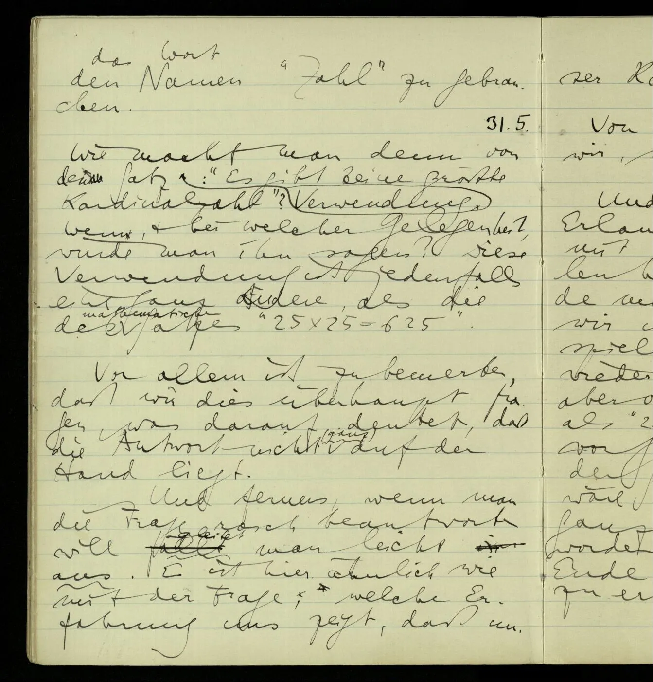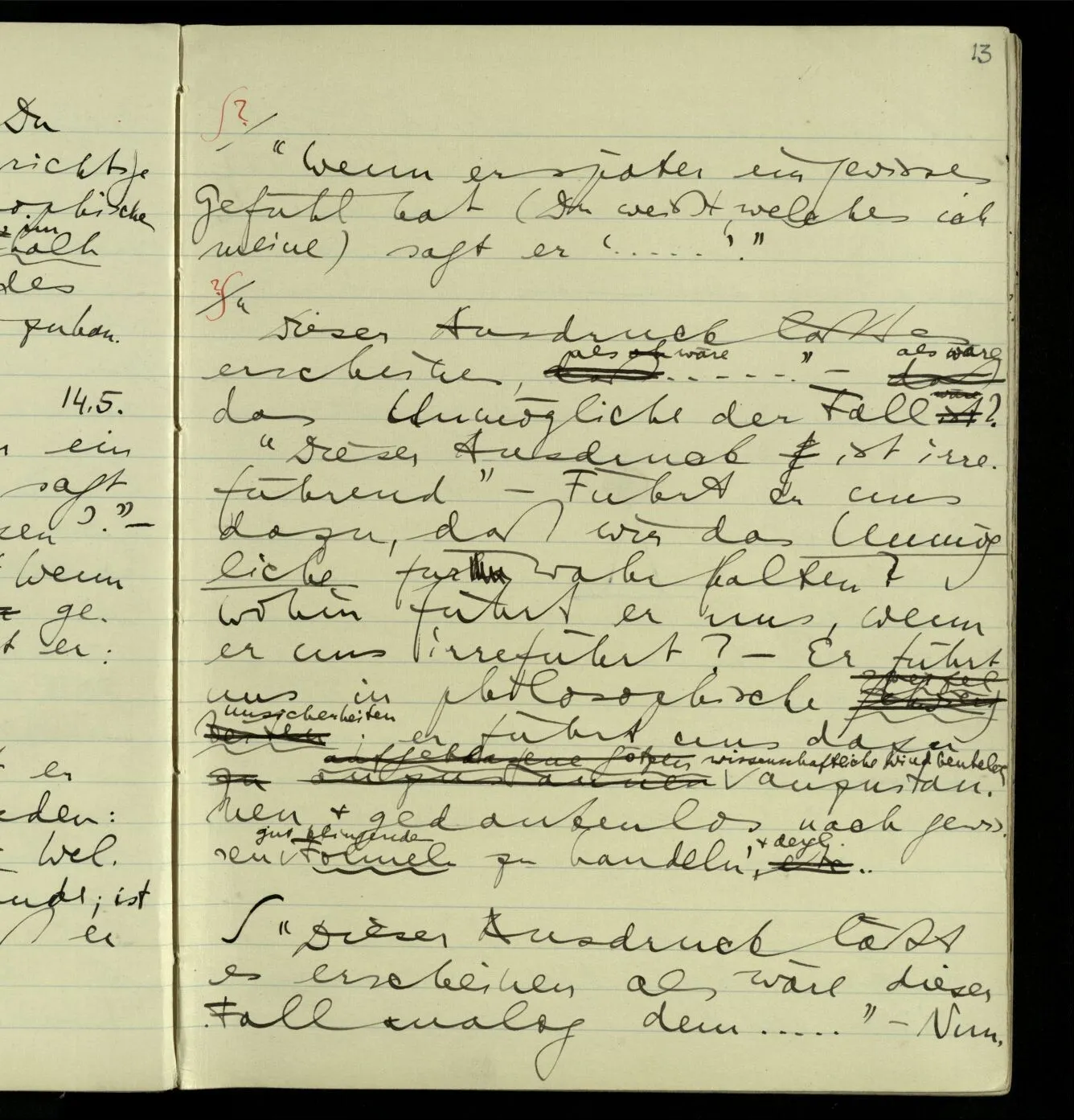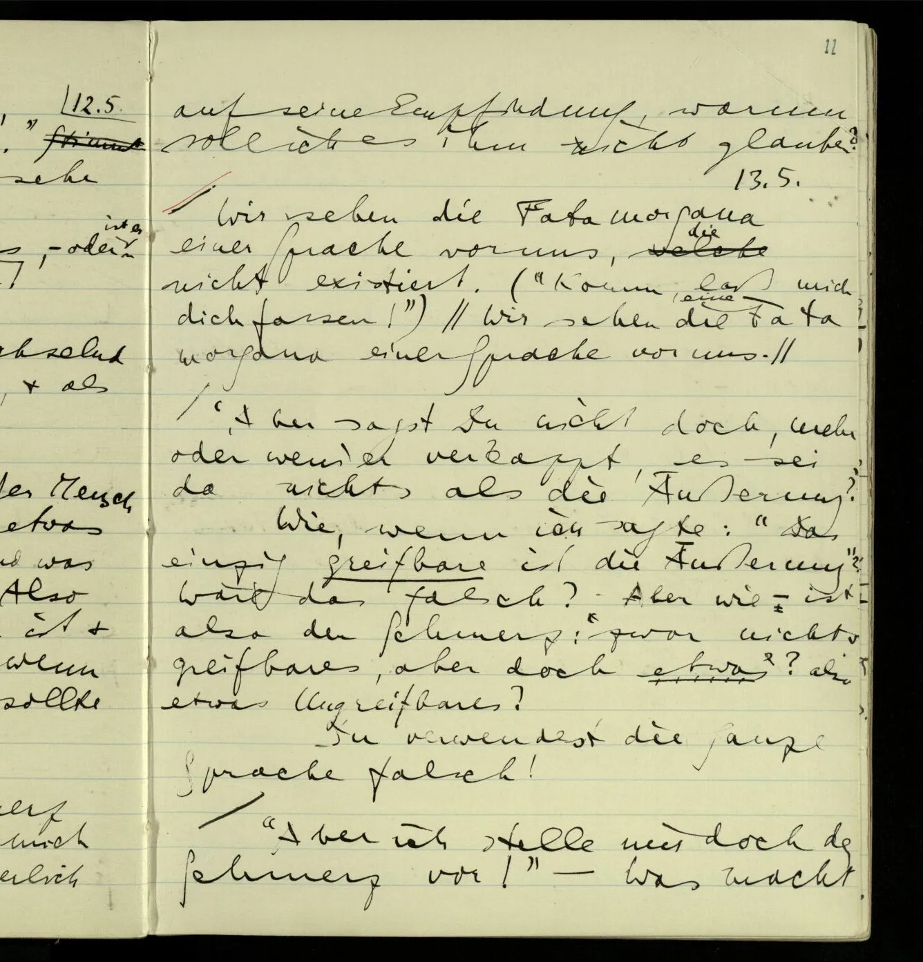 13.05.1938 Wir sehen die Fata Morgana einer Sprache vor uns, die nicht existiert. (“Komm, laß mich dich fassen!”)