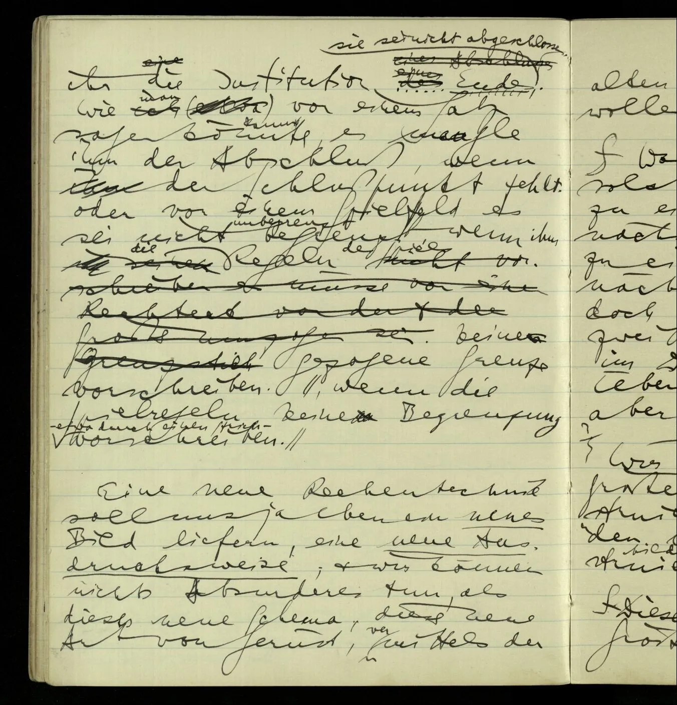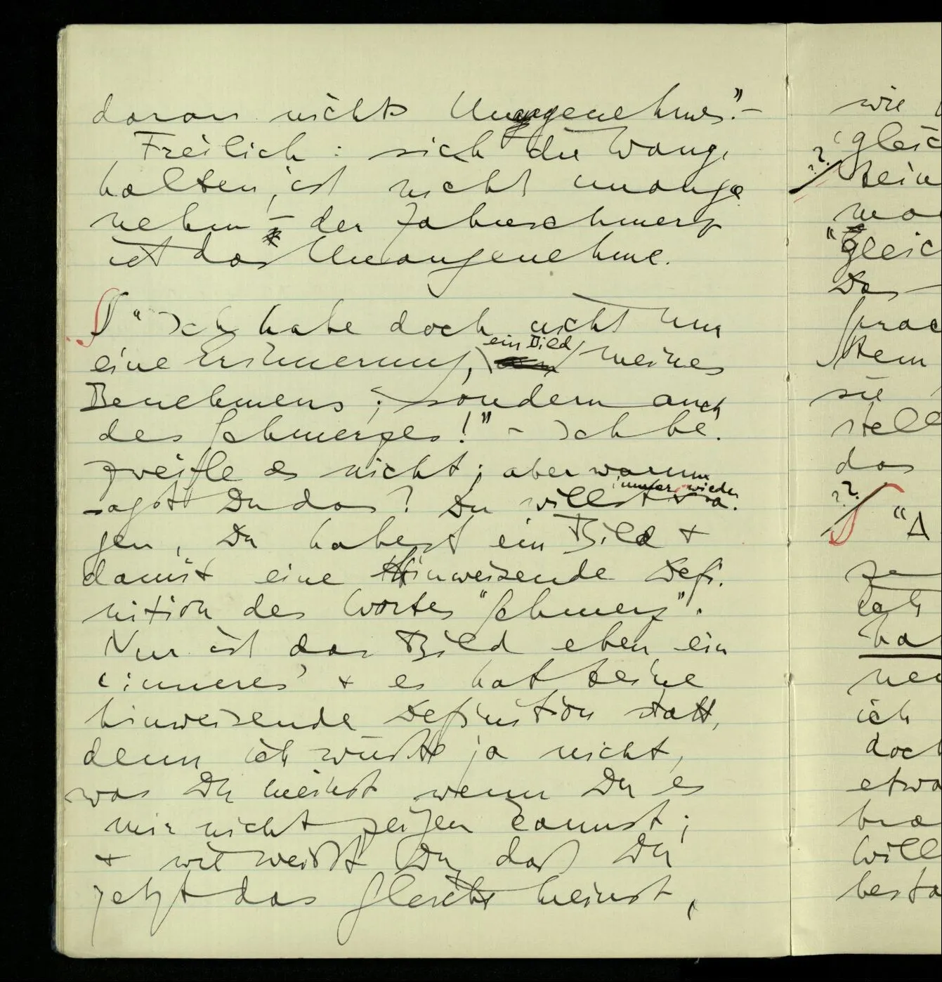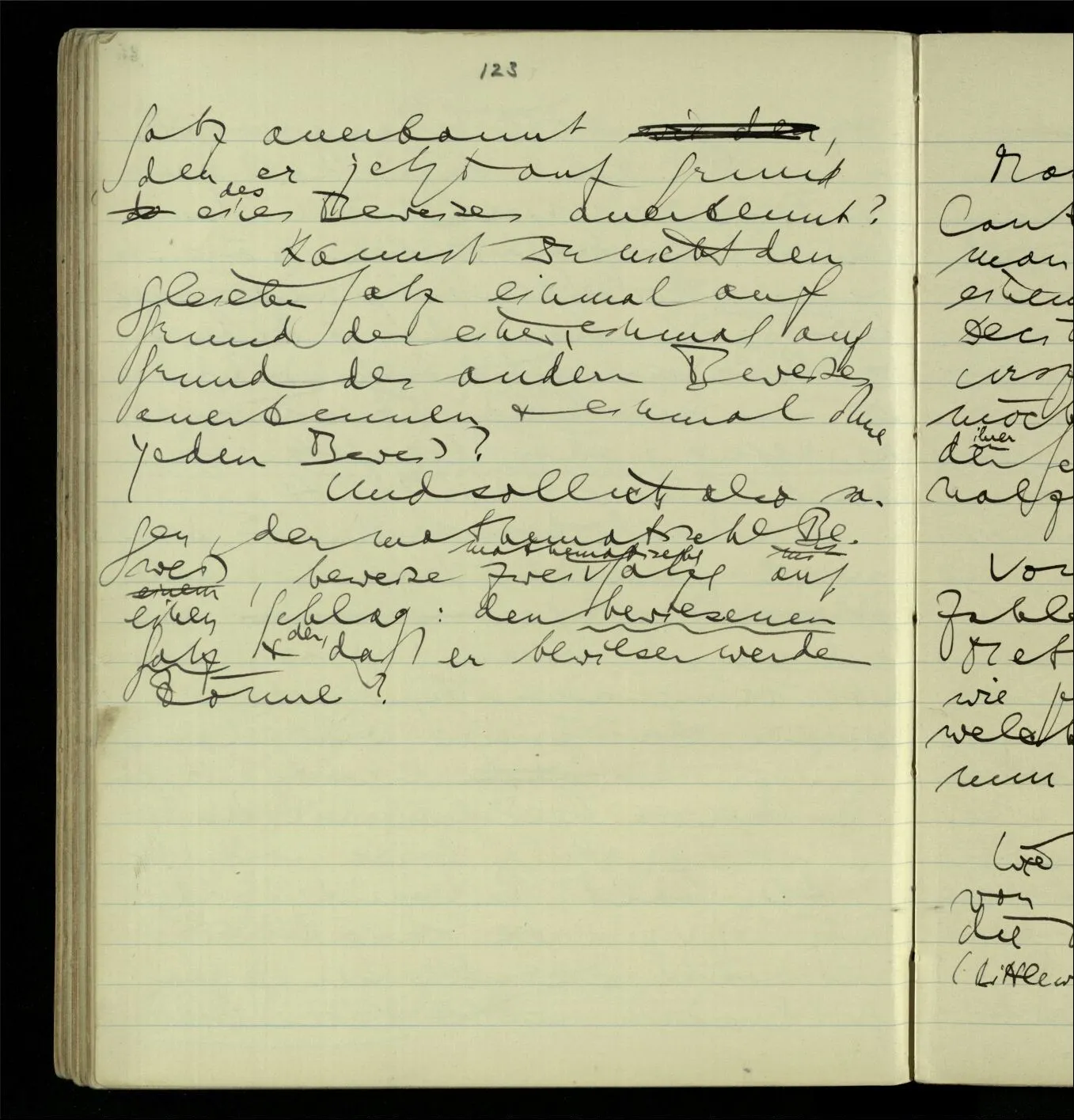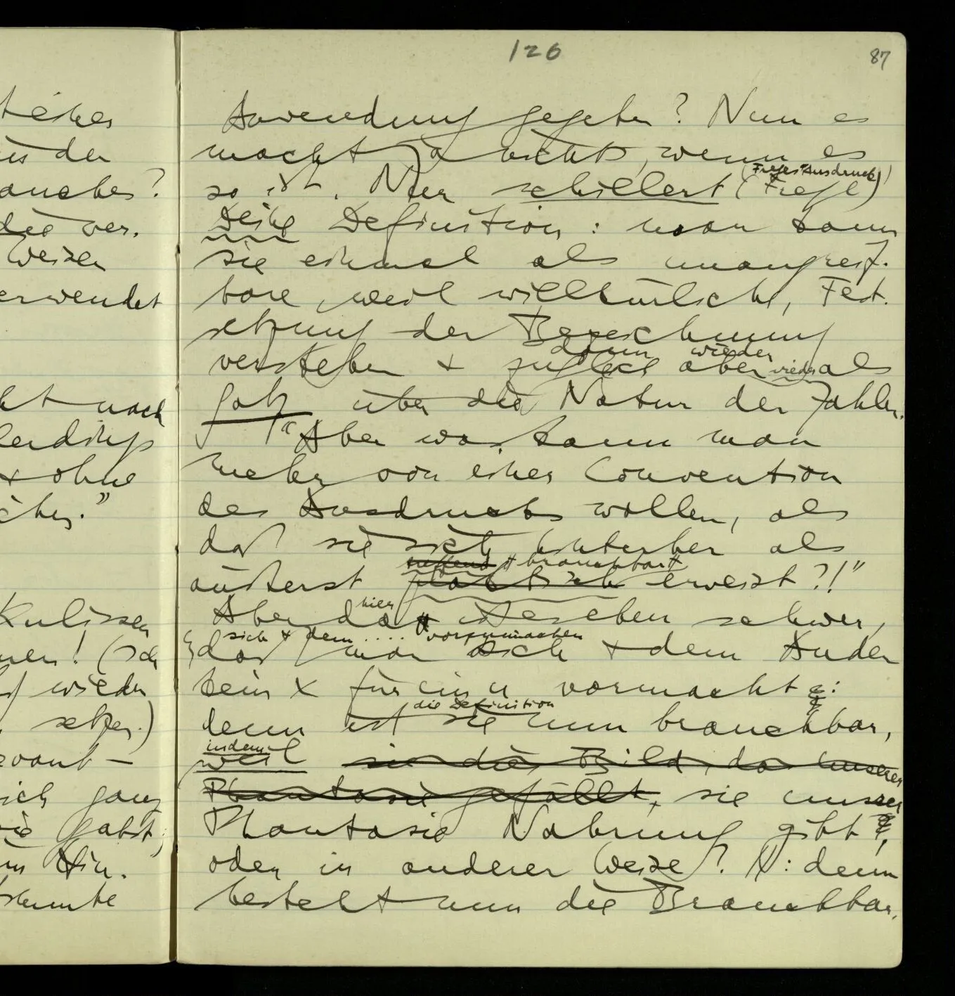 26.04.1938 Vergleiche den Gebrauch des Wortes “unendlich” in der Mathematik mit dem Gebrauch des Wortes “Metapsychologie”. Warum hat man denn in der modernen Erklärung der Differentialrechnung das Wort “unendlich klein” ausgemerzt? Könnte man dieses Wort nicht beibehalten & dennoch die richtigen Erklärungen geben? Wenn es auf das Wort gar nicht ankommt, warum ließ man es nicht stehen?