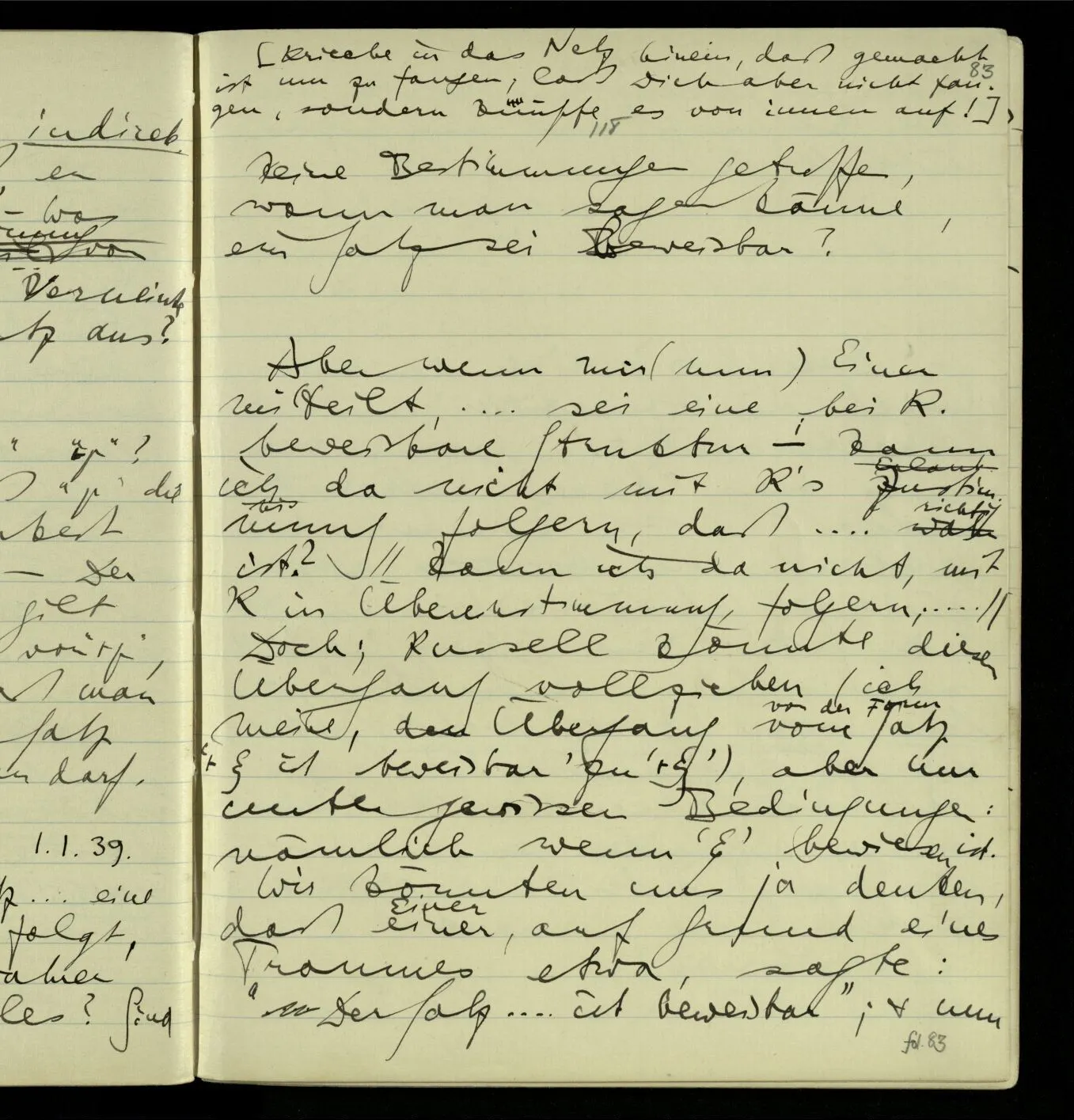 01.01.1939 Daraus, daß der Satz … eine so & so beweisbare Struktur ist, folgt, bei Russell, daß er ein wahrer Satz ist. – Ja, ist das Alles? Sind