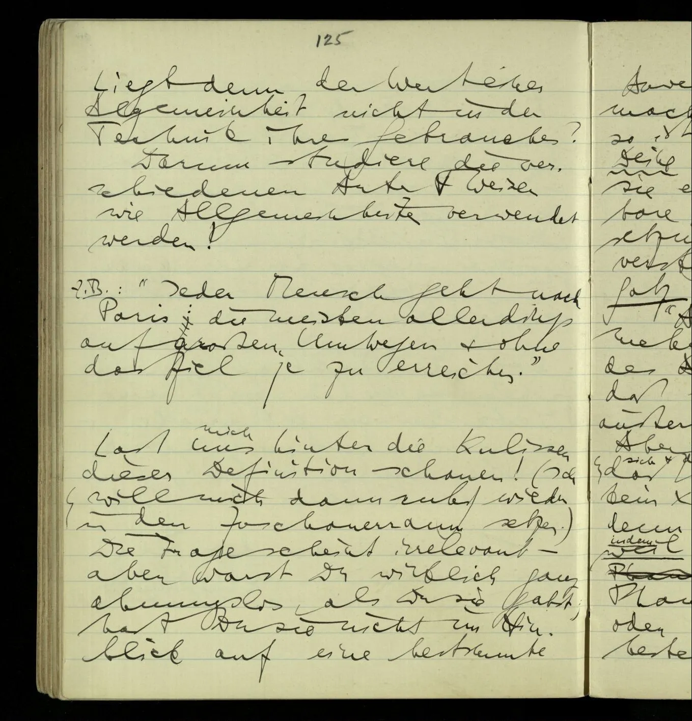 Z.B.: “Jeder Mensch geht nach Paris: die meisten allerdings auf großen Umwegen & ohne das Ziel je zu erreichen.”