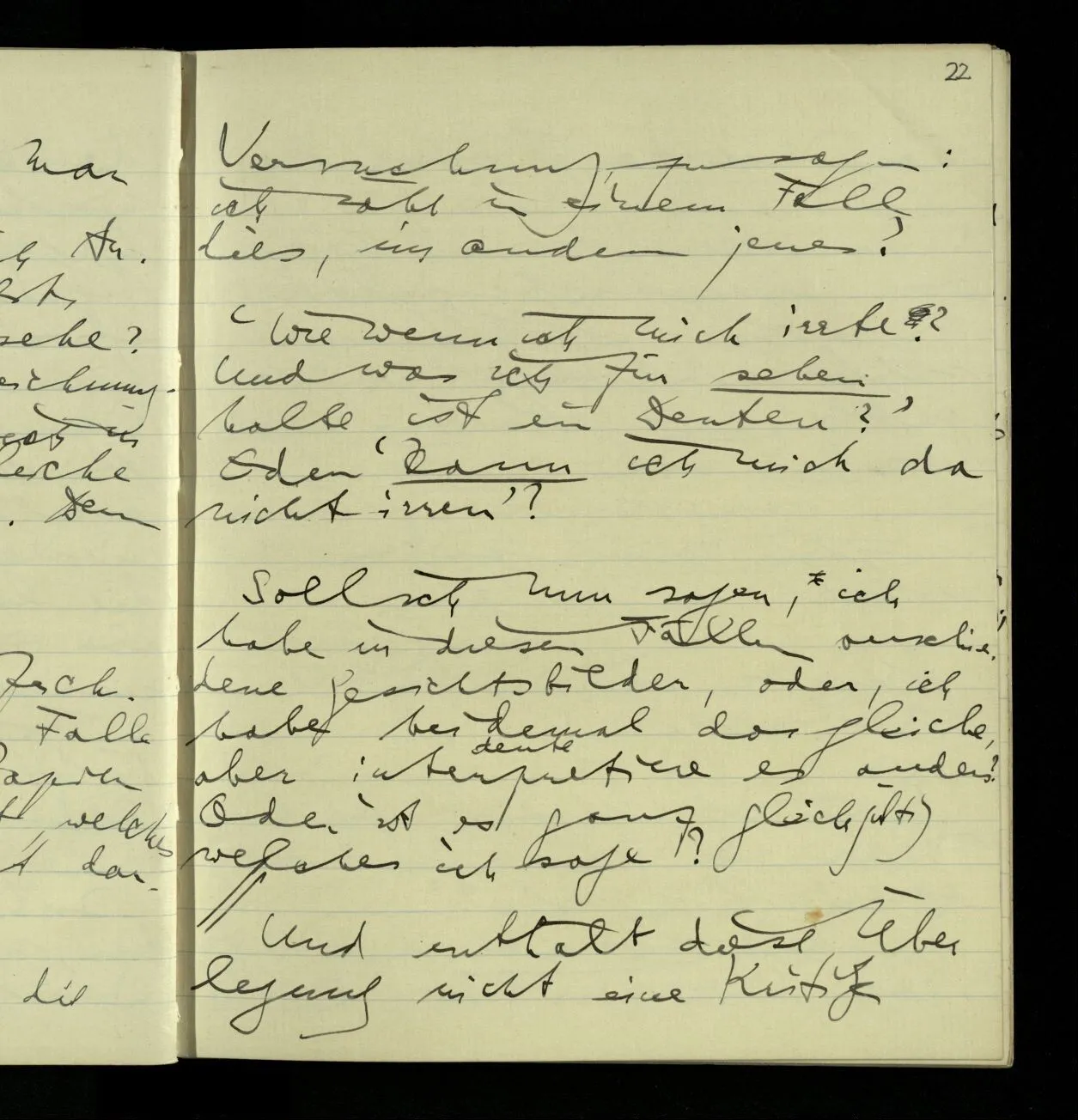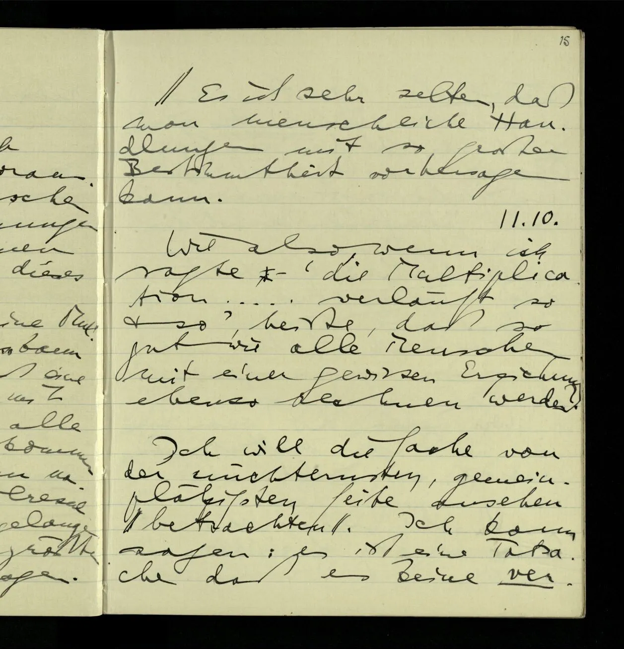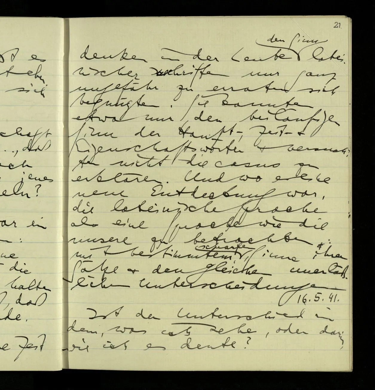 01.10.1940 Wie bei mir die Fähigkeit der Untersuchung verloren gegangen ist, weiß ich selbst nicht. Was früher eine überblickbare Landschaft war ist mir jetzt unüberblickbar. Als wäre ich zu einem kleinen kriechenden Tier geworden.