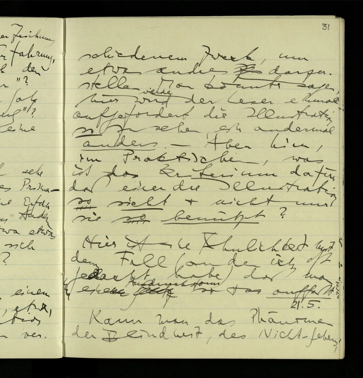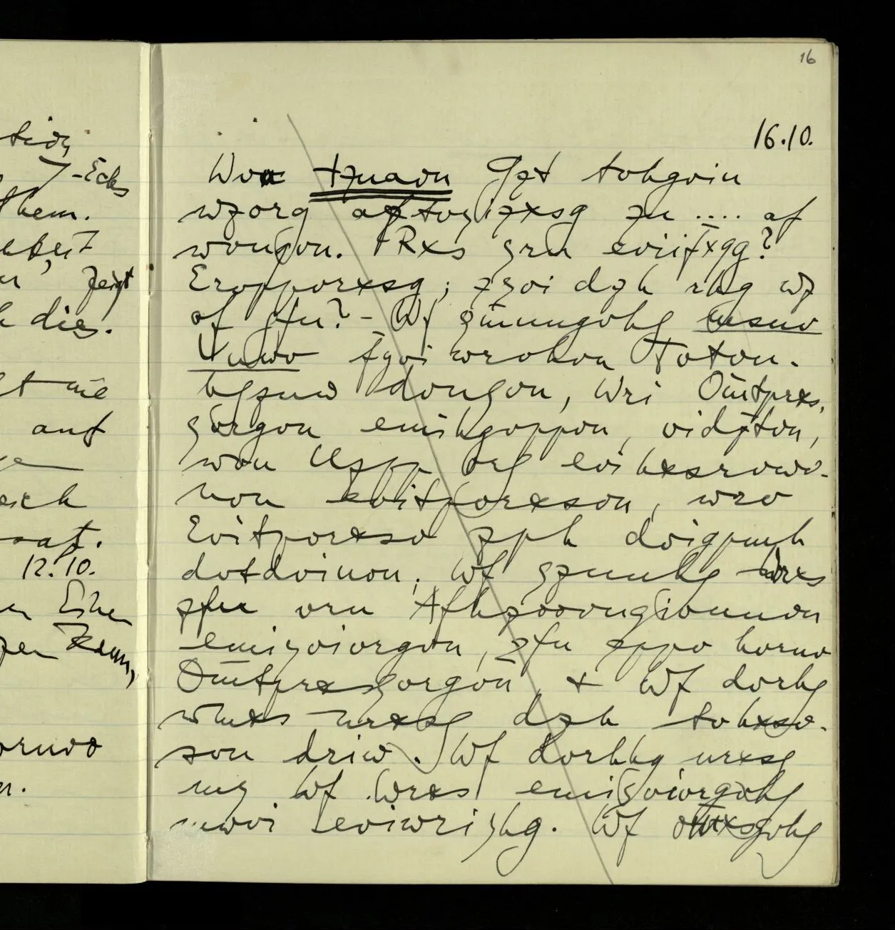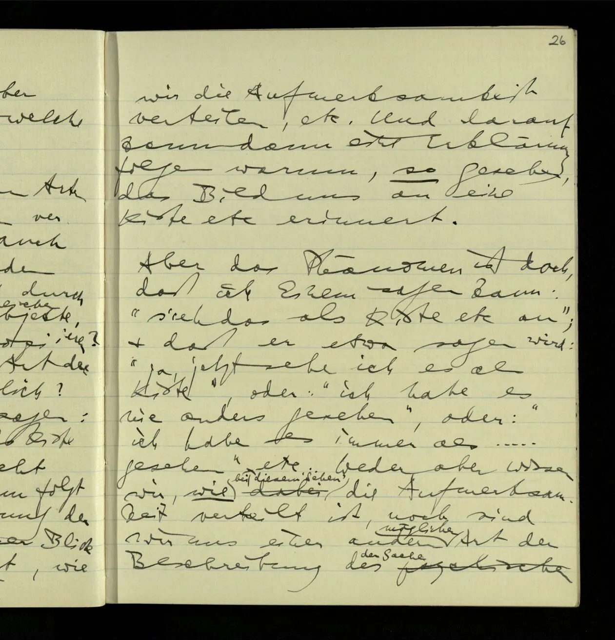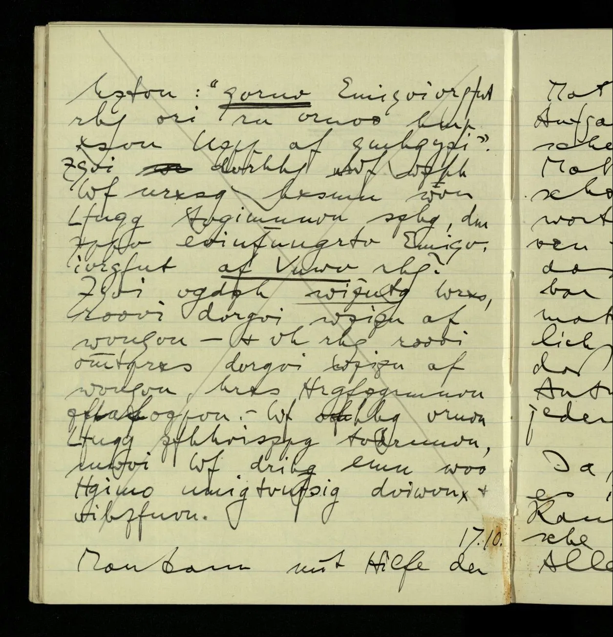01.10.1940 Wie bei mir die Fähigkeit der Untersuchung verloren gegangen ist, weiß ich selbst nicht. Was früher eine überblickbare Landschaft war ist mir jetzt unüberblickbar. Als wäre ich zu einem kleinen kriechenden Tier geworden.