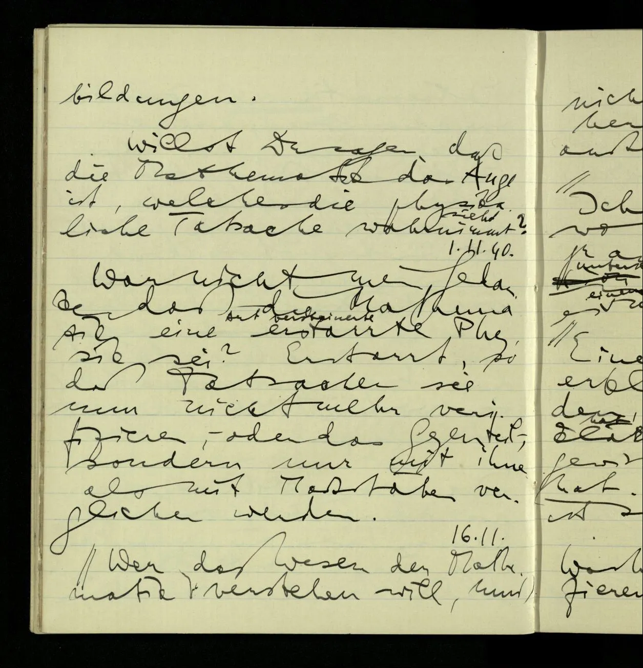 05.10.1940 Man muß sich ohne Vorbehalt die Rechnung als ein Experiment denken.