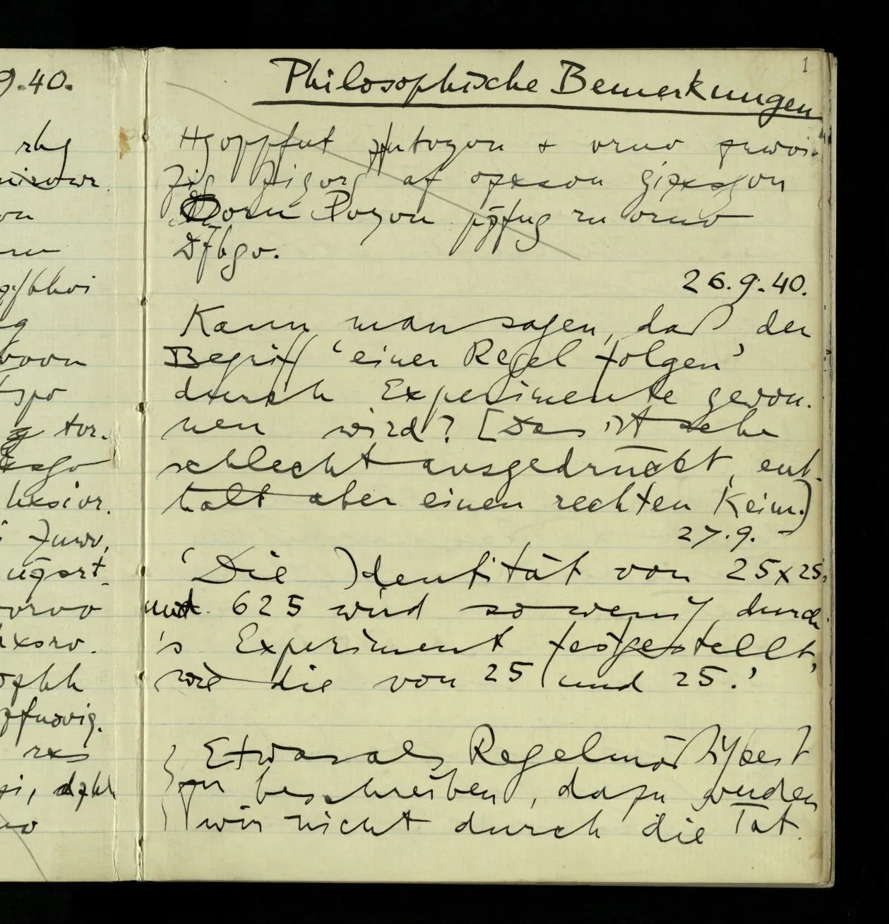 26.09.1940 Kann man sagen, daß der Begriff ‘einer Regel folgen’ durch Experimente gewonnen wird?