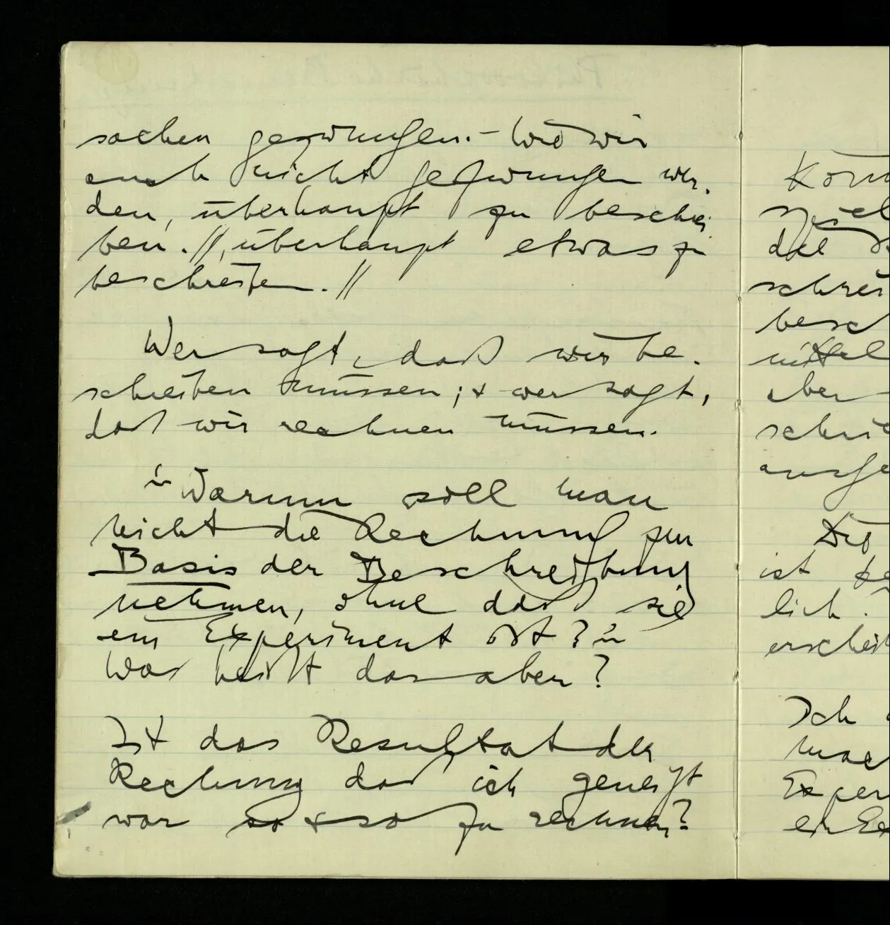 ‘Warum soll man nicht die Rechnung zur Basis der Beschreibung nehmen, ohne daß sie ein Experiment ist?’ Was heißt das aber?