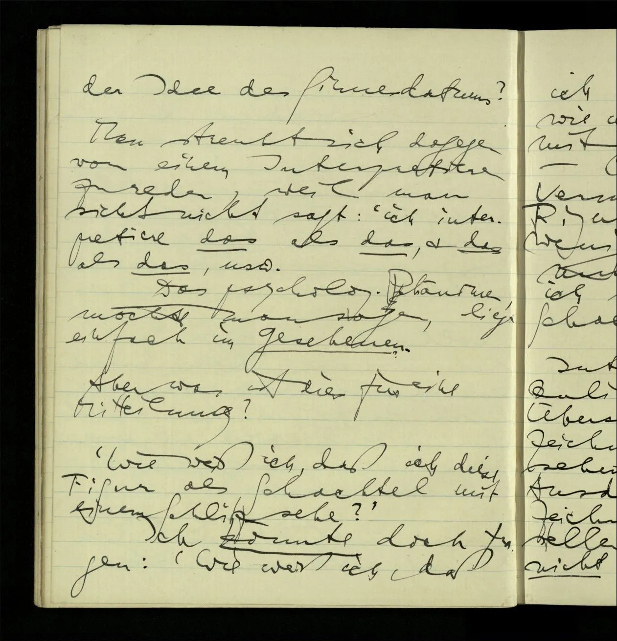 ‘Wir brauchen kein hocuspocus machen; wir wollen nur beschreiben, was tatsächlich geschieht.’ Aber gerade das ist dem wissenschaftlichen Geist nicht so leicht. Denn ihm ist es schwer zu sagen, daß er für etwas keinen praktischen Grund habe.