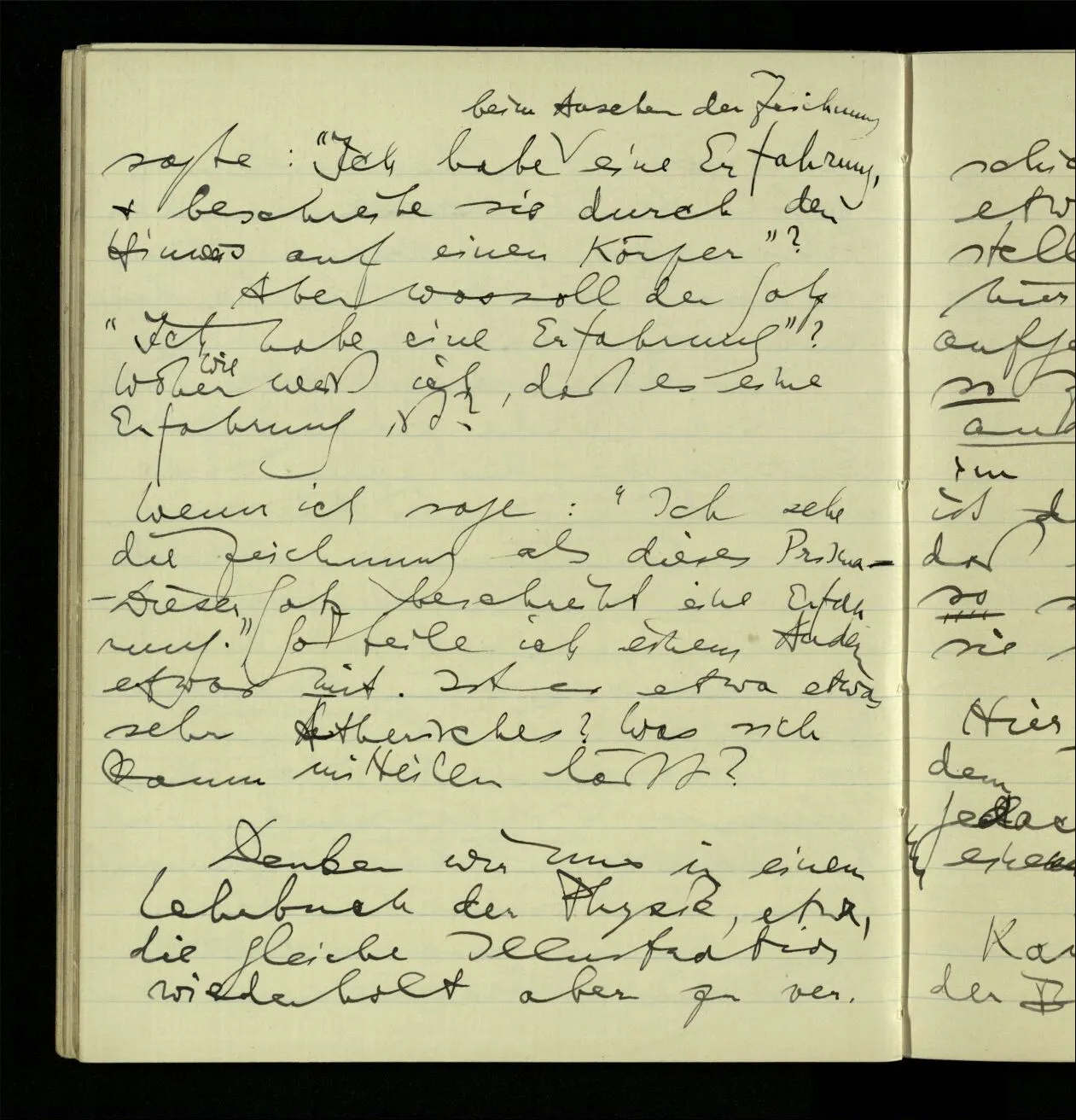 Ich lese z.B. etwas Geschriebenes, übertrage die Schrift in Laute: ich mache kein Experiment; bin nicht neugierig wie ich wohl das geschriebene a aussprechen werde. Noch setze ich voraus, daß ich es so wie jeder Andere aussprechen werde.