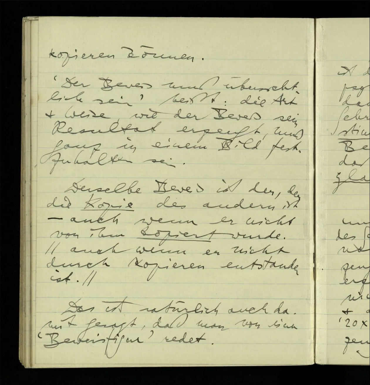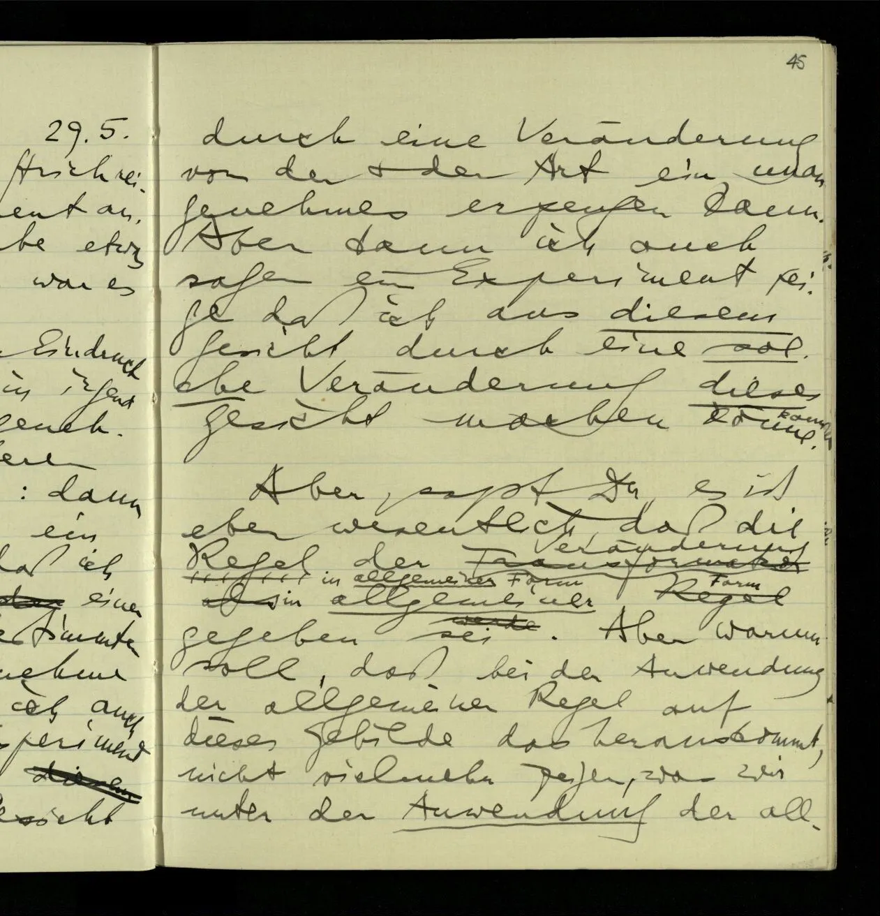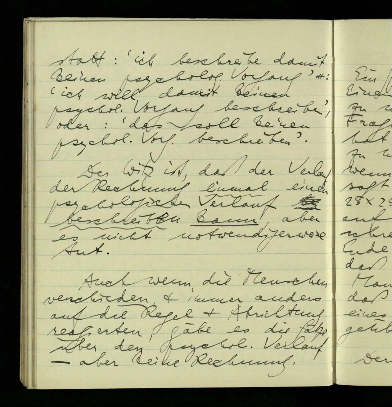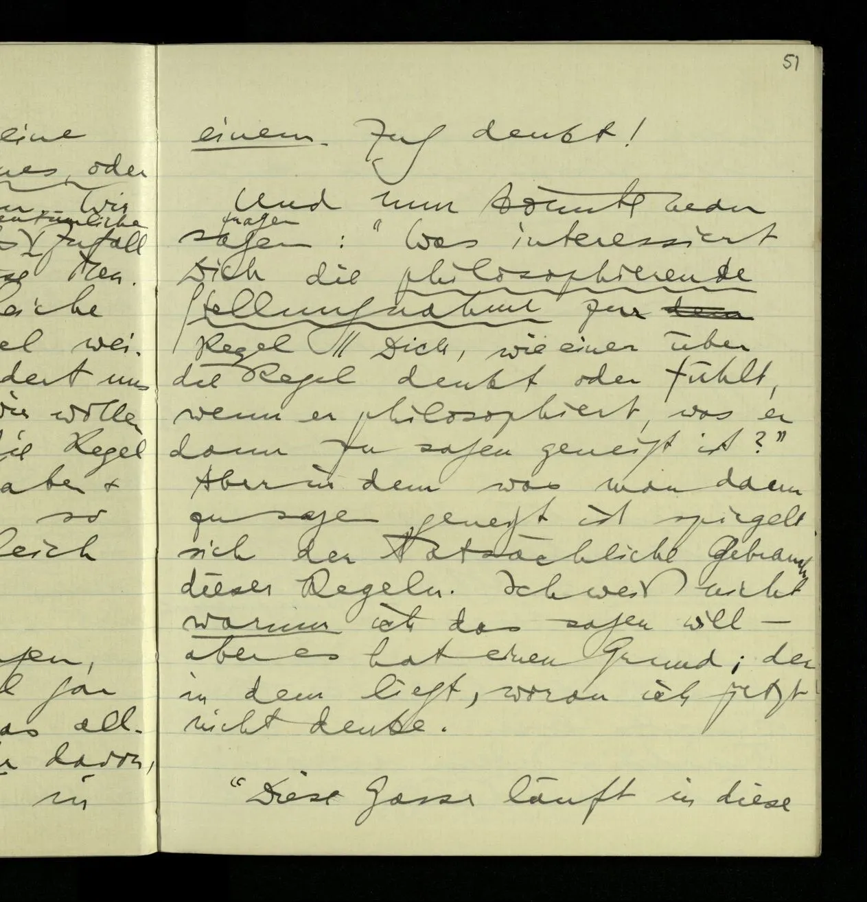 02.10.1940 Ich mache mich bereit einer gewissen Regel zu folgen: Ist es nun ein Erfahrungsresultat daß ich, dieser Regel folgend, das & das hinschreibe. Es ist natürlich ein Erfahrungsergebnis, daß ich, nach diesen Vorbereitungen, das & das hinschreibe. Oder auch: daß ich im Glauben der Regel zu folgen, das & das hinschreibe.