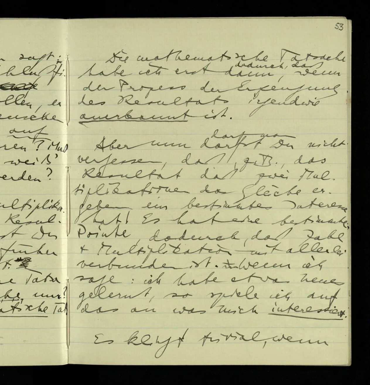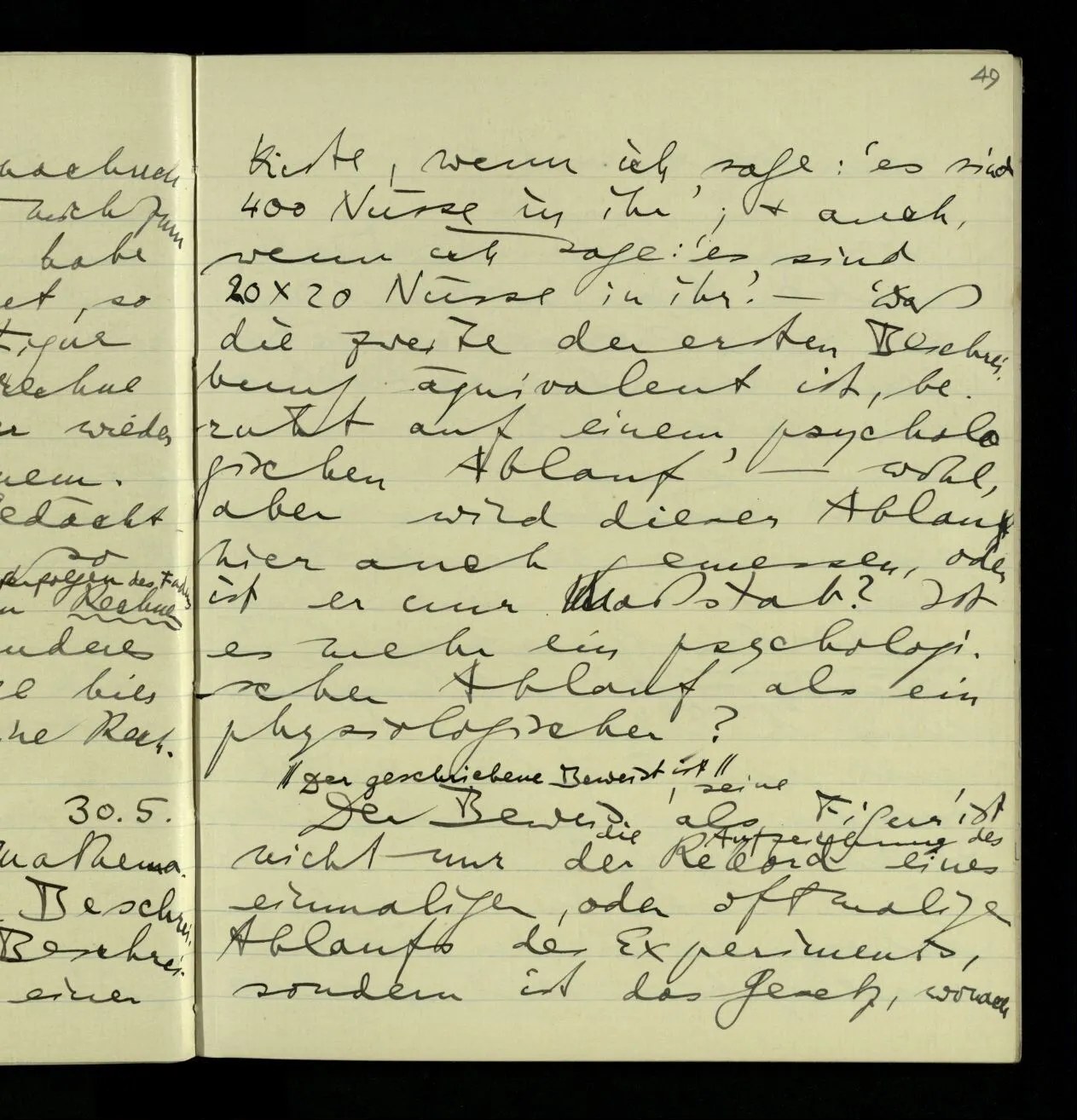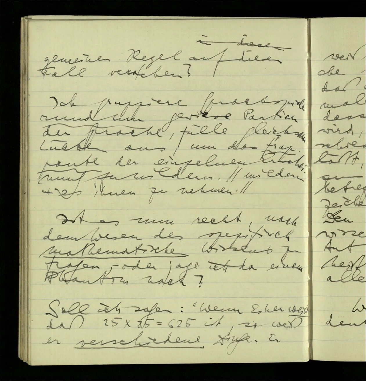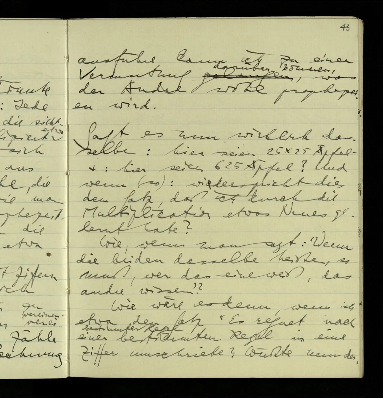 27.09.1940 ‘Die Identität von 25 × 25 und 625 wird so wenig durch’s Experiment festgestellt, wie die von 25 und 25.’